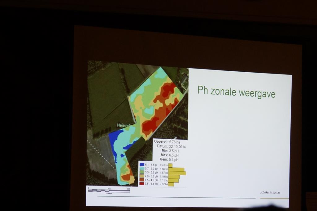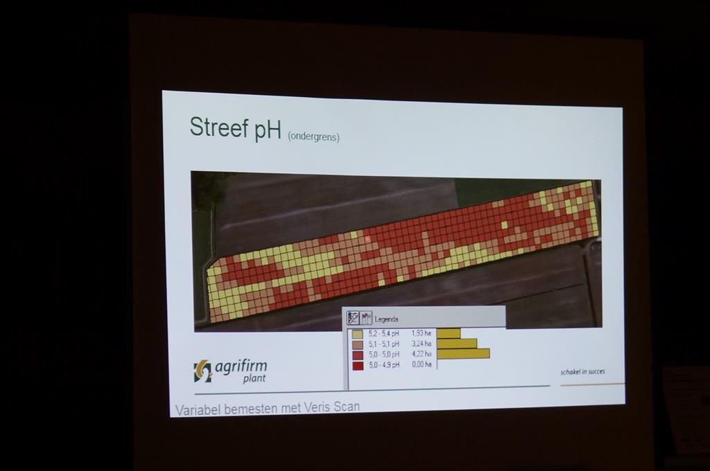 Ook ging de avond over de mogelijkheden van de Veris bodemscan Johan Ottens van Agrifrim Plant legde de mogelijkheden van taakkaarten uit die gemaakt kunnen worden door Agrifrim Plant aan de hand van de scans ,waarna weer plaats specifiek bekalkt kan worden door Weco de Hondsrug.