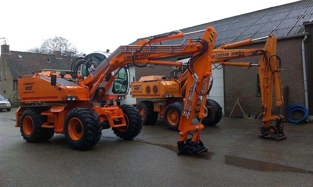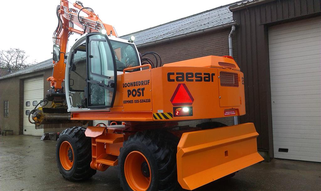 De nieuwe multitooler van loonbedrijf Post is tot dusver de meest uitgebreide 2507 qua opties en eigenschappen zoals schuifblad met geïntegreerde trekhaak, extra hydraulische- en elektrische aansluitingen op de onderwagen en in het midden geplaatste steunpoten.Ook deze machine zal hoofdzakelijk ingezet worden voor bermonderhoud, slootonderhoud, rooiwerkzaamheden en algemeen groen en grondwerk. Door de krachtige John Deere motor kunnen de verschillende werktuigen, zoals stobbenfrezen, mulchers, klepelmaaiers enz. prima aangestuurd worden. De snelheid van de hydraulische componenten, maar ook de benodigde druk en liters voor de werktuigen, worden herkend en perfect aangestuurd door het speciaal bij Caesar ontwikkelde besturingssysteem. De gewenste instellingen zijn per machinist in het systeem op te slaan. Deze Caesar is snel en krachtig, zowel op de weg (50 km/h), als in het veld. De gemonteerde steunpoten kunnen apart afgestempeld worden. Dit geeft de mogelijkheid om ook bij slootonderhoud snel en makkelijk draagkracht te creëren. Bij de keuze van de bandensamenstelling is gelet op de maximale breedte van de machine. Toch, met 800 x 26,5 brede banden, blijft de machine binnen de 2,70 m. en een uitzonderlijk lage bodemdruk met een groot rollend vermogen.