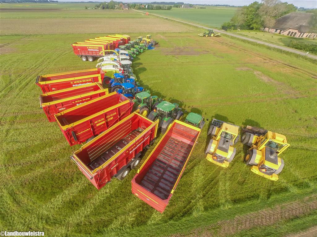 De gras spullen van loonbedrijf Heyblok uit Den Oever vanuit de lucht!