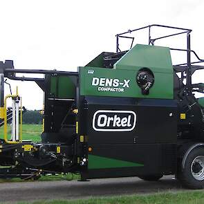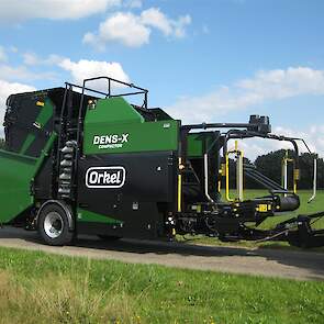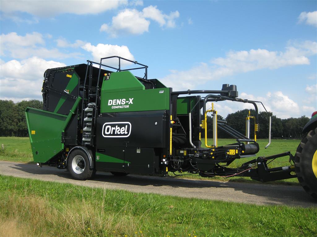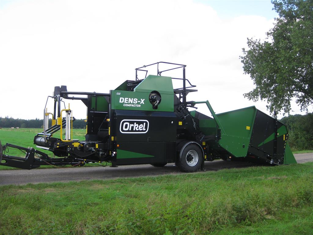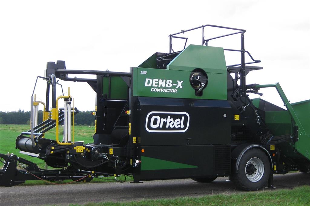 De Orkel Dens-X is de nieuwe generatie van Orkel Compactors met een hogere capaciteit, een slimmere oplossing voor de voorraadbunker, een briljant besturingssysteem en een uniek weegsysteem. De innovatieve nieuwe bunker is een gepatenteerde ontwikkeling met een hoge capaciteit die het snel lossen van kiepwagens mogelijk maakt en heeft een speciaal ontworpen systeem om het materiaal efficiënt in de perskamer te brengen. Het gevolg is een hoge capaciteit en een hoge baaldichtheid. De voorraadbunker heeft een breedte van 3,5 meter in de operationele modus. Een hydraulisch scharnierbare klep voorkomt morsen van het te persen product.