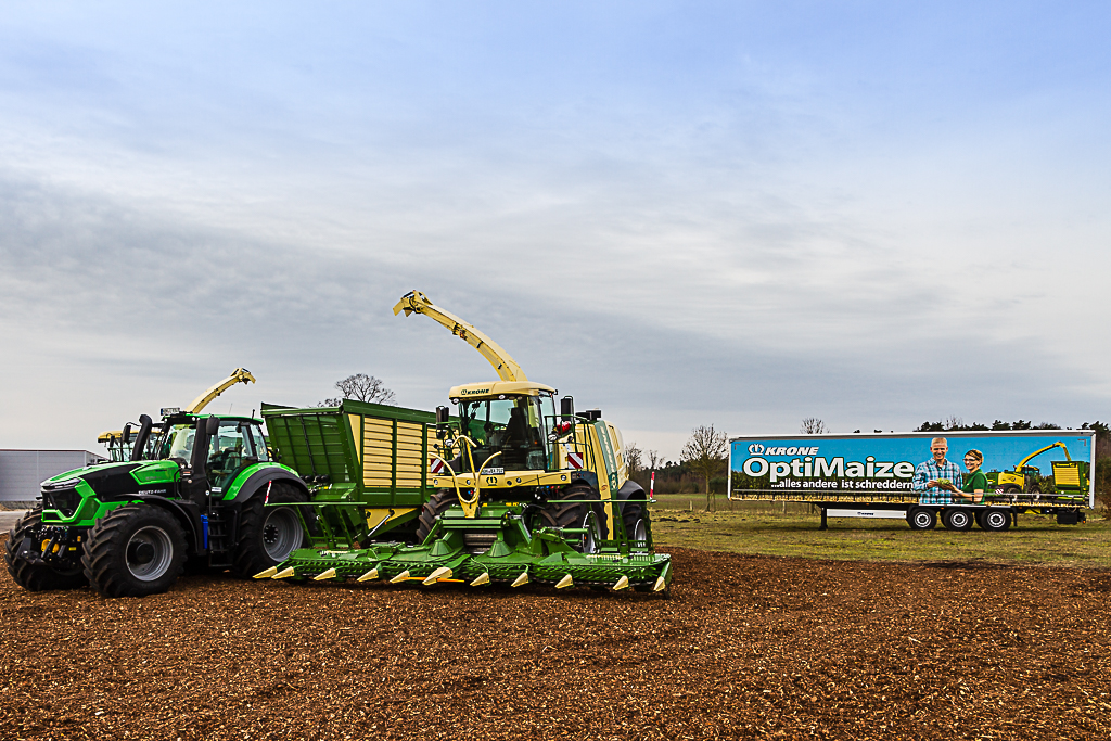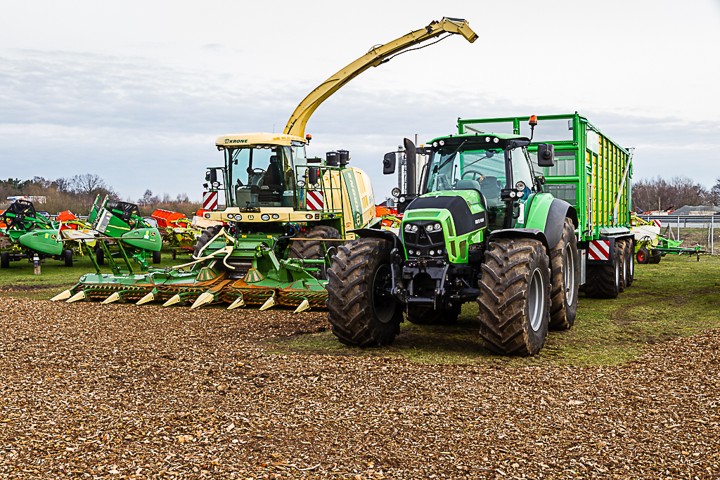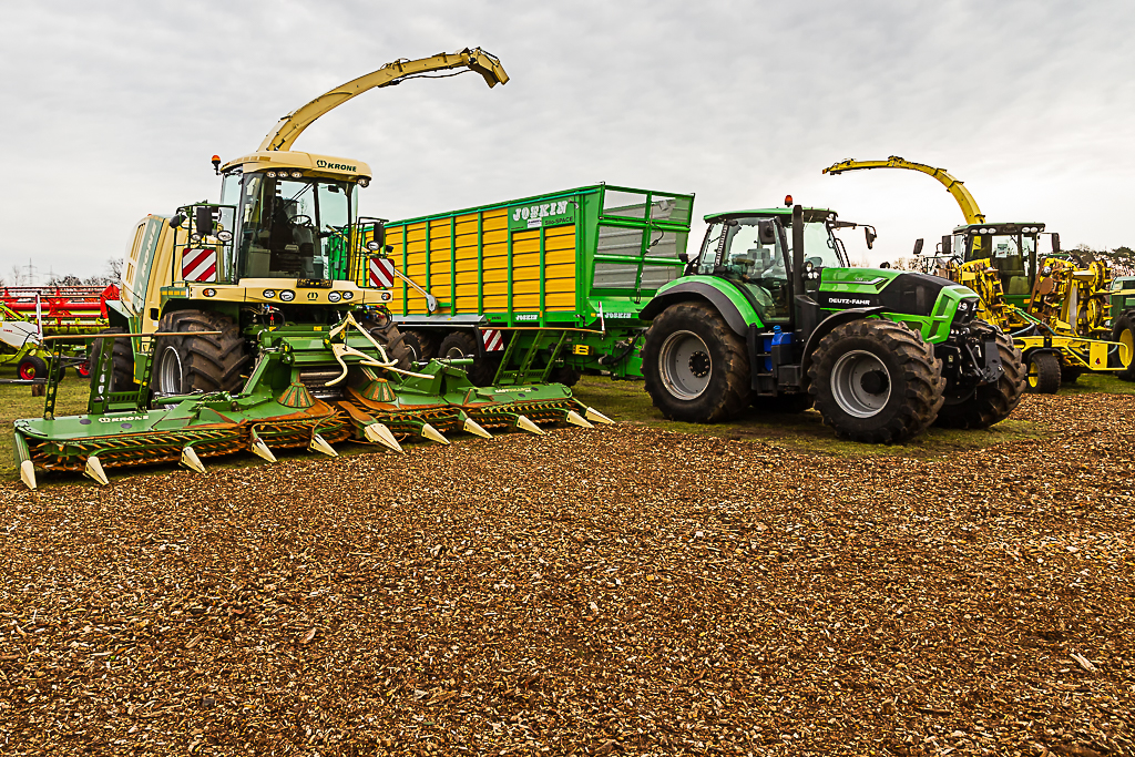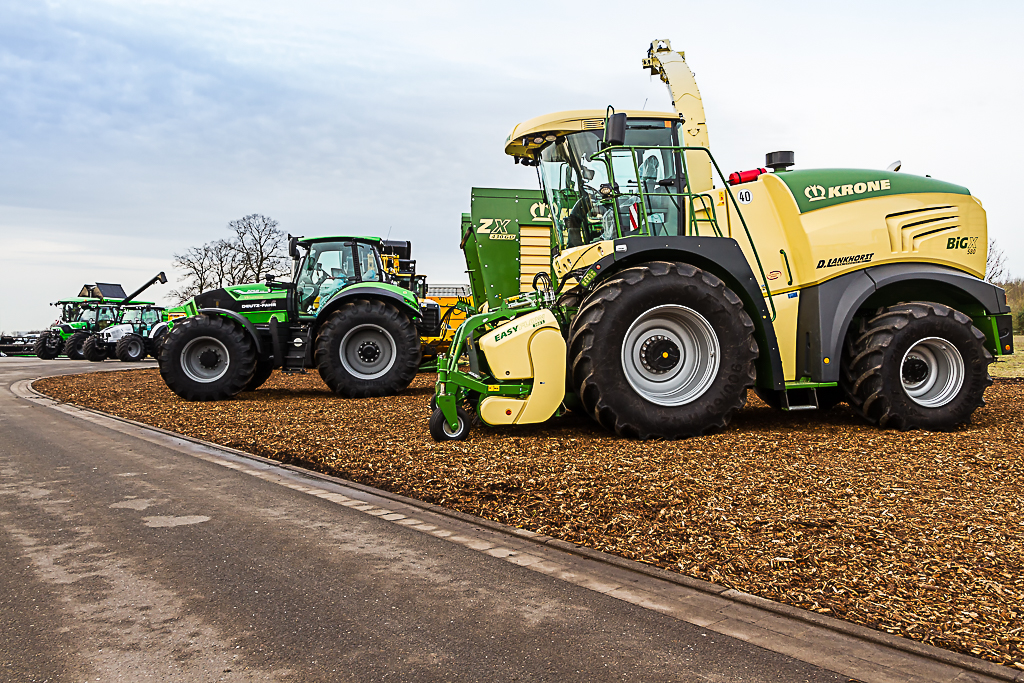 Open dagen bij Lankhorst in Emsbüren bij het Harvest Park veel Deutz Fahr en Krone maar ook de John Deere en Claas hakselaars ontbreken niet