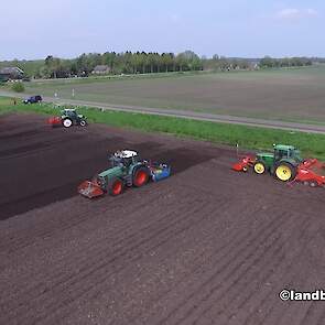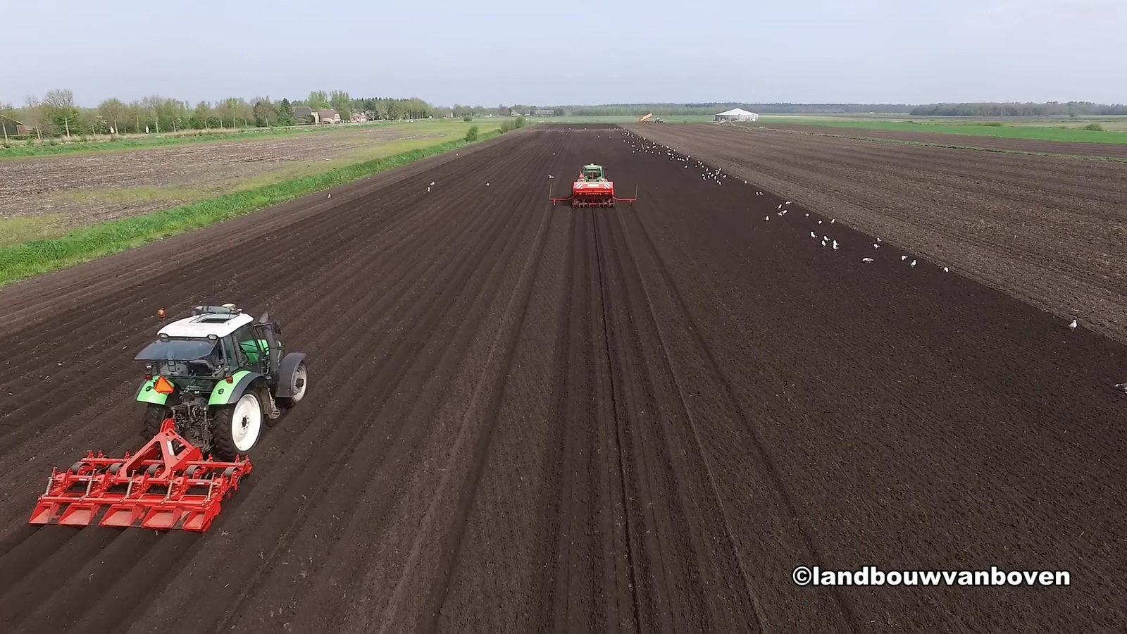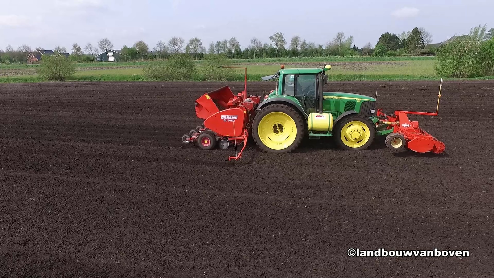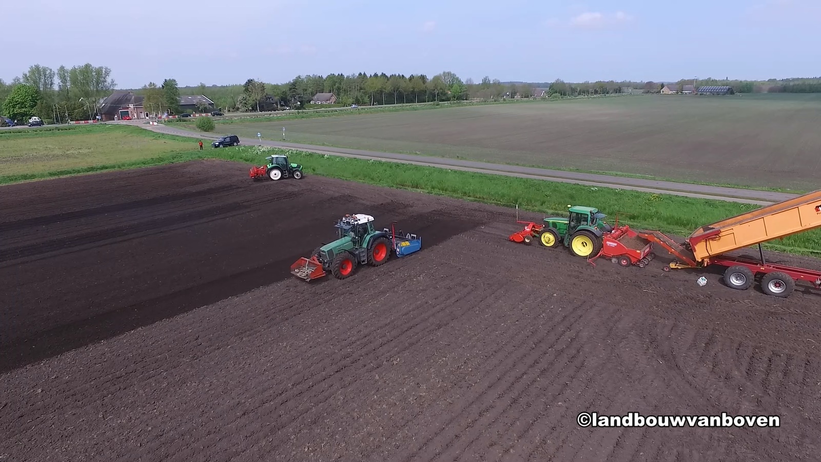 Afgelopen 7 mei heeft Akkerbouwbedrijf Drent het laatste perceel aardappels gepoot. Voor dat de aardappels de grond in gaan, wordt de grond klaar gelegd met een Fendt 822 + spitmachine. Met een John Deere 6520 + Grimme pootmachine worden de aardappels gepoot. Daarna is een Deutz te zien met een Grimme rugvormer, die maakt een grote aardappelrug. Bekijk de video om deze drie machines in actie te zien.