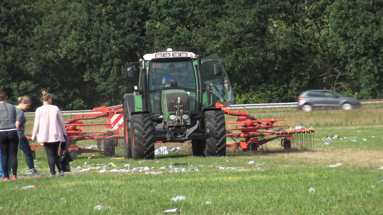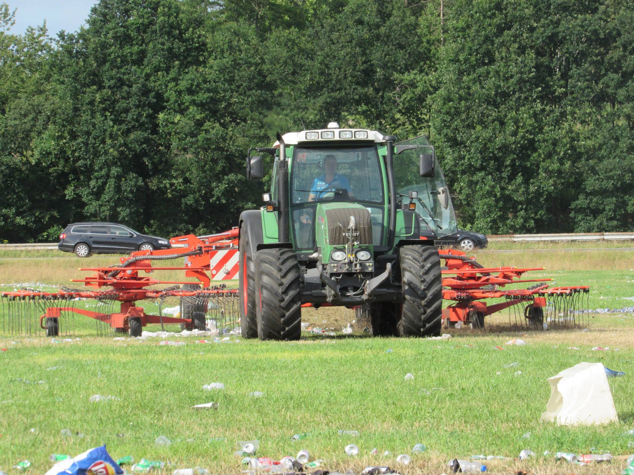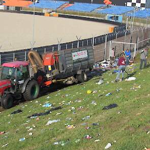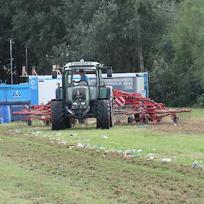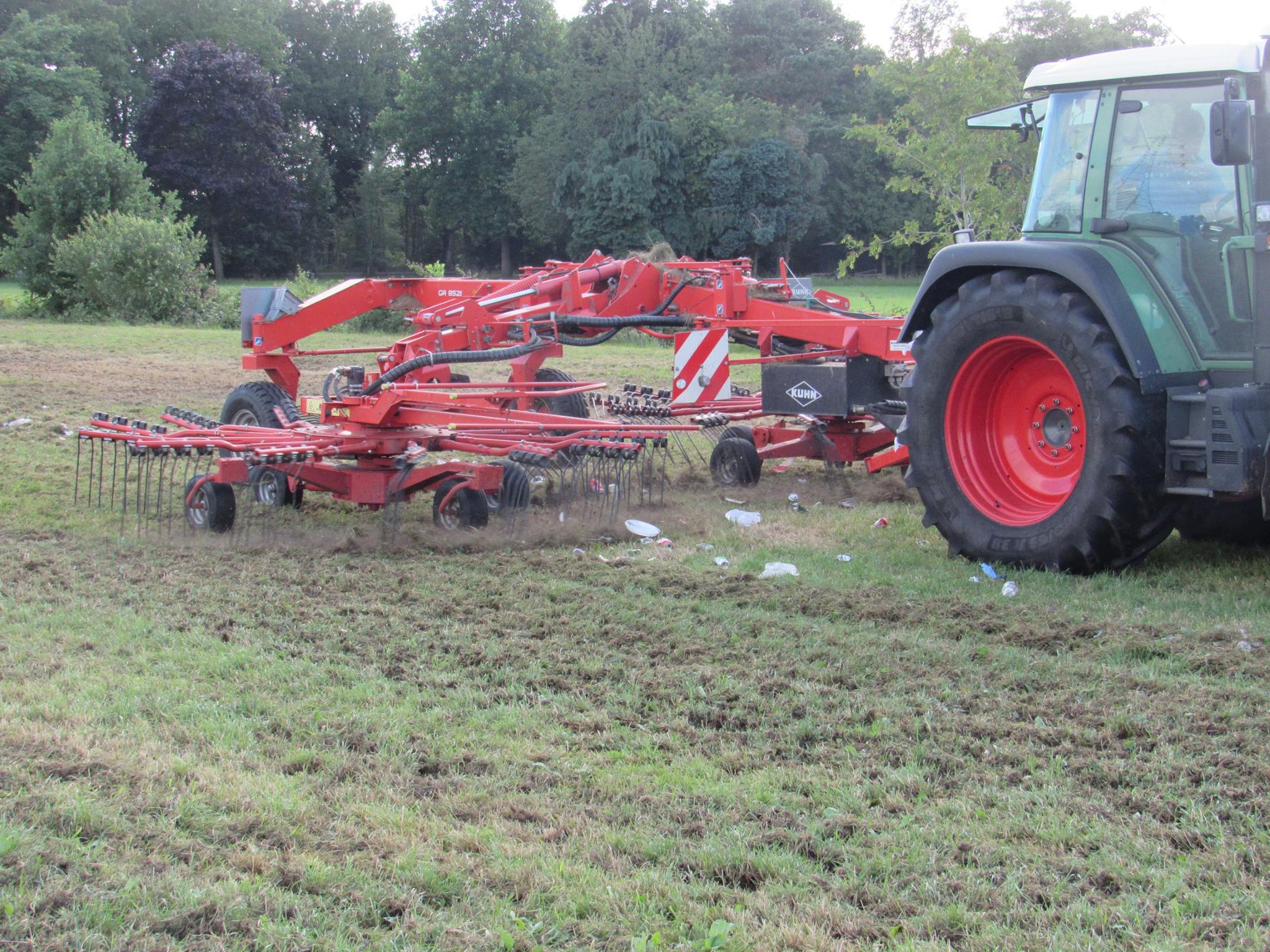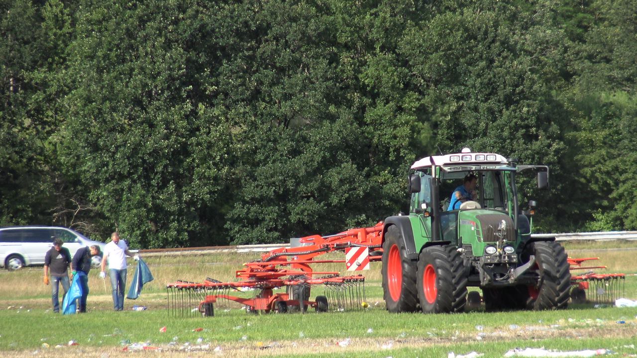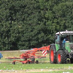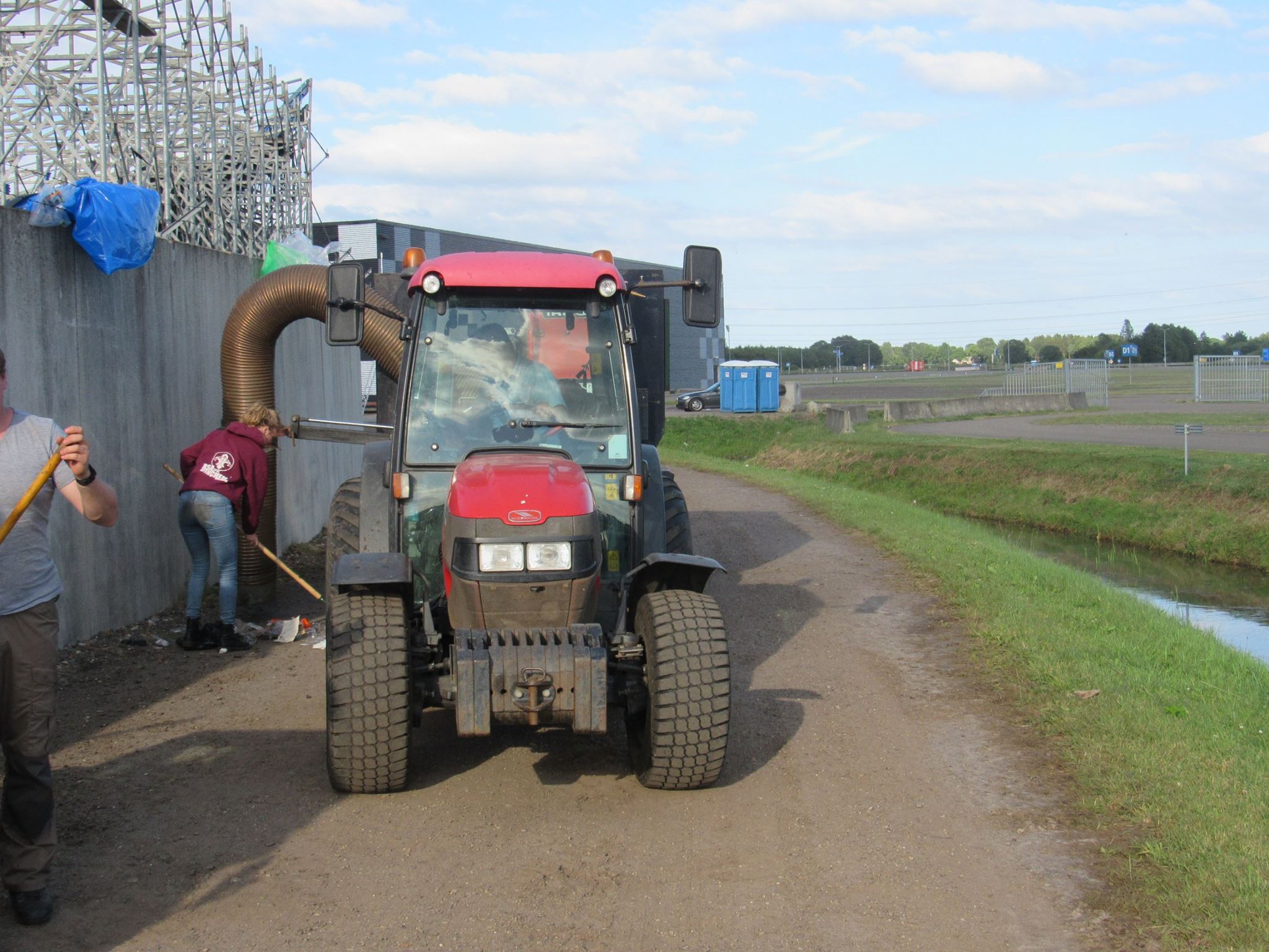 Wat je al niet kunt doen met een Kuhn hark .hier worden de bierblikjes bijmekaar geharkt die op het terrein zijn blijven liggen nade Dutch TT in assen