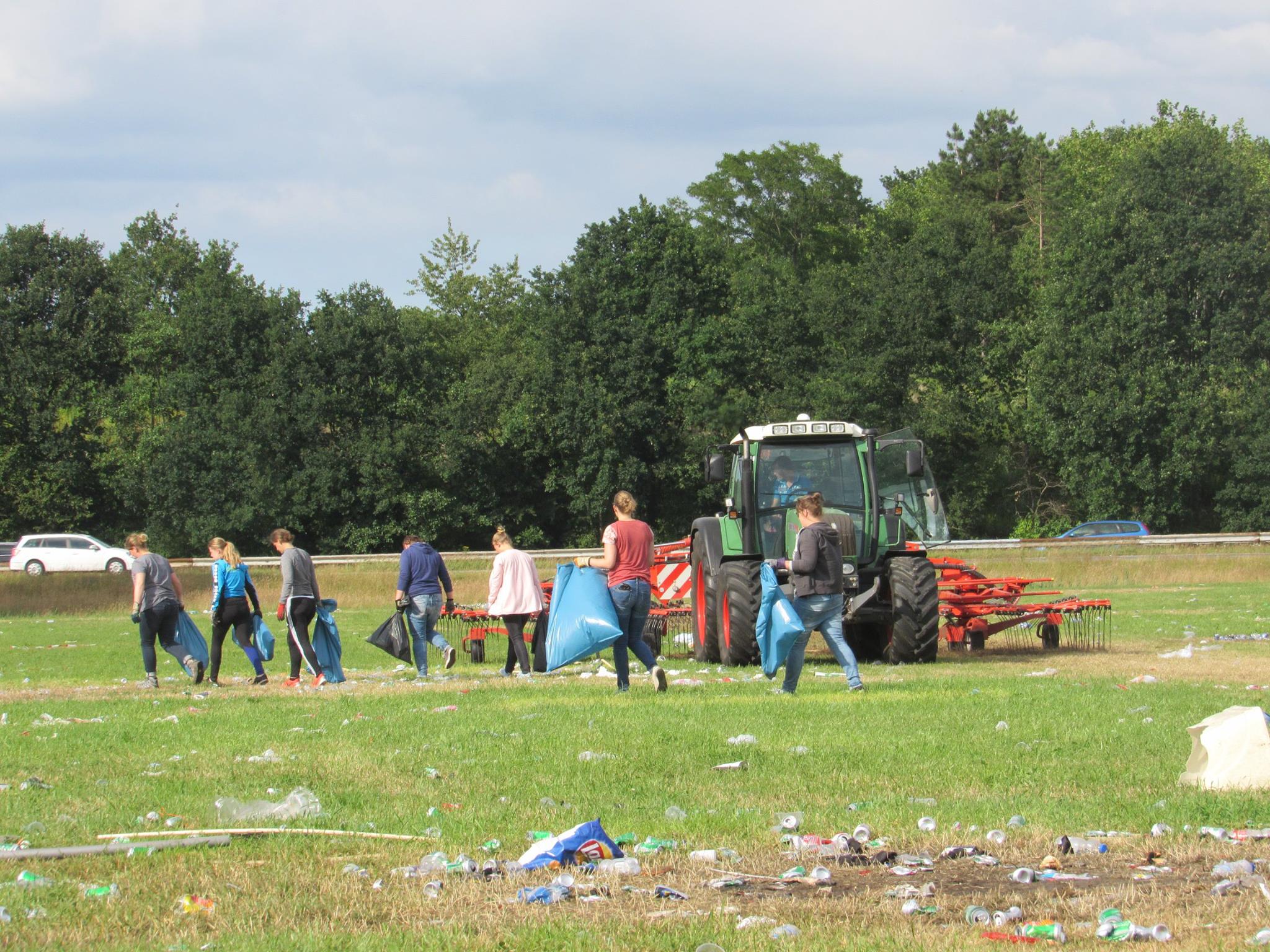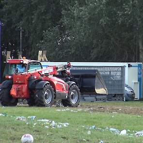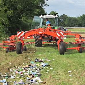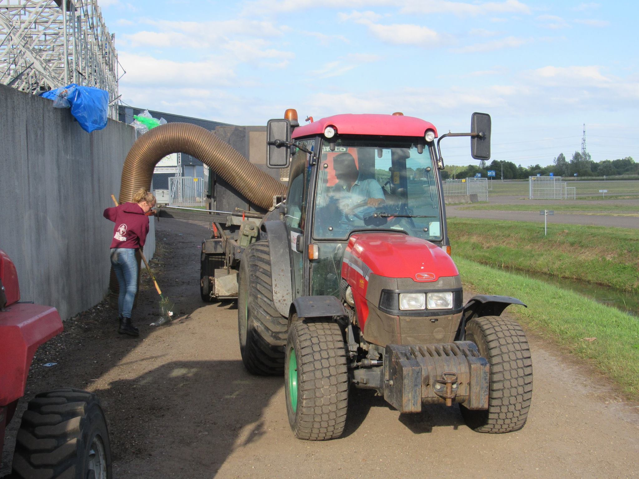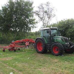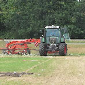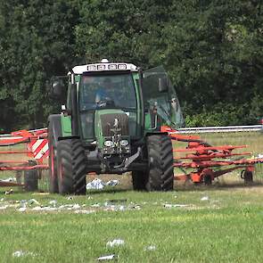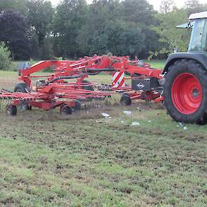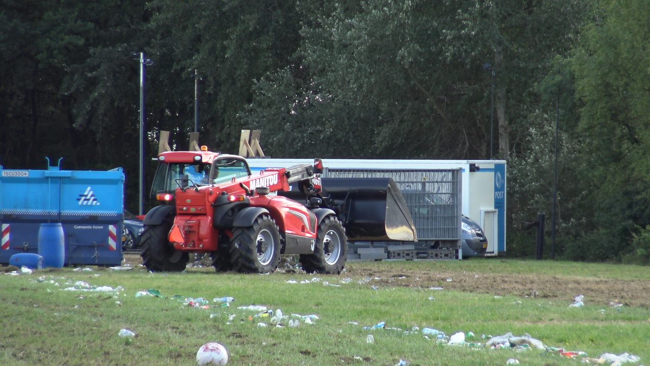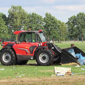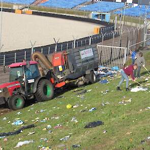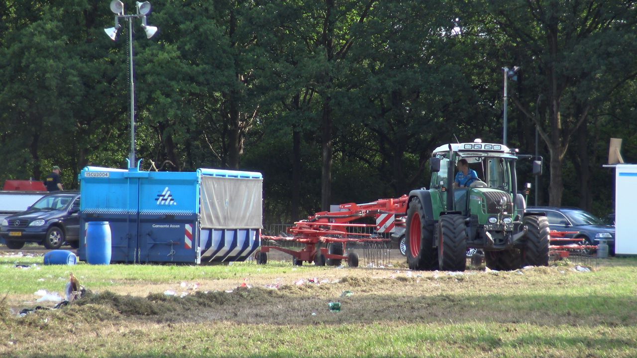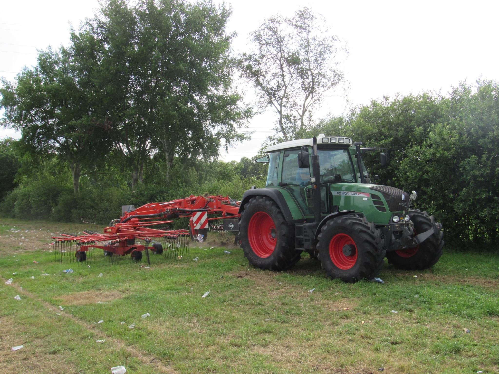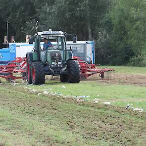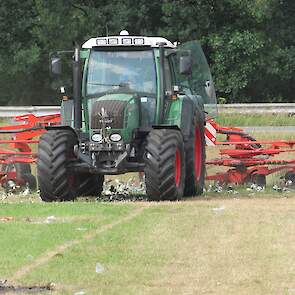 Wat je al niet kunt doen met een Kuhn hark .hier worden de bierblikjes bijmekaar geharkt die op het terrein zijn blijven liggen nade Dutch TT in assen