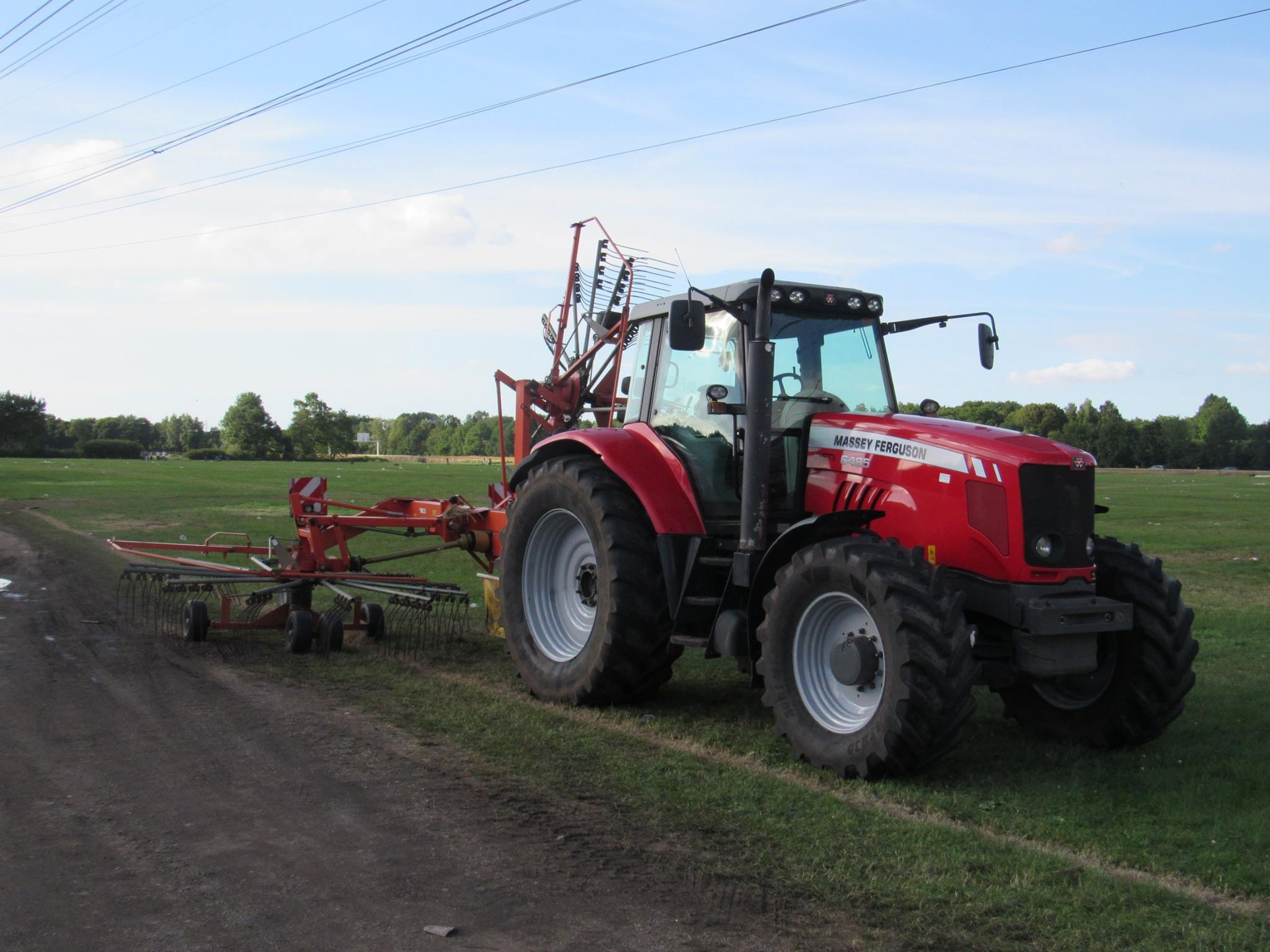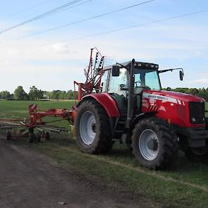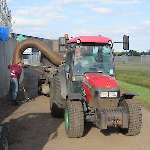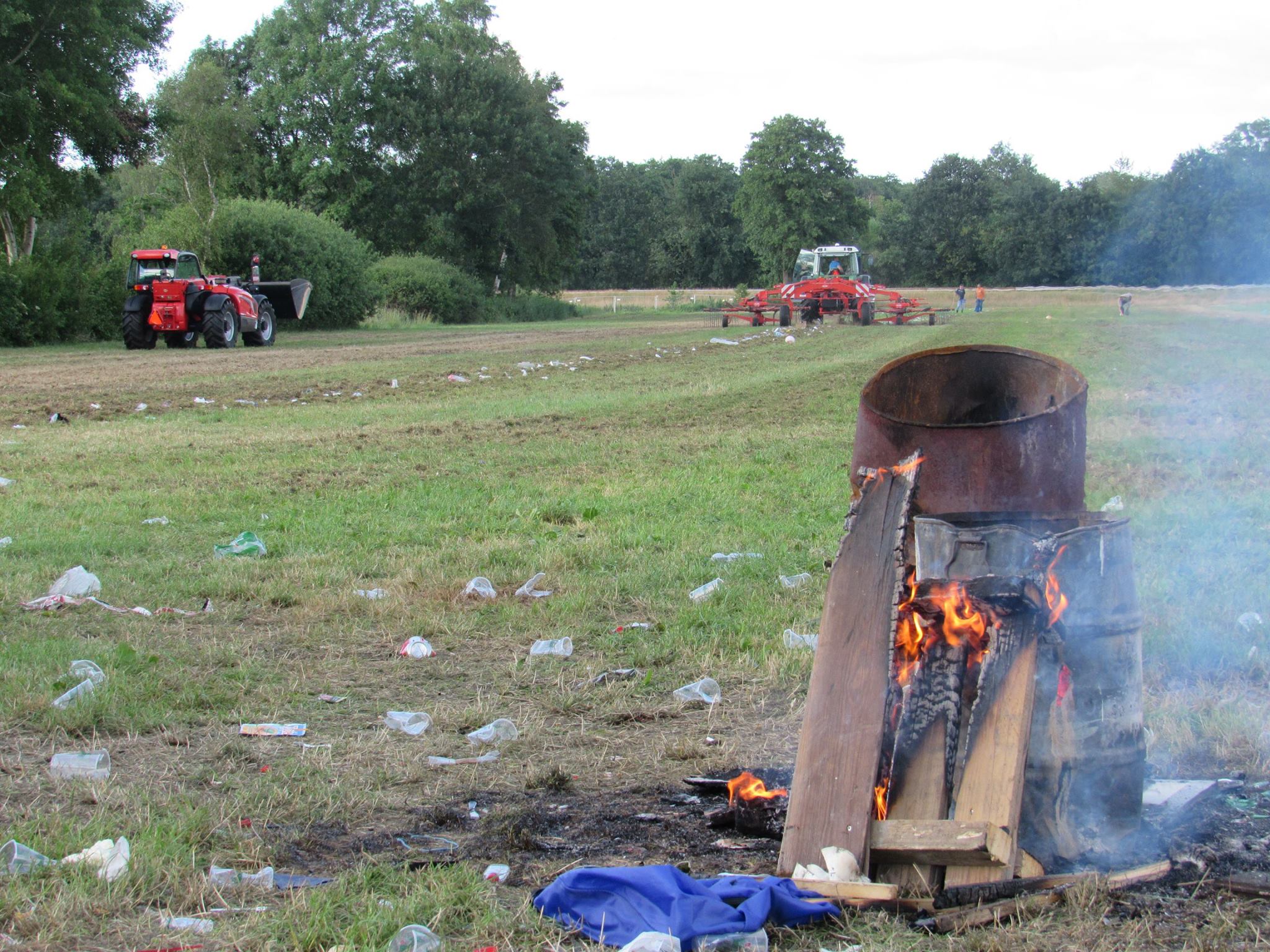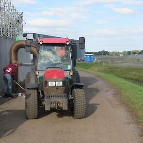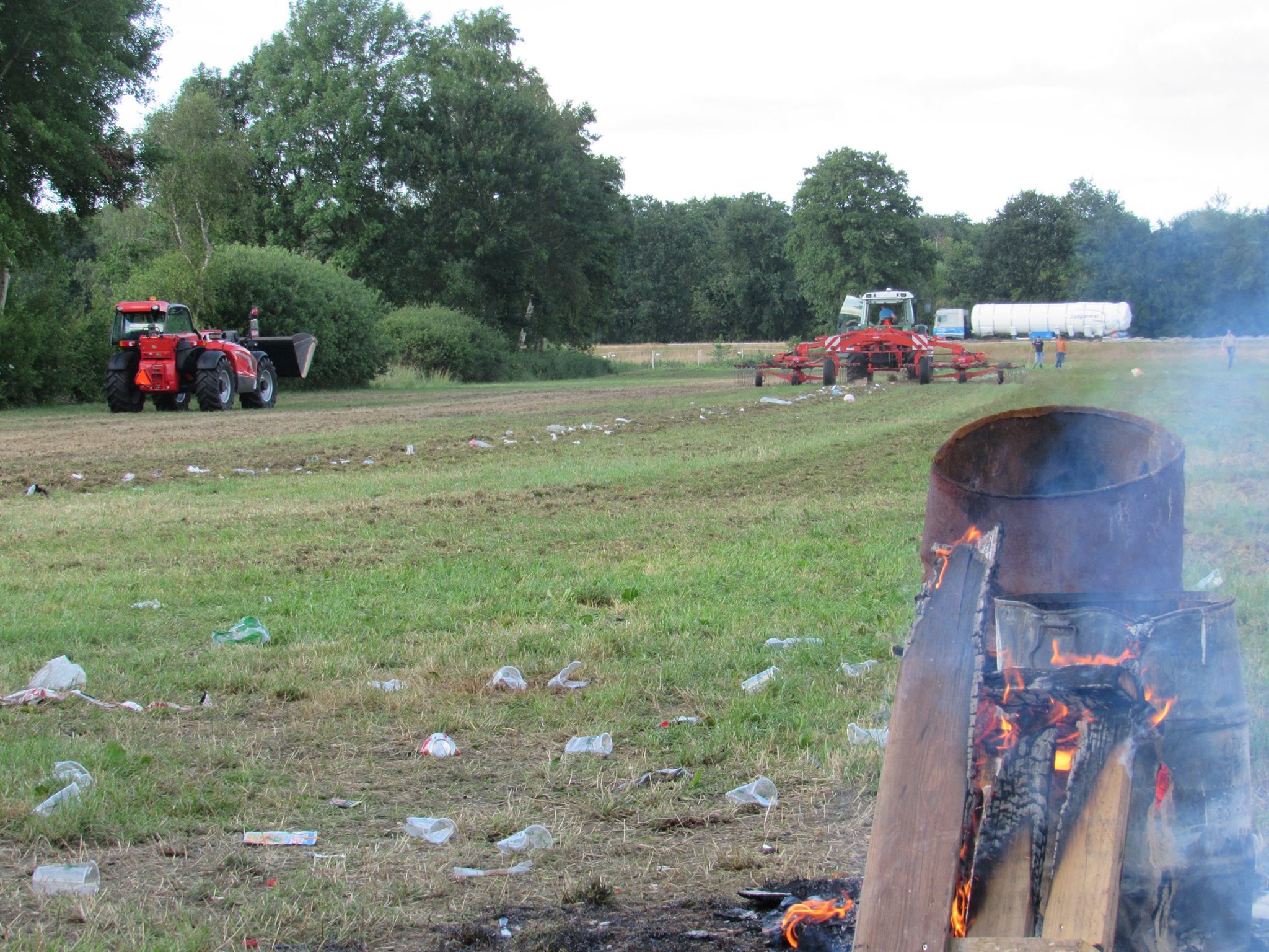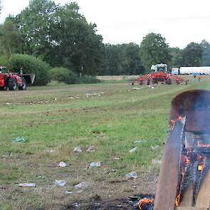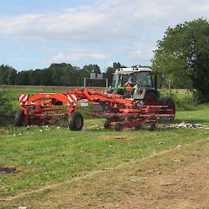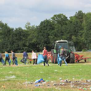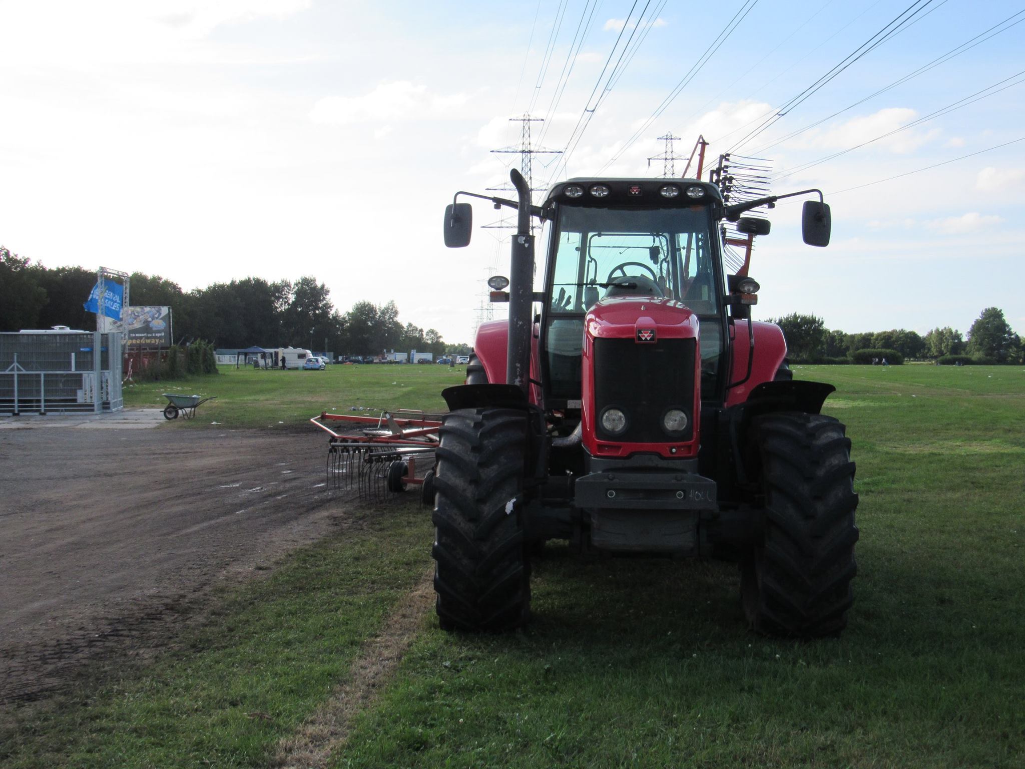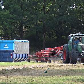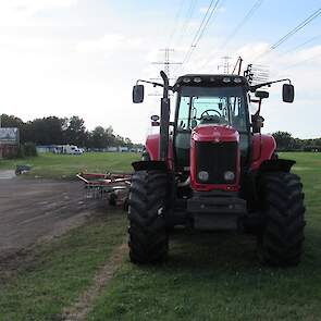 Wat je al niet kunt doen met een Kuhn hark .hier worden de bierblikjes bijmekaar geharkt die op het terrein zijn blijven liggen nade Dutch TT in assen