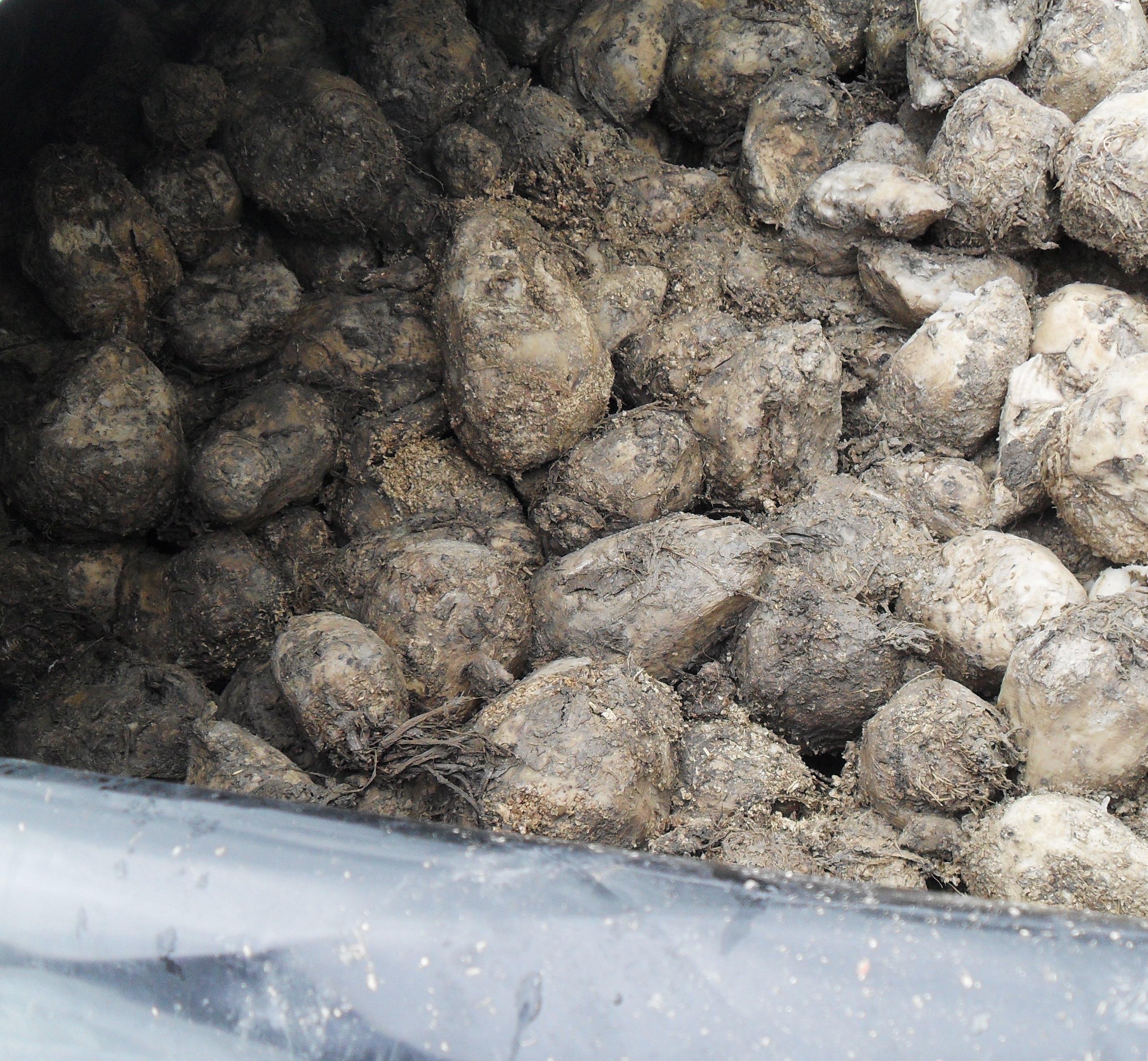 De afgelopen twee jaar is bij een melkveehouder een aantal proeven gedaan met het inbaggen van voederbieten in combinatie met sojahullen. De sojahullen nemen het vrijkomende vocht uit op de voederbiet, zodat het vrijkomende vocht met veel voederwaarde niet verloren gaat. Uit deze proeven blijkt dat voederbieten gecombineerd met sojahullen in een slurf goed jaarrond is te voeren.