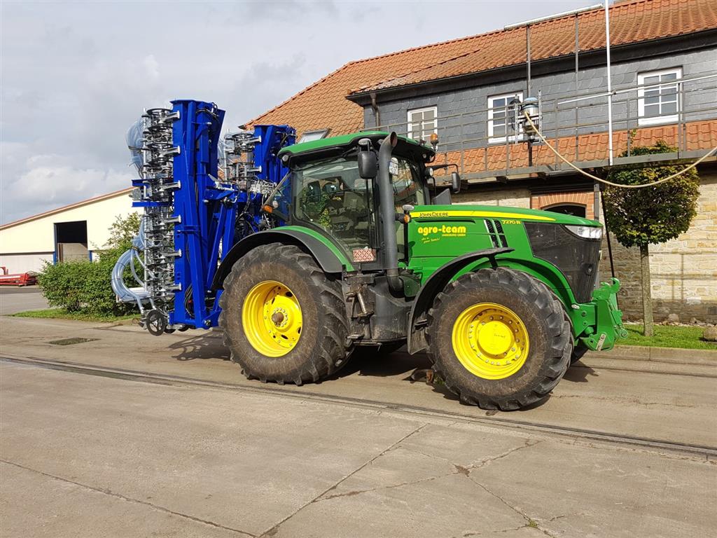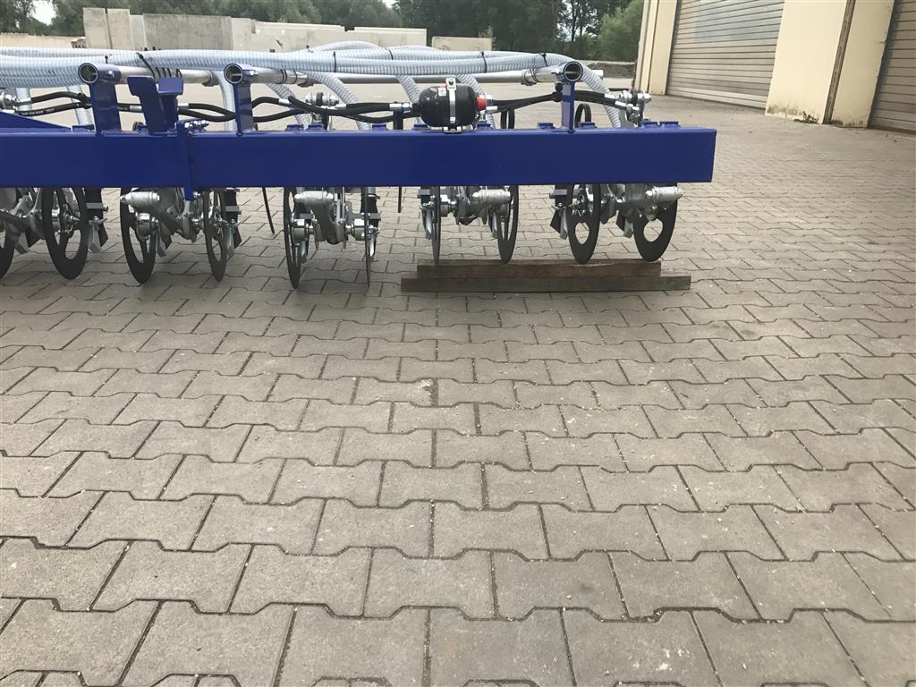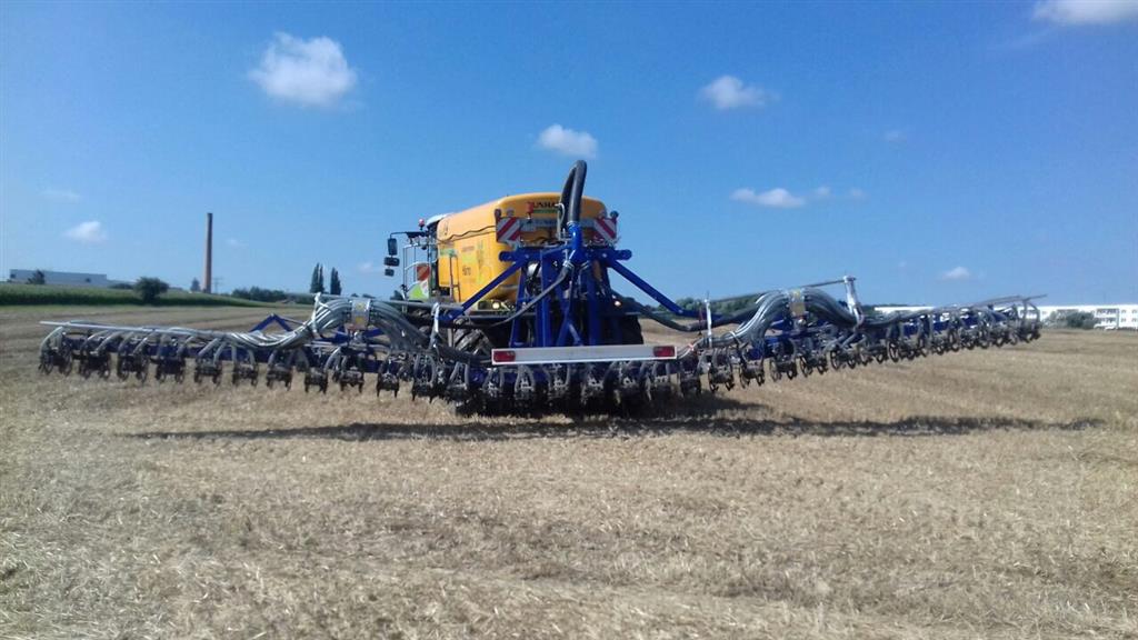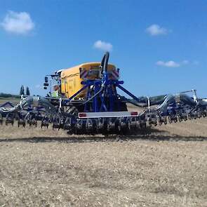 Op dit moment wordt de machine al enige tijd zeer intensief getest achter verschillende tractoren en zelfrijders op de wat grotere percelen in Dld met een gemiddelde snelheid van rond de 15 Km/h
