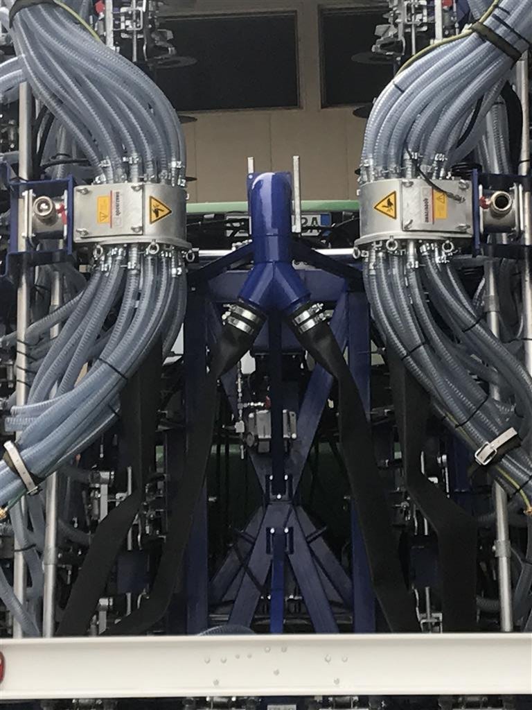 Verdelers komen van Vogelsang en wel het kompleet nieuw ontworpen ETX systeem.Deze werken beter in dikkere mest (direkt uit de put) en geven een minder pulserende uitstroming . Wat een betere verdeling en minder spetteren betekent dan met de verdelers tot nu toe.