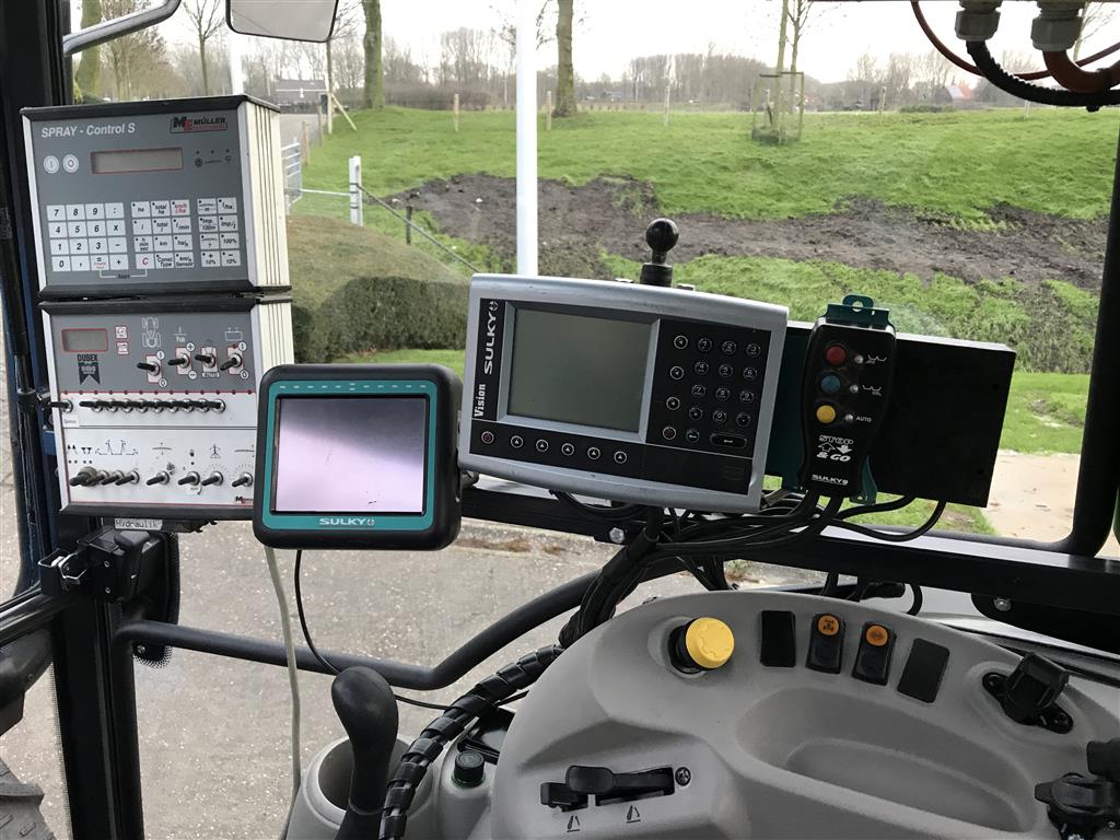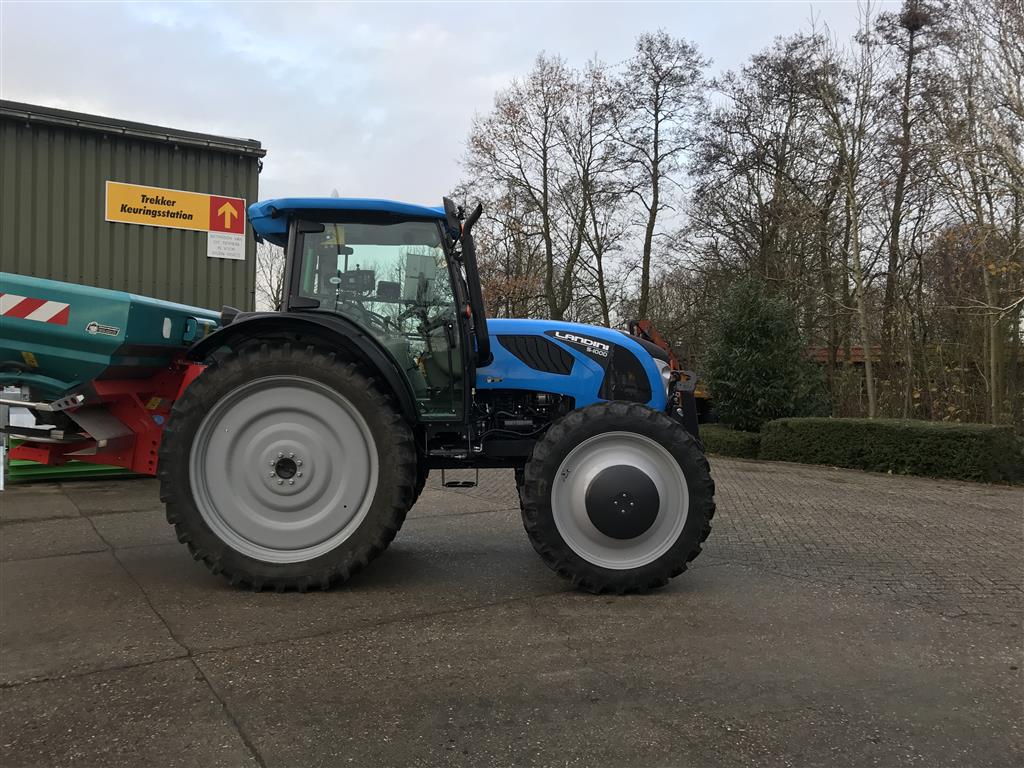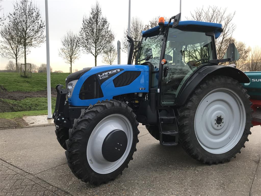 Afgeleverd op de vestiging bij Dick Klok Mechanisatie BV Heenvliet:Landini 5-100d, 4 wiel aangedreven met 80 cm bodemvrijheid.95 pk 4 cilinder Perkins motor.Deze trekker is voorzien van Airconditioning, 12/12 40 km/h versnellingsbak.BANDEN 300/90R50 en 270/95R36, spoor 1500 mm.Goppel fronthefinrichting.Portaal achteras is 60 graden gedraaid en vooras is verhoogd d.m.v. aandrijf kasten.