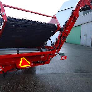 Door de toenemende vraag naar capaciteit is er een extra brede afvoer ontworpen onder de VSS Amac uienlader, deze afvoer is 130cm breed en net als de standaard afvoer (100cm brede) voorzien van hoge rubberen meenemers.Om de capaciteit van deze brede afvoer volledig te benutten is er een aangedreven band schuin onder de egelband geplaatst om de elevator over de complete breedte te vullen.