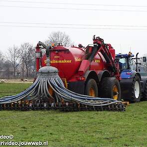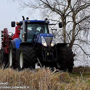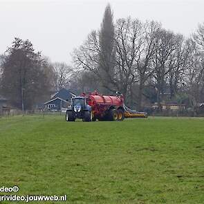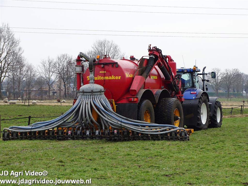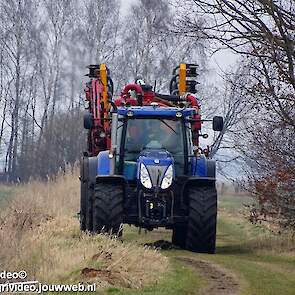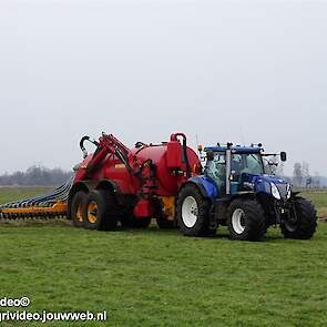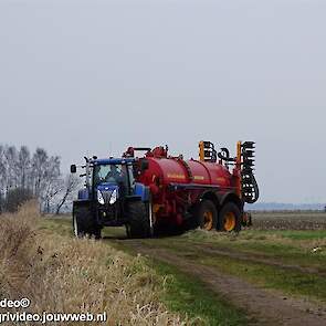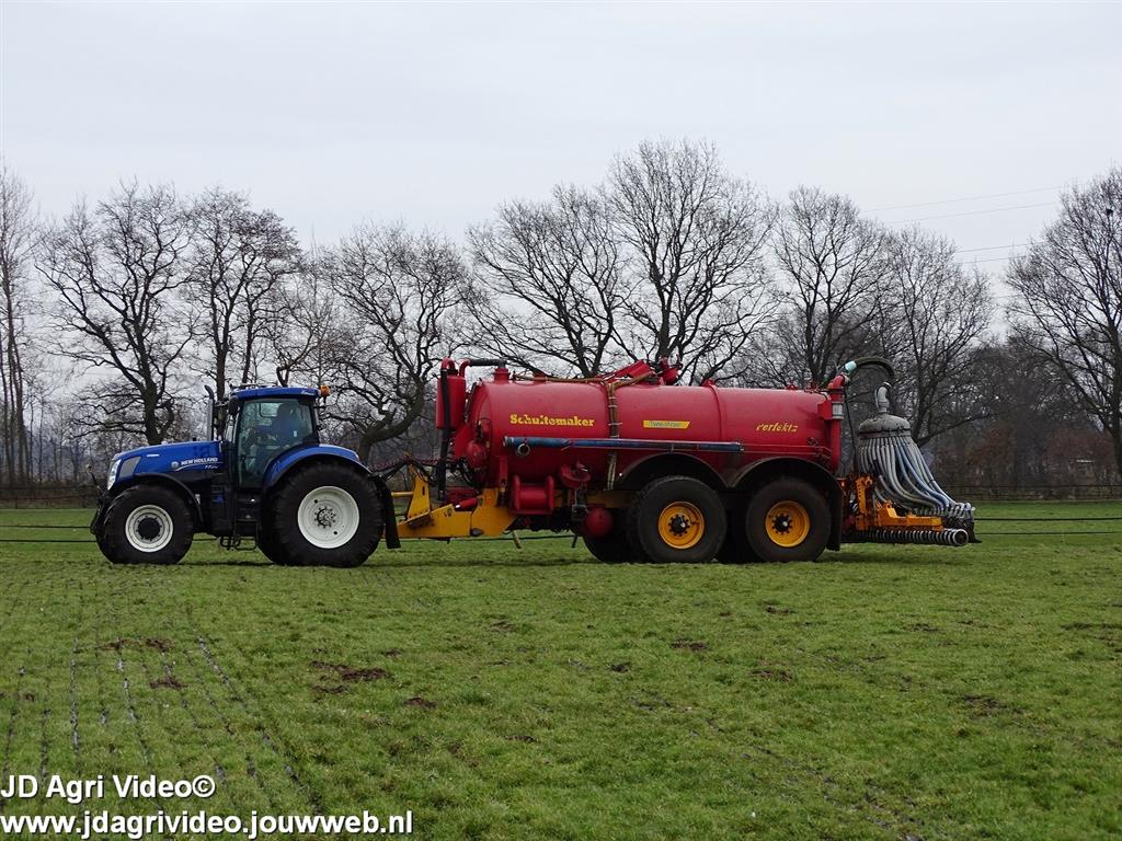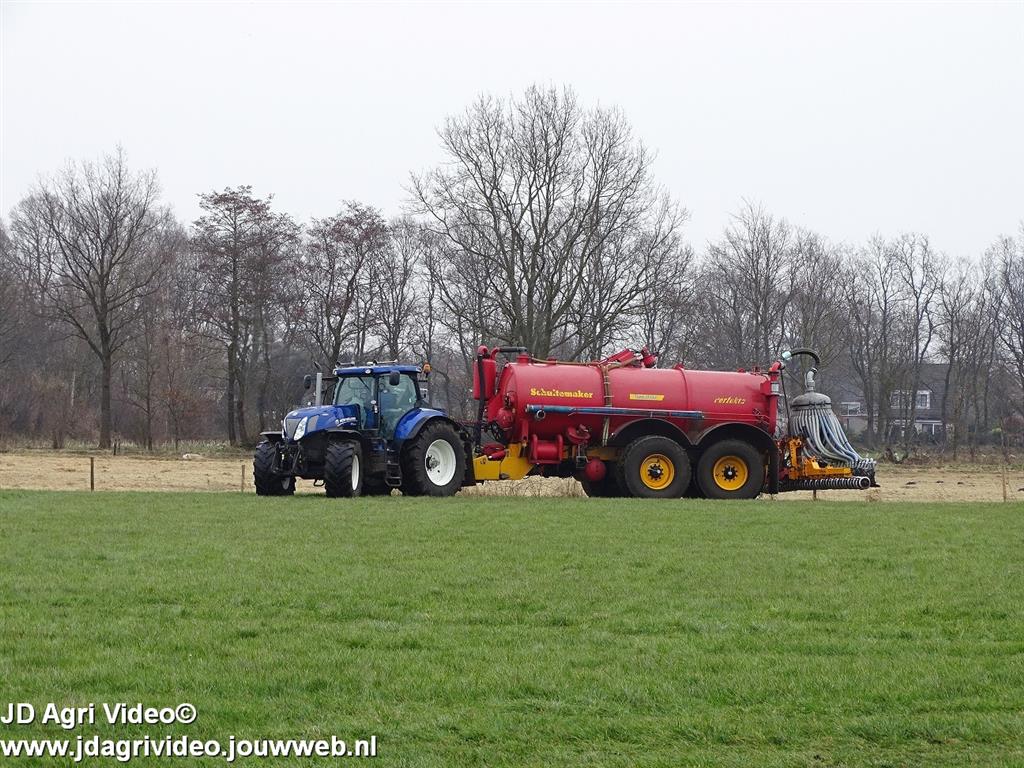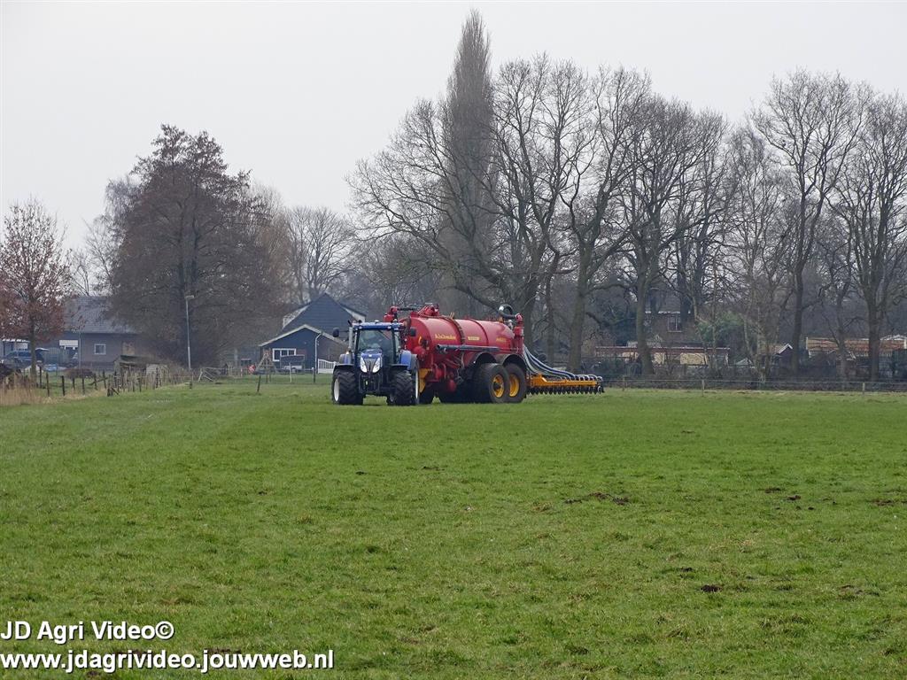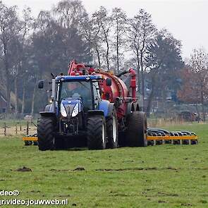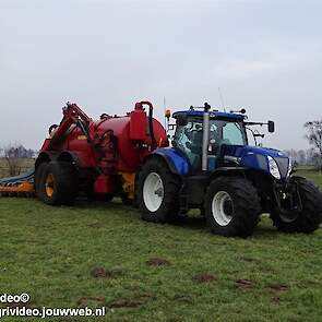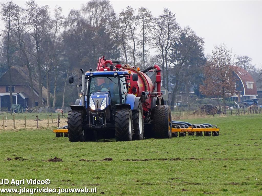 Loonbedrijf van Klompenburg uit Hulshorst aan het mest injecteren met een New Holland T7.270 Blue Power met een Schuitemaker Perfecta mesttank en Veenhuis bemester.