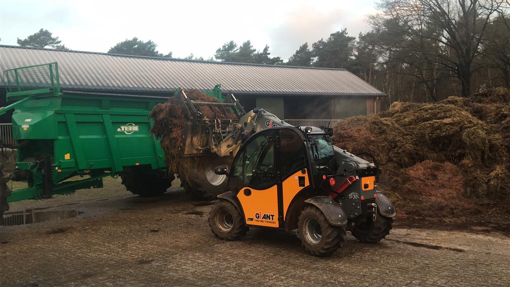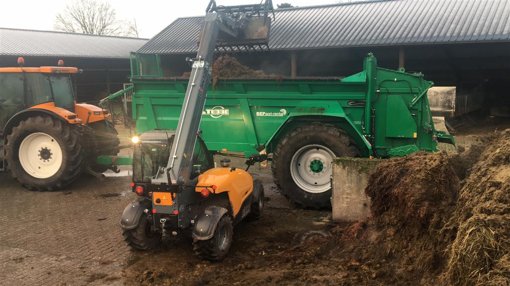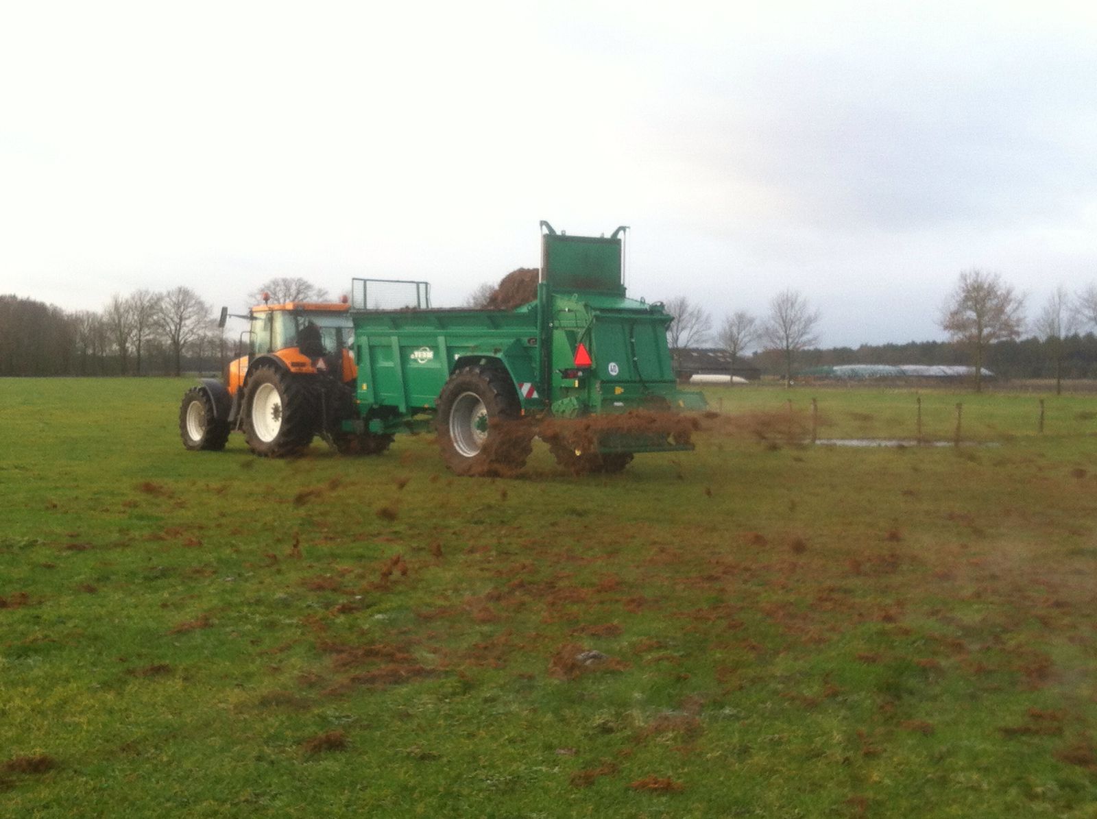 Paardenmest verspreiden met Tebbe MS140 van Bepagri-Rental uit Leende