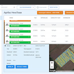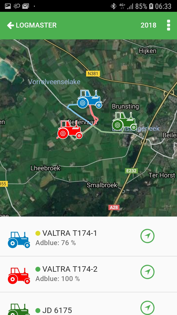 Via de webportal en smartphone app heeft u toegang tot overzichtelijke dashboards en actuele informatie van uw machinevloot. Deze geven een goed beeld van de efficiëntie en de voortgang van bewerkingen zodat u goed kunt plannen en inspelen op de situatie. Ook de medewerkers kunnen live zien waar collegas zich bevinden, wat erg handig is voor oogstcombinaties en voor bevoorrading. Daarnaast leest LogMaster motordata uit via de CANbus, zoals toerental, brandstofverbruik, brandstofniveau, motorbelasting, urenstand en meer. Al deze gegevens worden in Google Maps weergegeven, zodat u kaarten van de bewerkte percelen krijgt met bijvoorbeeld de plaatsspecifieke motorbelasting. Interessant is ook om met de LogMaster te vergelijken welke chauffeur en trekker het zuinigst werken.