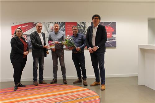 Peter van der Wardt, wethouder gemeente Oude IJsselstreek, reikte maandagmiddag bij Kramp in Varsseveld het bordje Unieke Achterhoekers aan het werk uit aan logistiek manager Frank Dijkstra. Accountmanager Sjoerd Westra van Werkgeversservicepunt Achterhoek overhandigde een bos bloemen aan Jan Frans Berends, logistiek directeur bij Kramp. Kramp doet namelijk mee aan het initiatief Unieke Achterhoekers aan het werk. Dit initiatief richt zich op Achterhoekers die ondersteuning nodig hebben bij het vinden van een baan. Kramp is één van de bedrijven die mensen met een arbeidsbeperking óf een grote afstand tot de arbeidsmarkt een kans biedt in hun organisatie via een baan of werkervaringsplek.