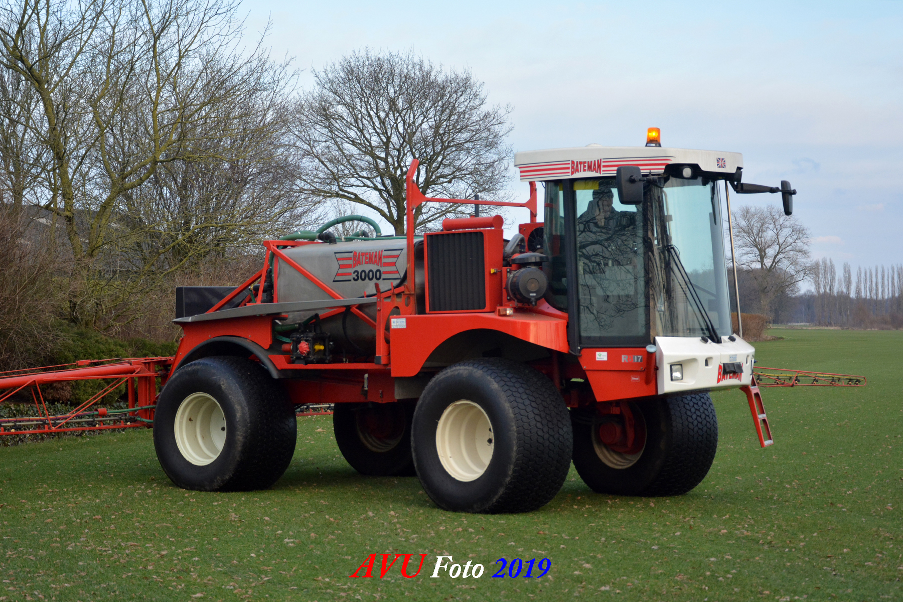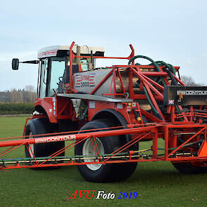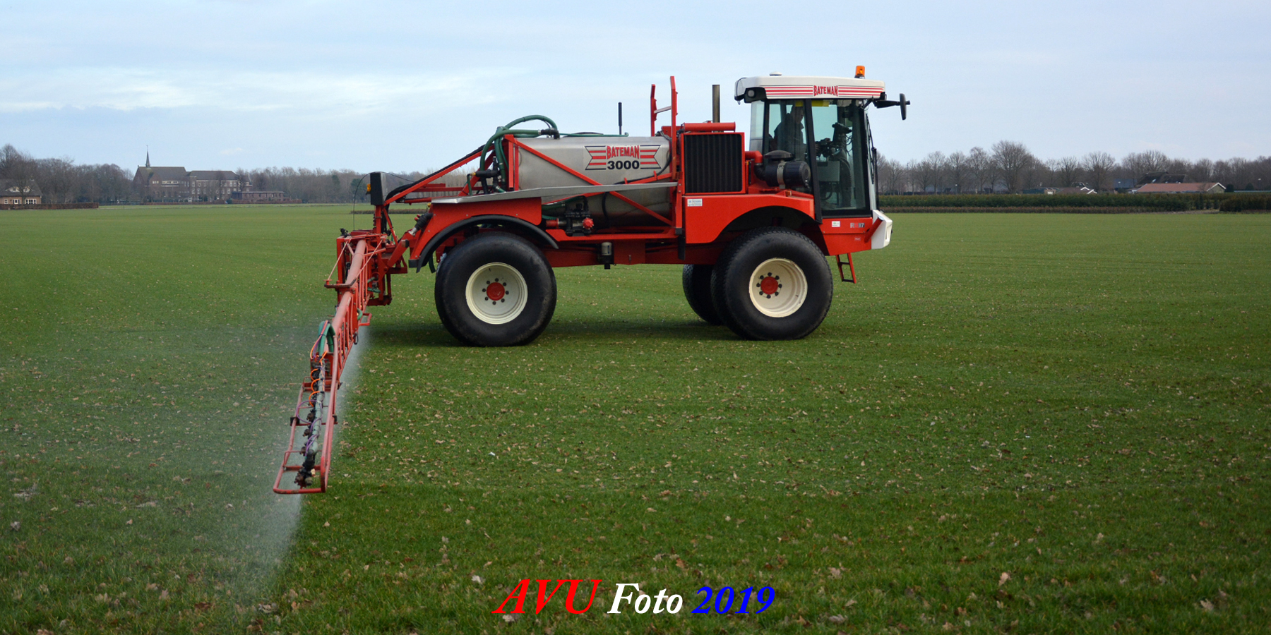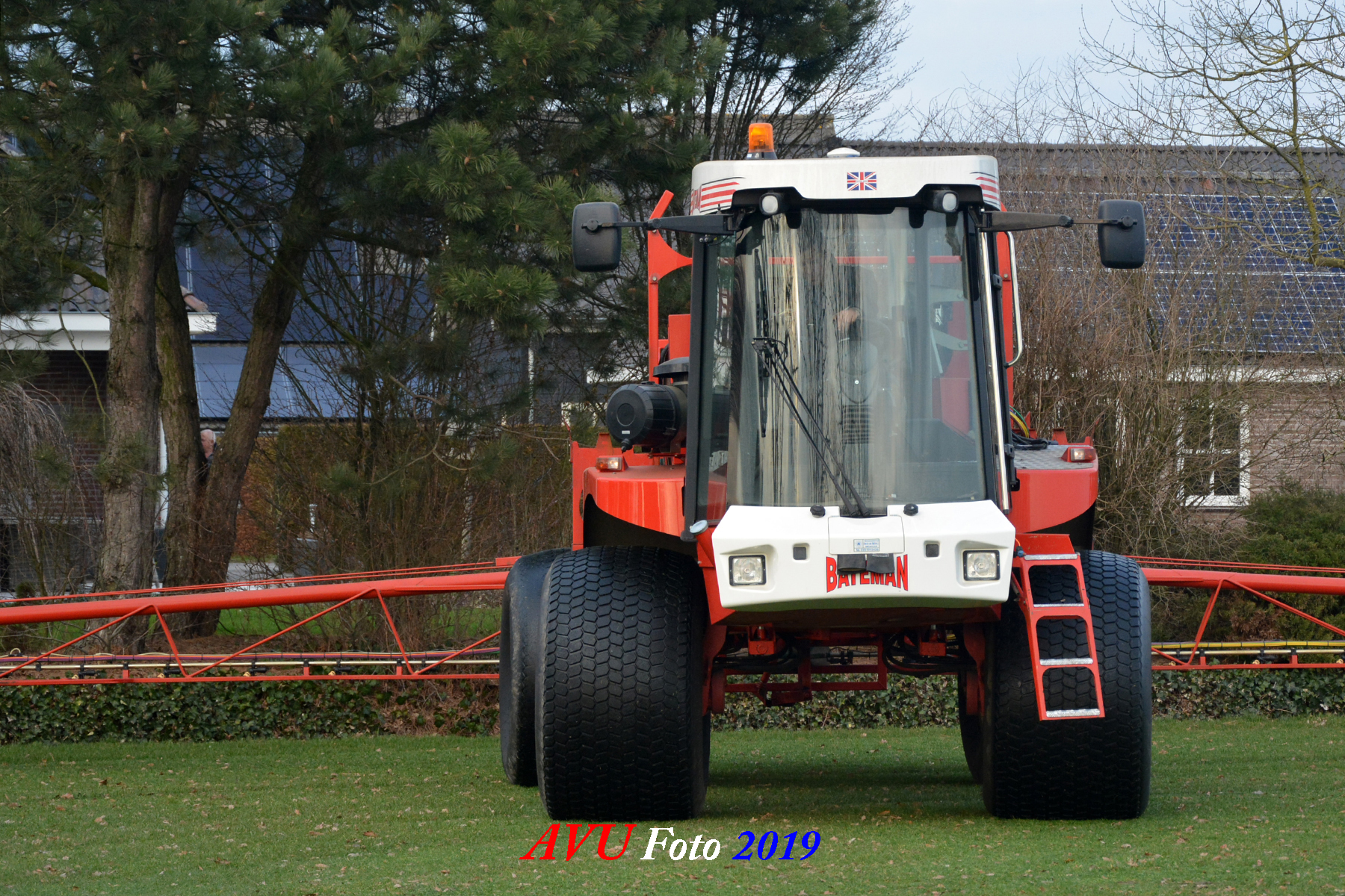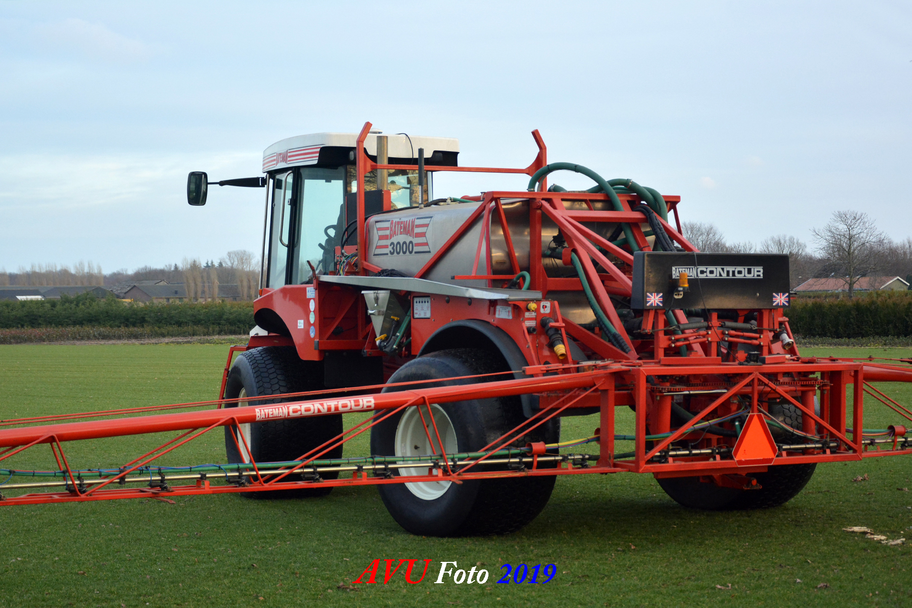 Deze Bateman 3000 Contour zelfrijdende spuit is voorzien van superbrede banden voor de minimaalste insporing op deze grote gazonzodenkwekerij in Biezenmortel. Bij het wegtrekken is er geen verschil te zien aan de zoden, wat zeer belangrijk is. Reageren mag.