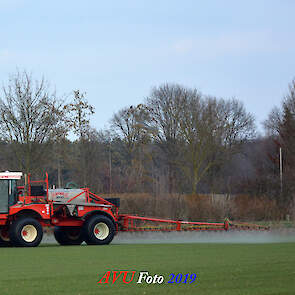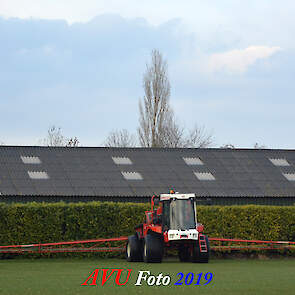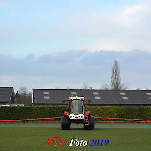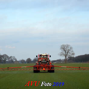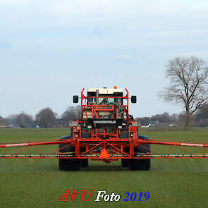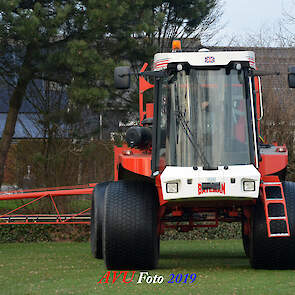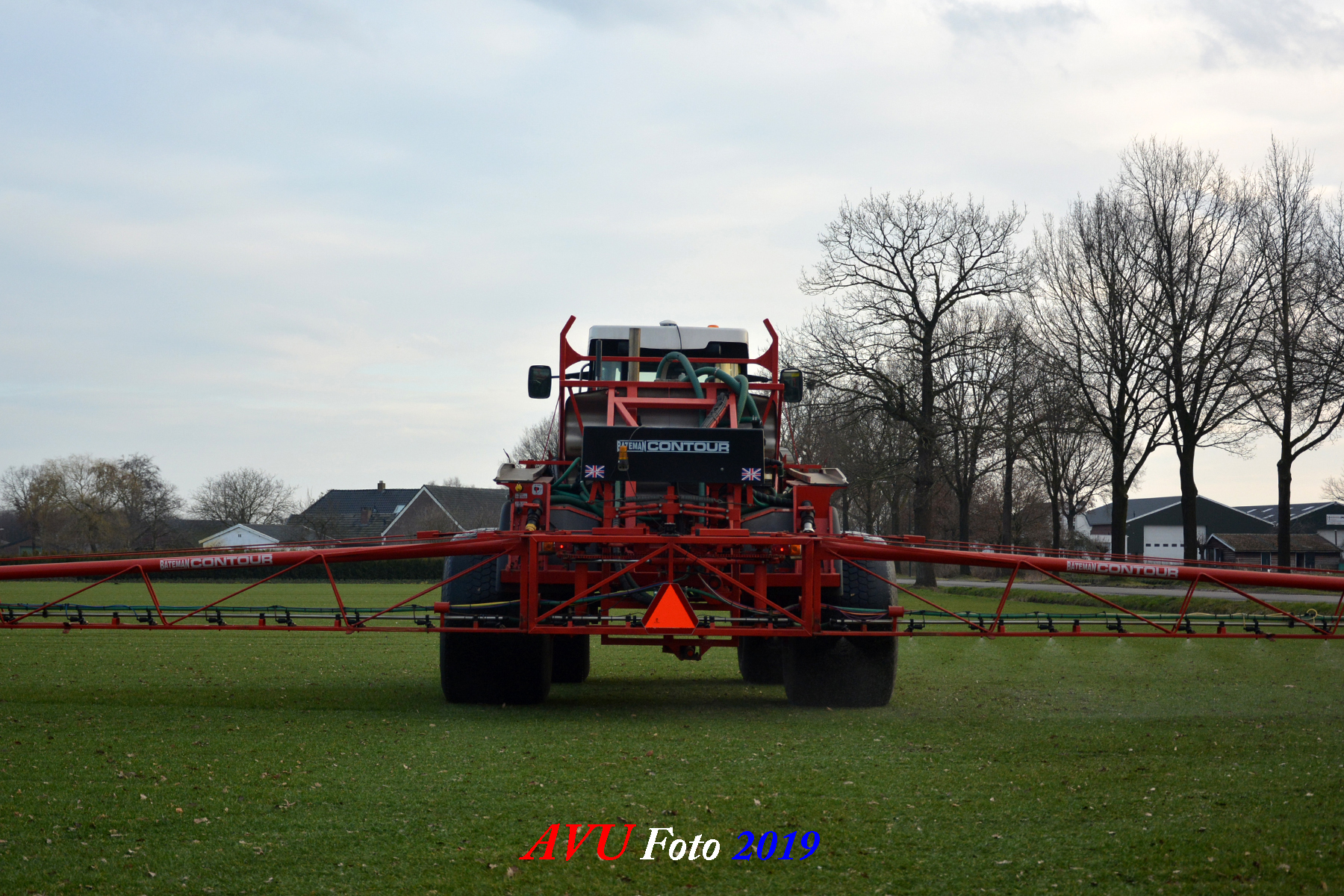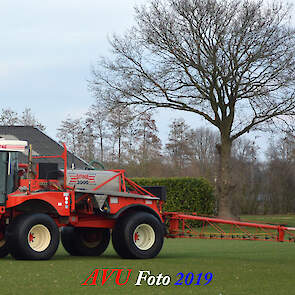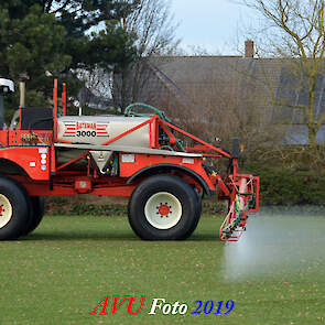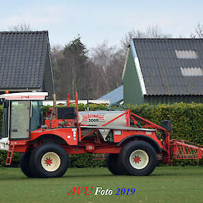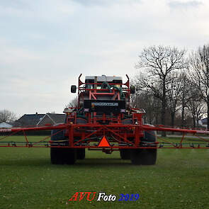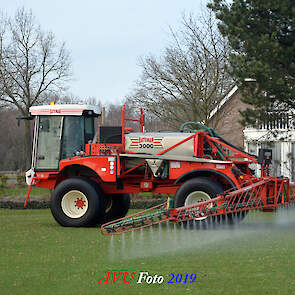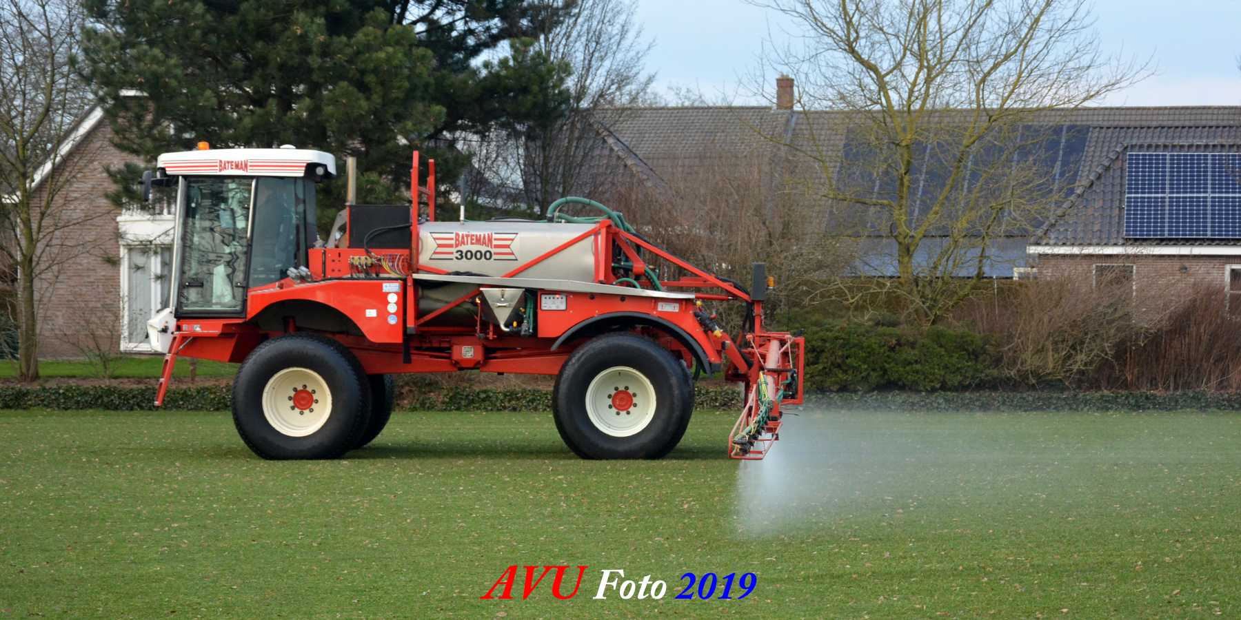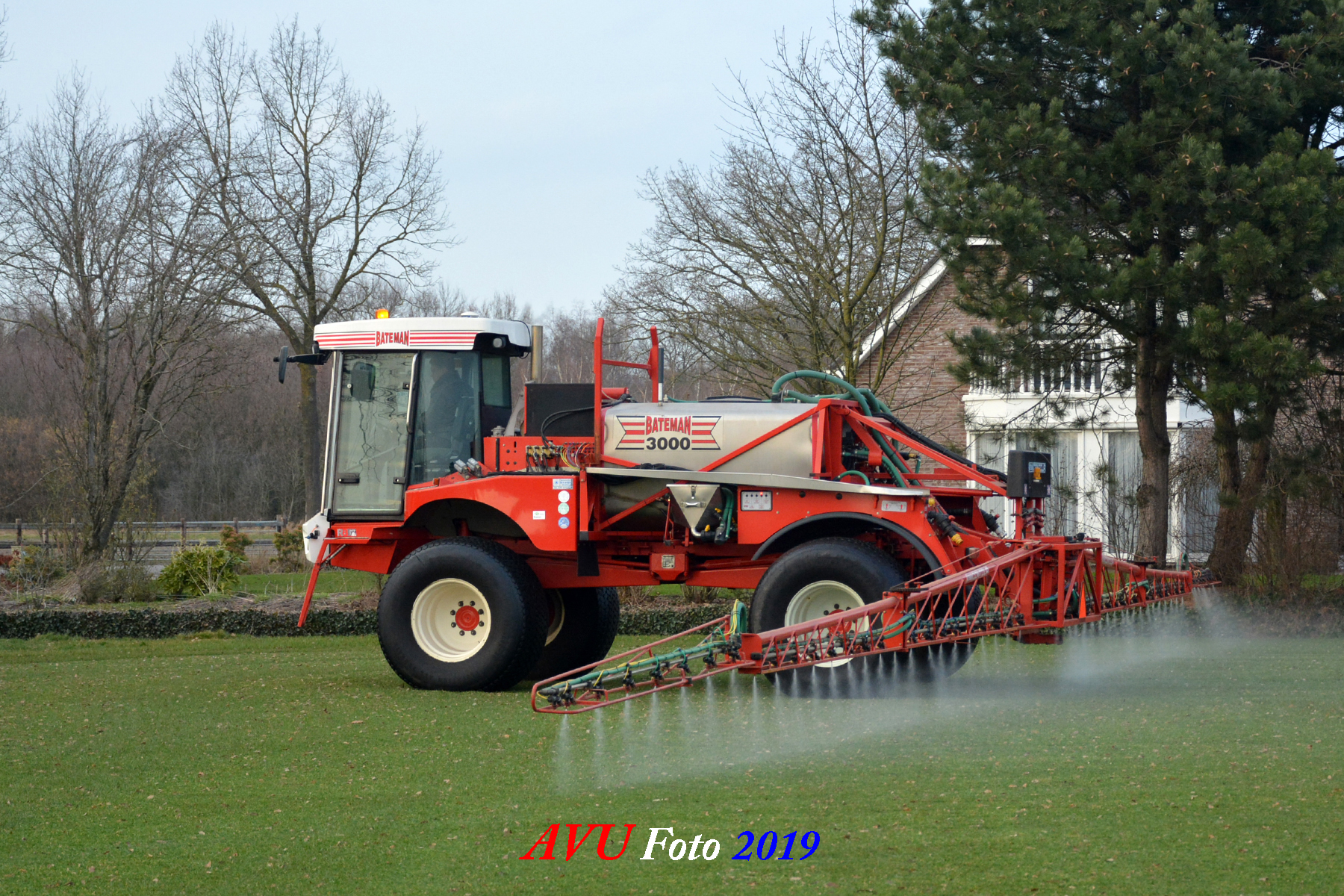 Deze Bateman 3000 Contour zelfrijdende spuit is voorzien van superbrede banden voor de minimaalste insporing op deze grote gazonzodenkwekerij in Biezenmortel. Bij het wegtrekken is er geen verschil te zien aan de zoden, wat zeer belangrijk is. Reageren mag.