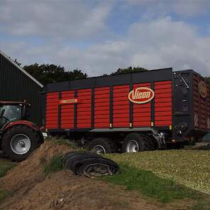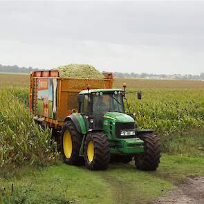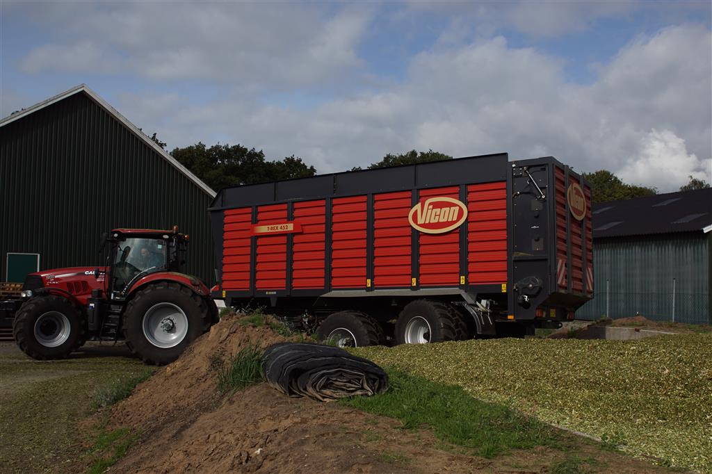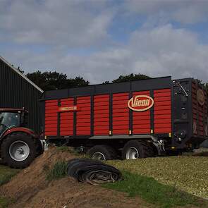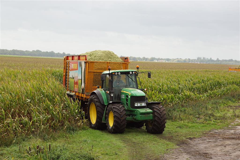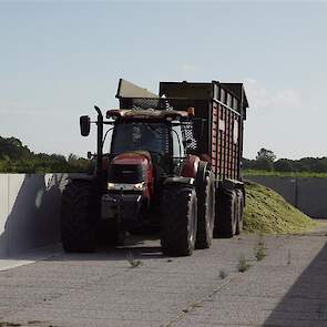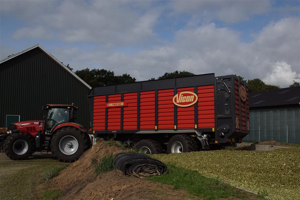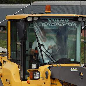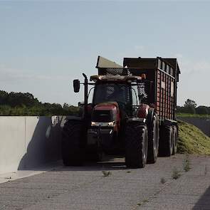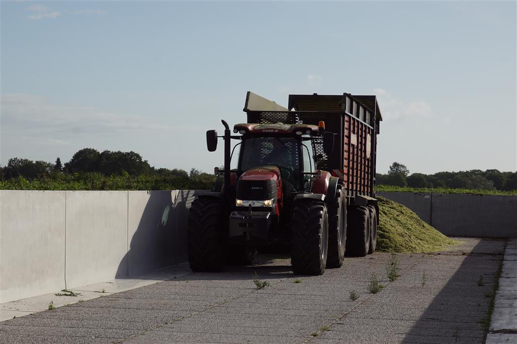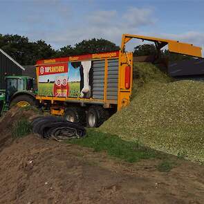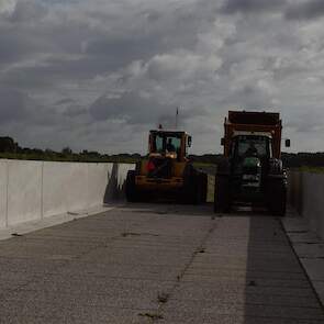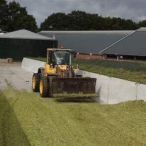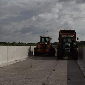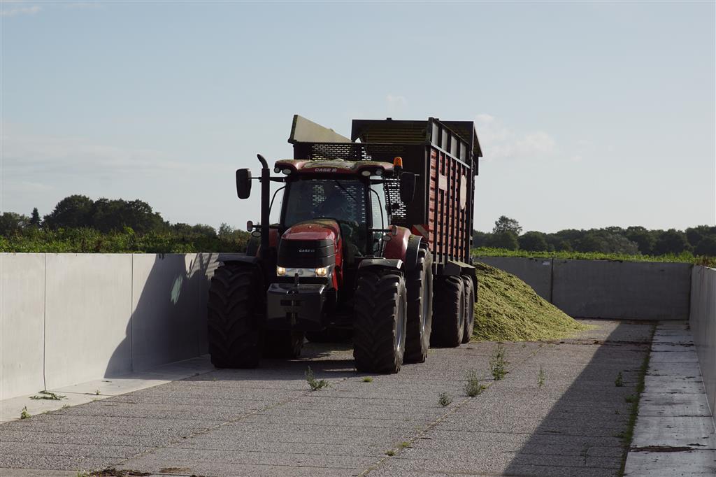 De shovelmachinist, van de Coöperatieve Werktuigenvereniging uit Emmen, is geconcentreerd bezig om er weer een mooie maiskuil van te maken.