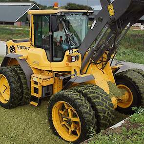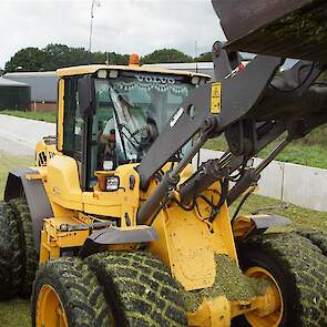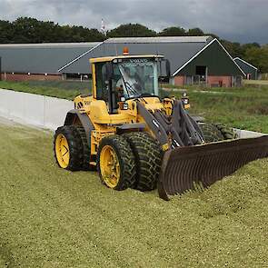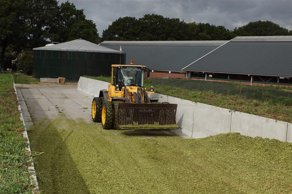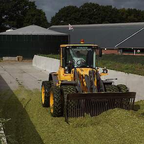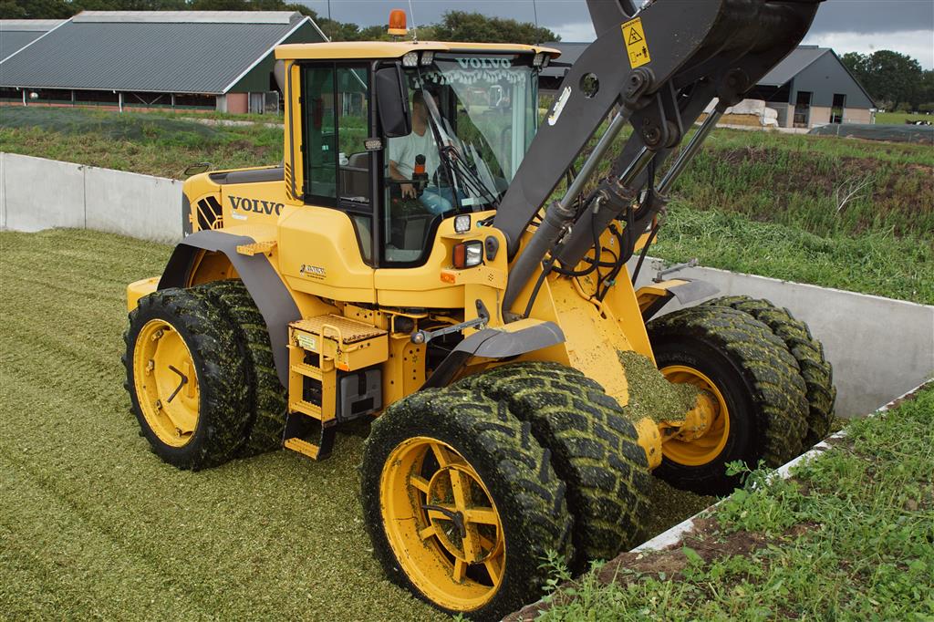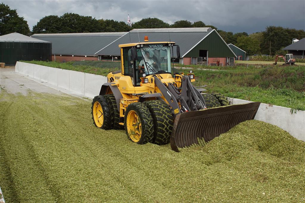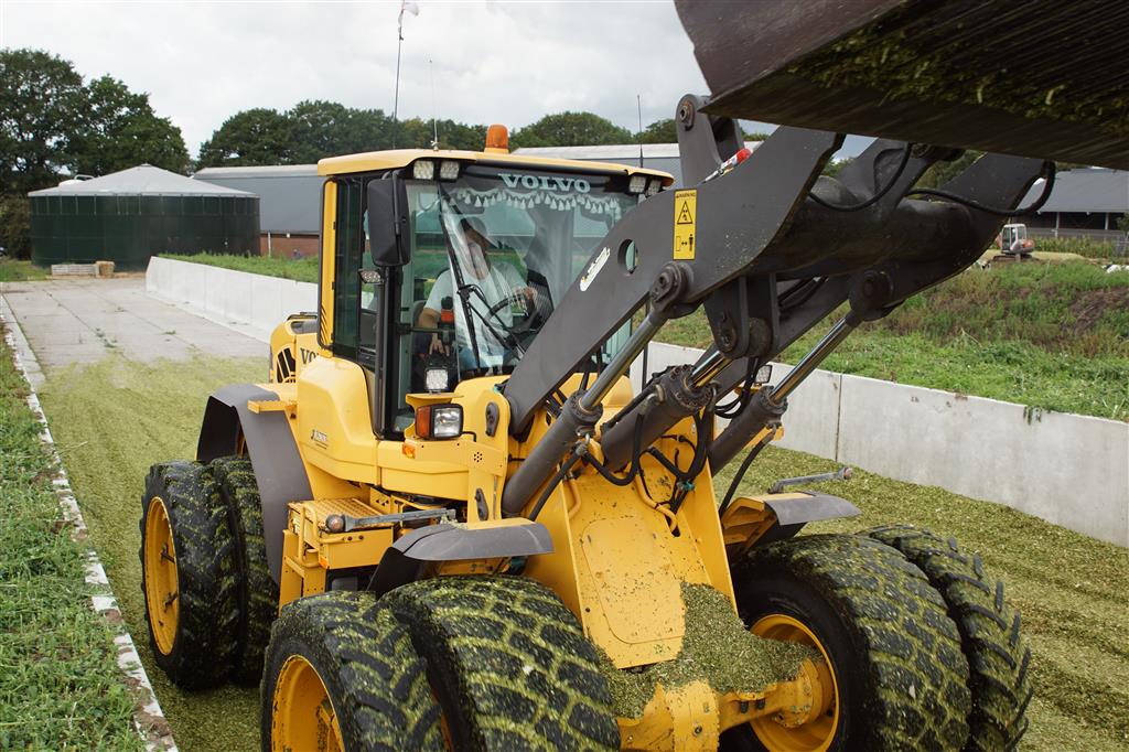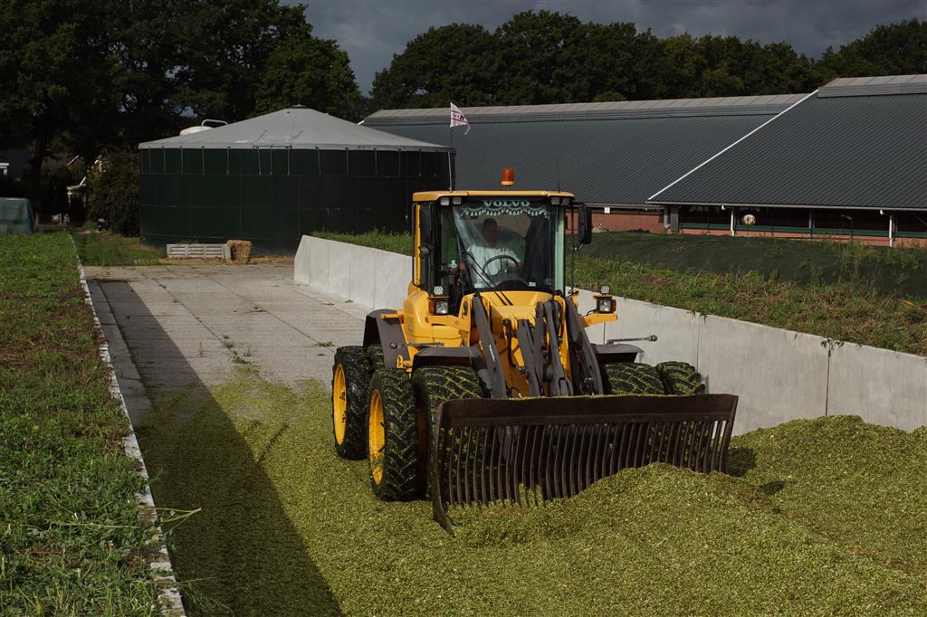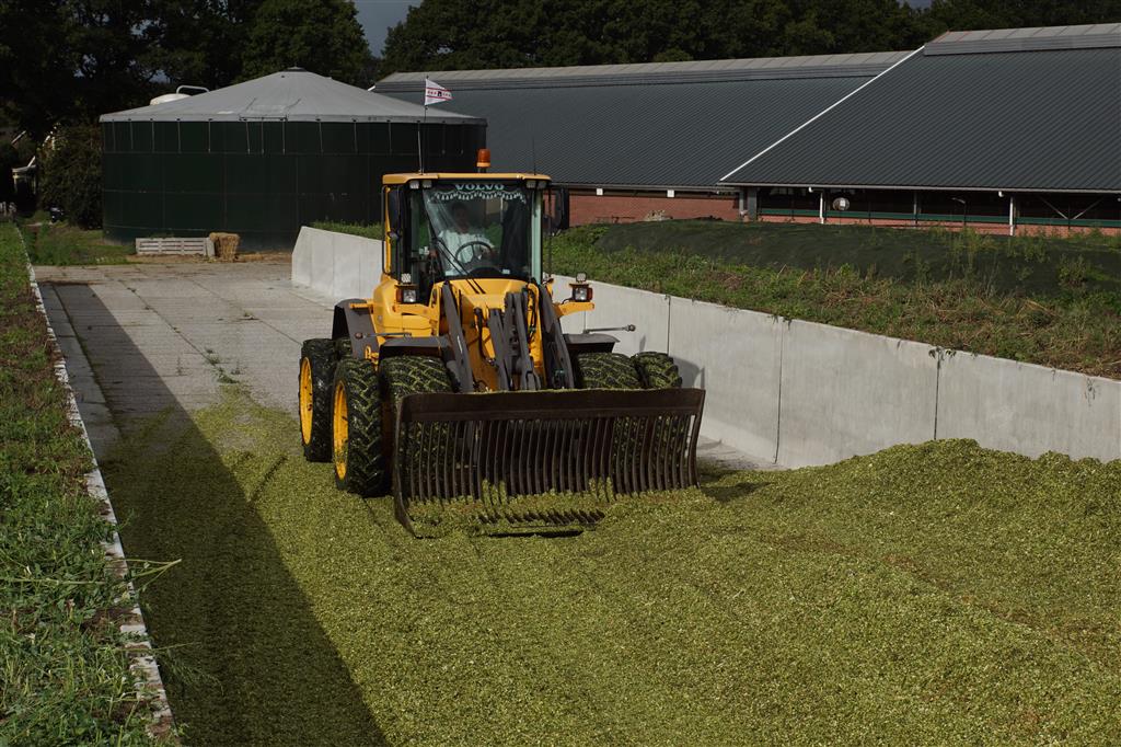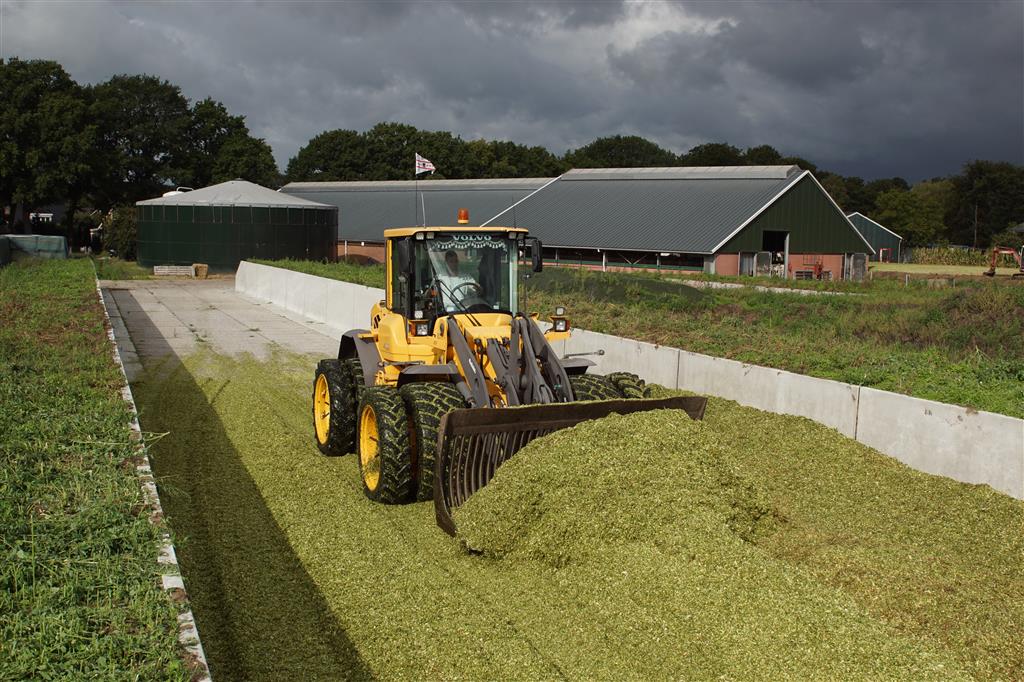 Volvo-shovel op de maiskuil