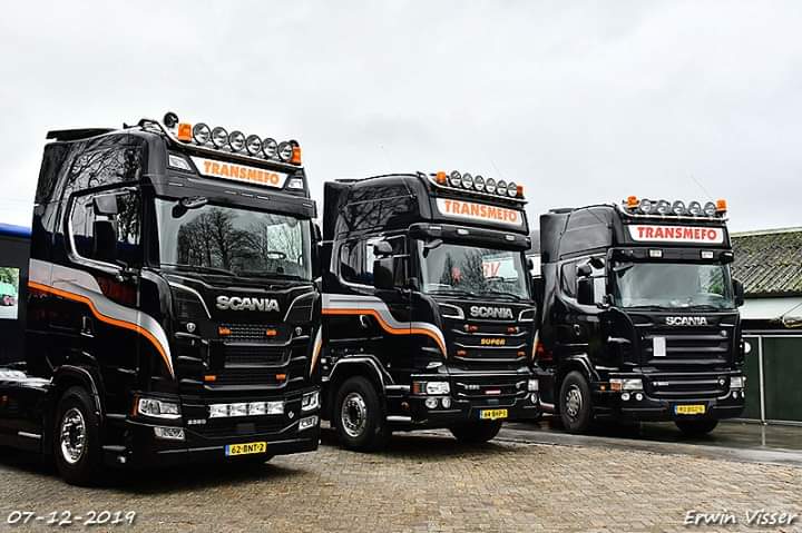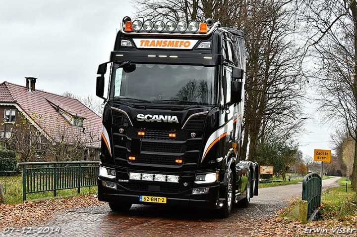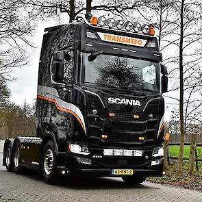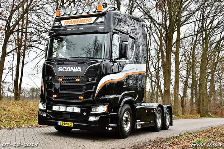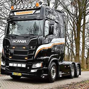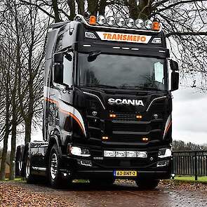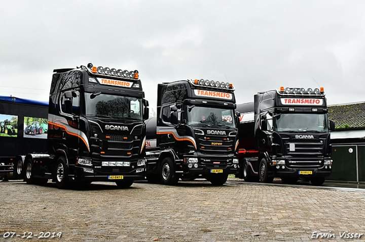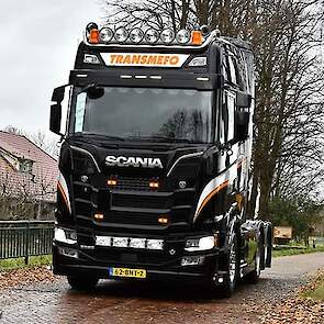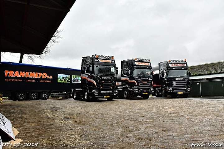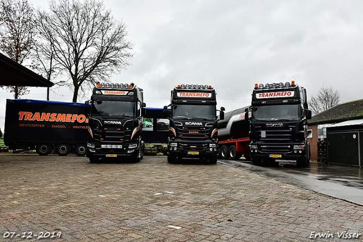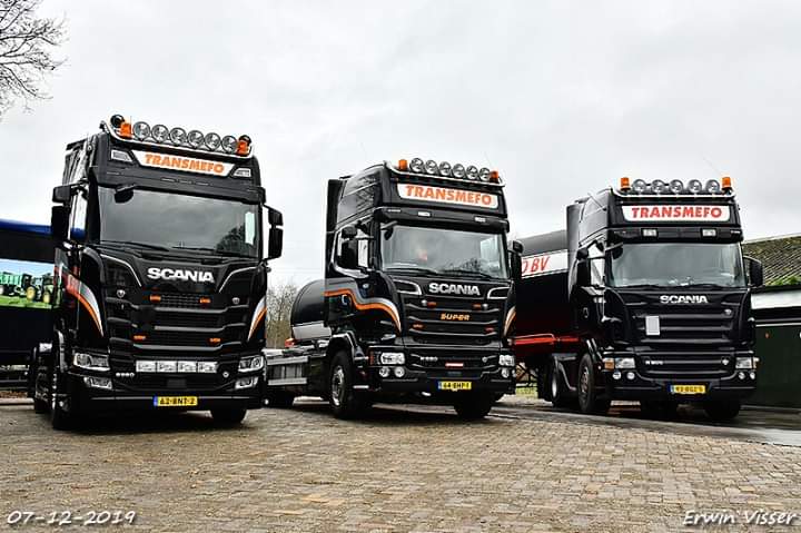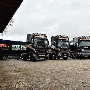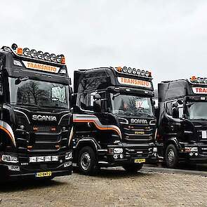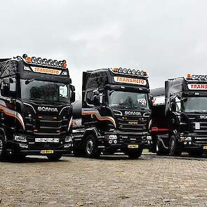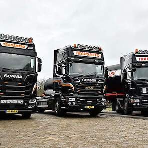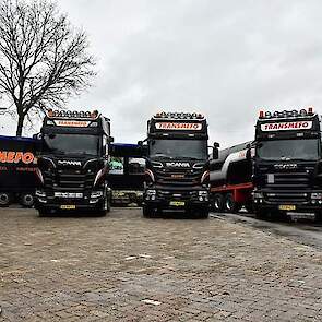Drie Scania V8-trucks in de mest bij Transmefo BV