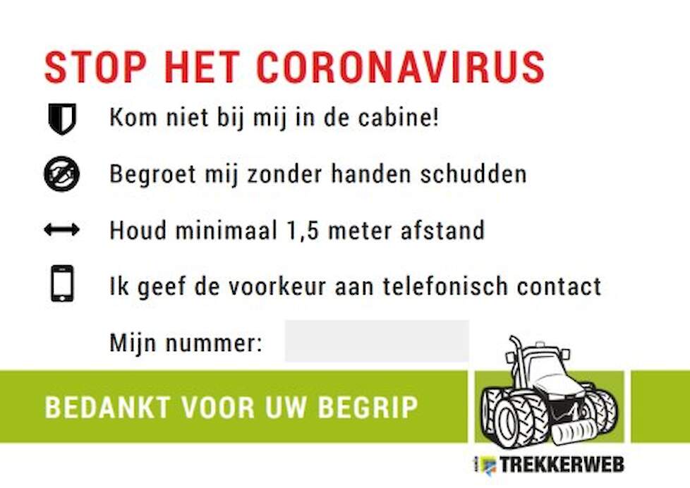 Omdat we allemaal weer massaal op het land aan de slag gaan, hebben we voor jullie een format gemaakt om op je trekkerdeur te plakken, zodat je ook in deze omstandigheden goed en veilig kunt werken.