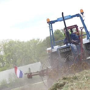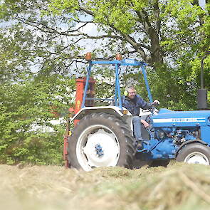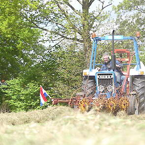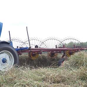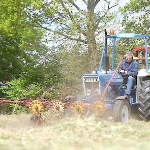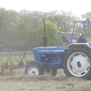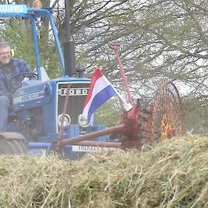 Na twee uur knooien in het eerste gras met de Ford 4600 en de Acrobaat in de front, stond Handels- en Loonbedrijf Kuper BV al startklaar met de pers en wikkelaar om binnen het kwartier het mooi bijeen geharkte perceel in pak te persen en te wikkelen. Dus van het mooi bijeengeharkte veldje konden we deze keer niet echt lang genieten.