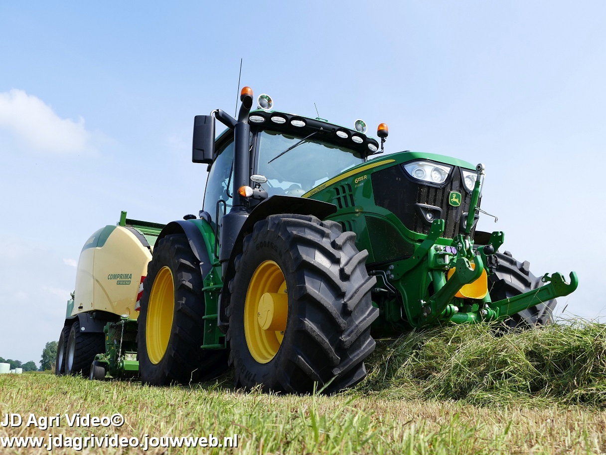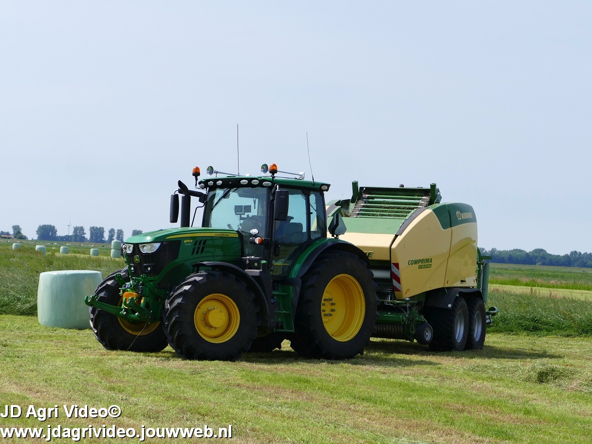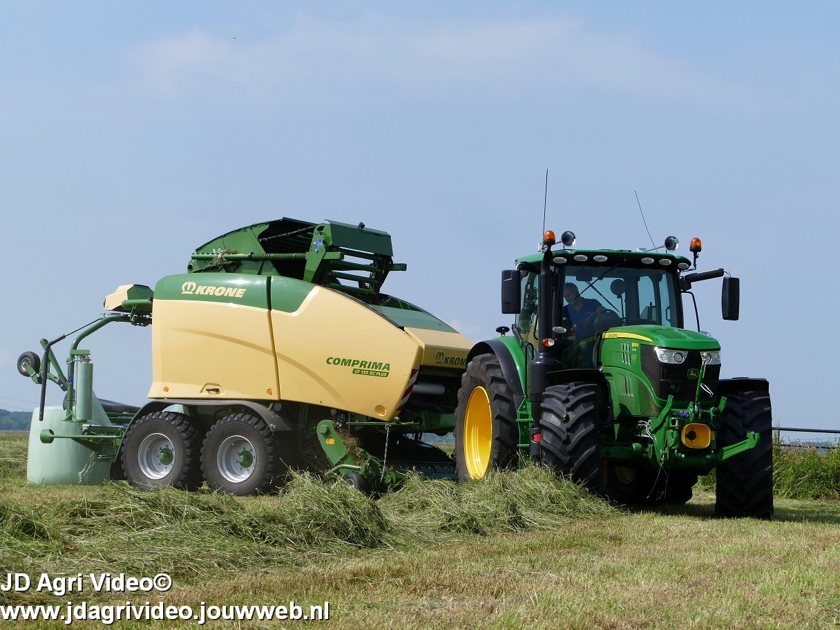 John Deere 6155R en nieuwe Krone Comprima CF 155 XC Plus