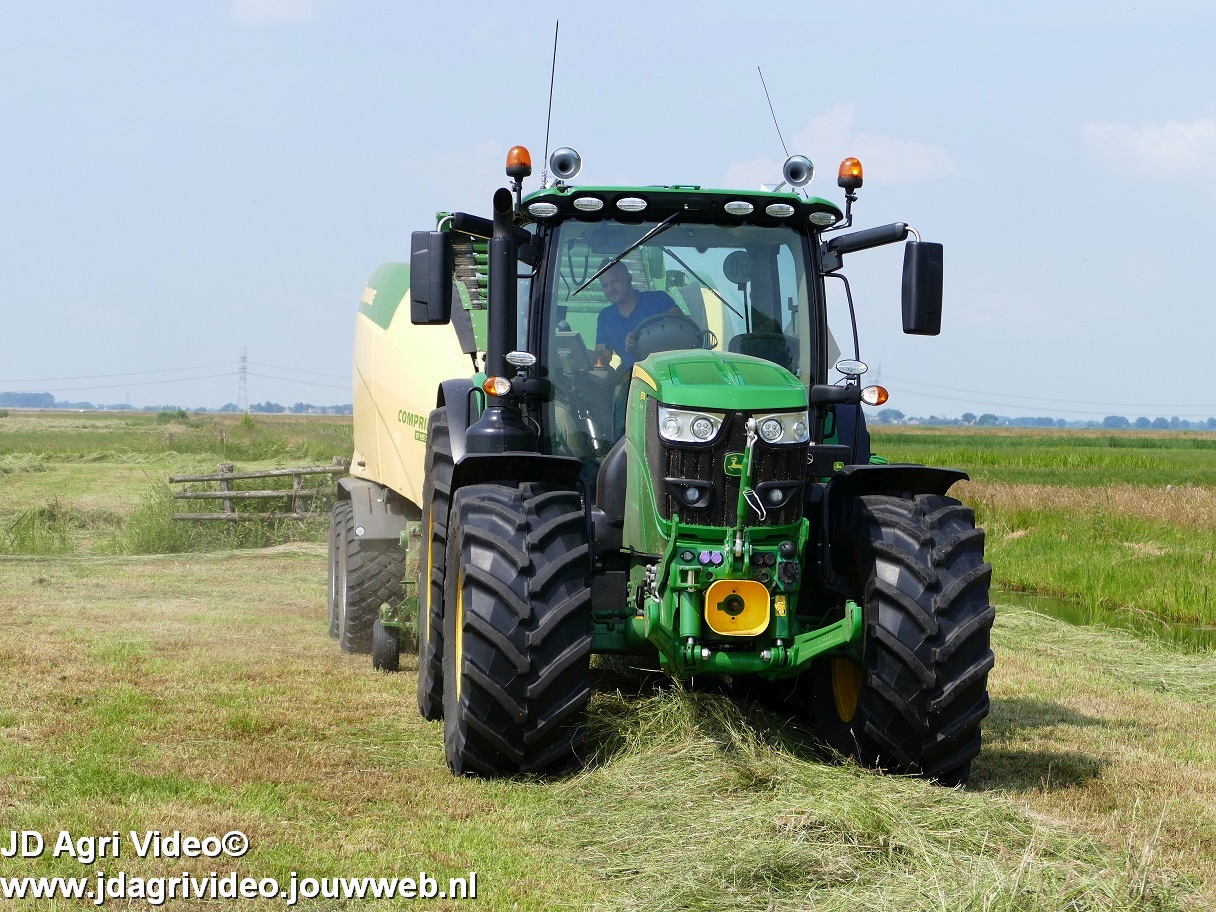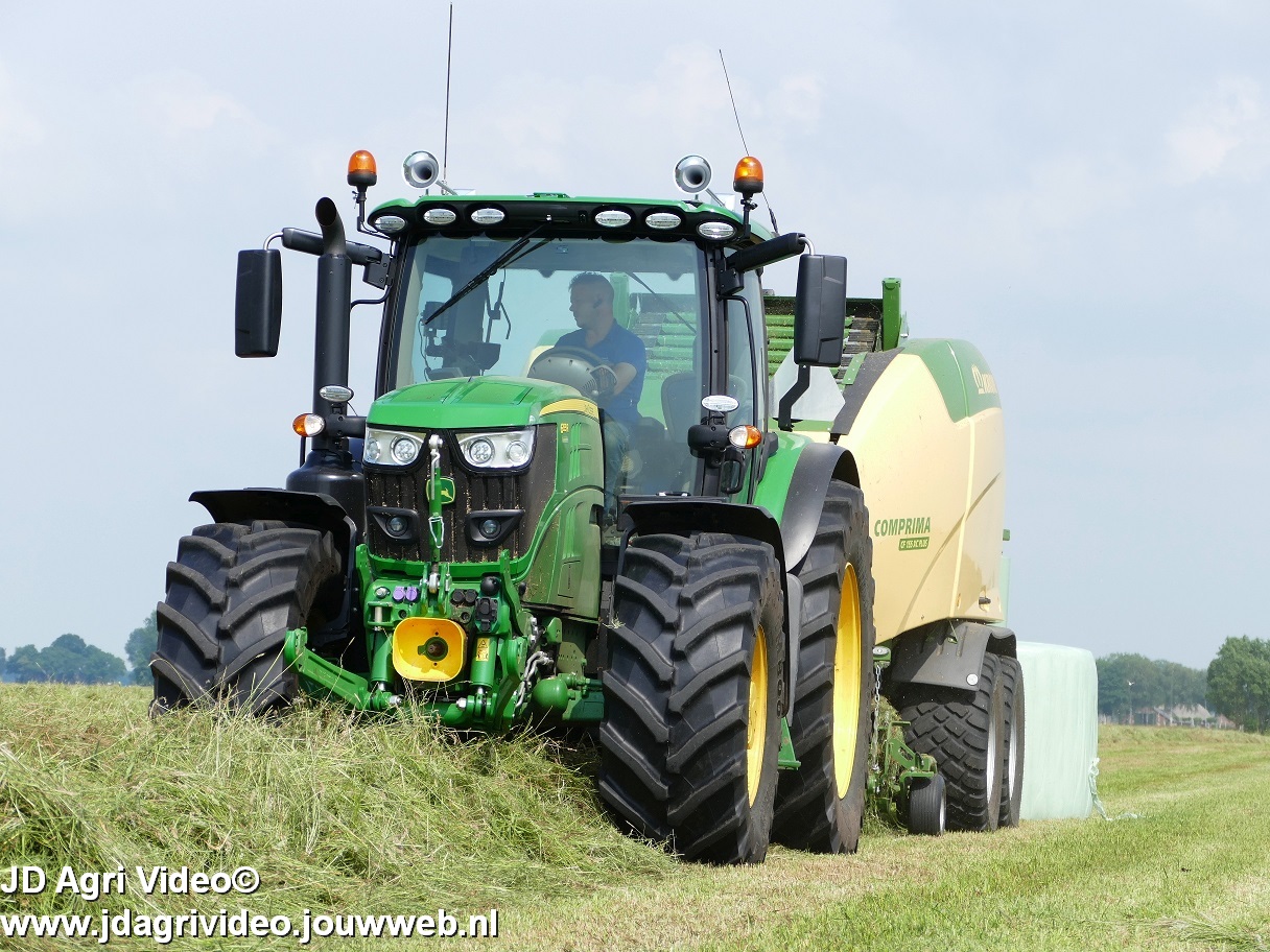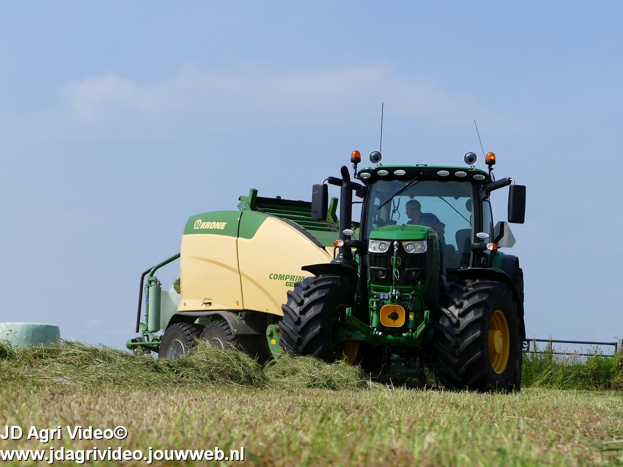 John Deere 6155R en nieuwe Krone Comprima CF 155 XC Plus