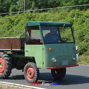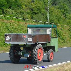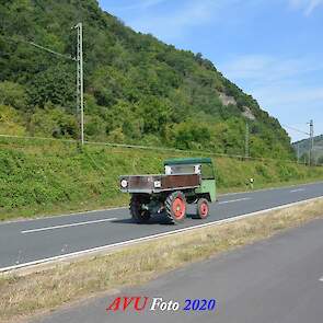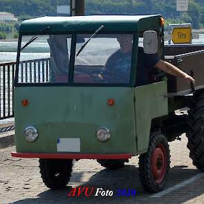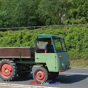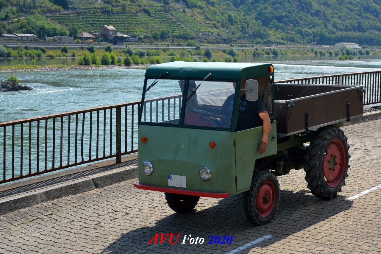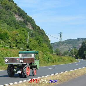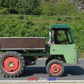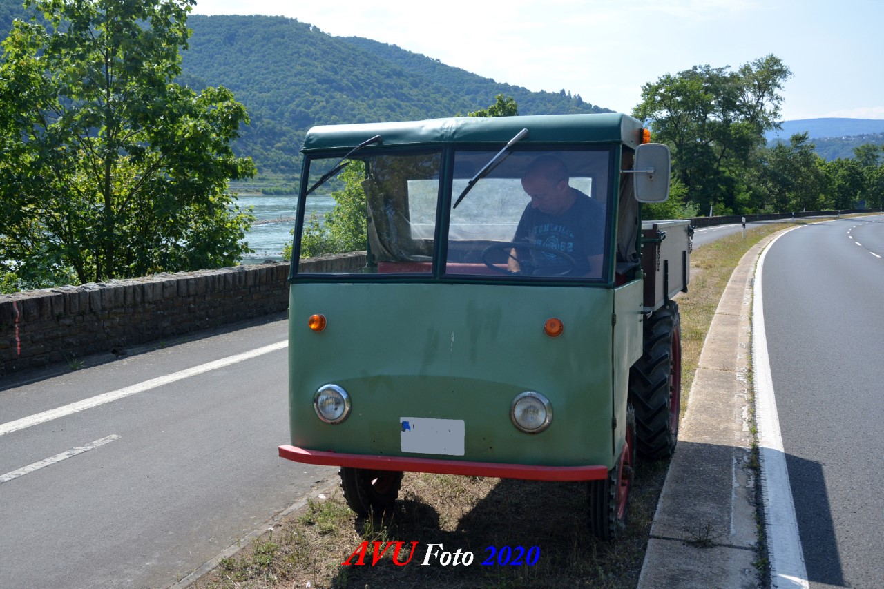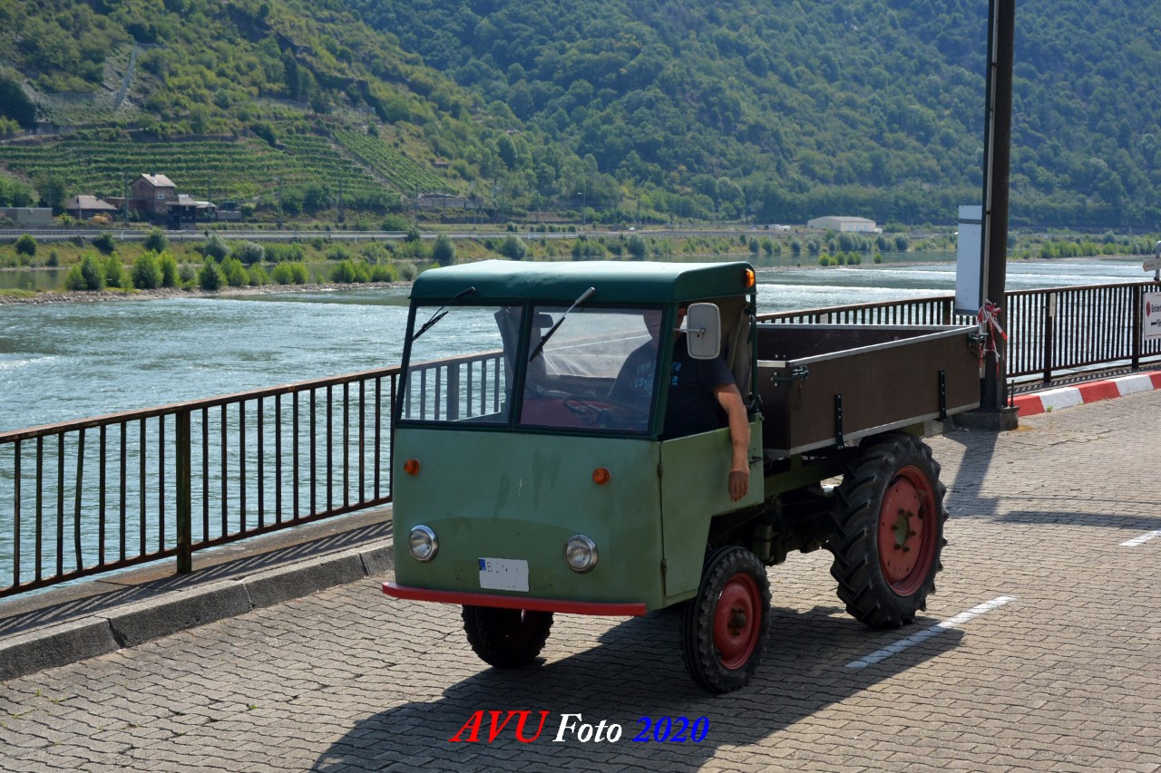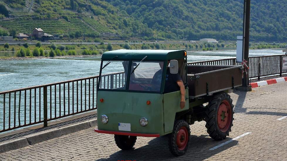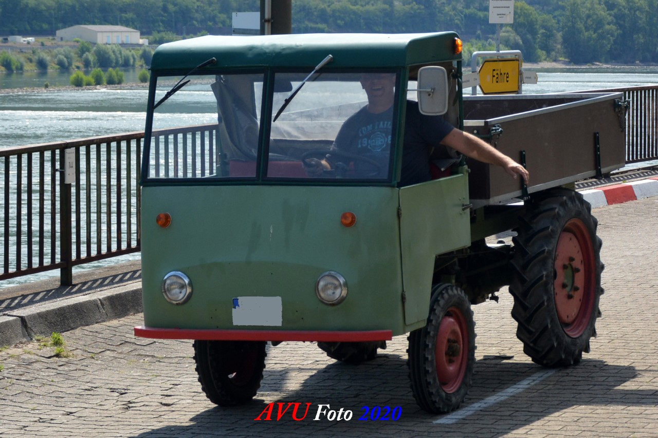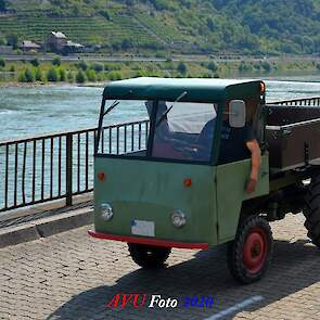 Al fietsend vanaf Frankfurt am Main hoorde ik op de achtergrond iets aankomen, dacht dat het een oude Unimog zou zijn, keek om en greep mijn camera. De eigenaar stopte ook meteen en vroeg waarom ik foto’s maakte, Trekkerweb natuurlijk. Het bijzondere van deze door Josef Huber & Heinz Wossner in 1961 gebouwde Mulag HW MD 14-4 Bergtractor was dat er indertijd slechts 20 van gebouwd zijn met een JLO DL 660, 657 cc, 14 pk 1-cylinder 2-takt dieselmotor met ZF 2x3 versnellingsbak en teruguit. In de loop der jaren ging Mulag in 1964 ook vliegtuigtrekkers bouwen en vanaf 1971 de bekende maaiers, versnipperaars, enz., passend voor o.a. Unimog-trekkers. De eigenaar was zeer tevreden over het bijna 60-jarige voertuigontwerp welke hij dagelijks nog in gebruik heeft en dan vooral in zijn wijngaarden. Hij parkeerde deze naast de Rijn en stak deze, met een afscheidsgroet, met de veerpont over. Echt iets bijzonders.