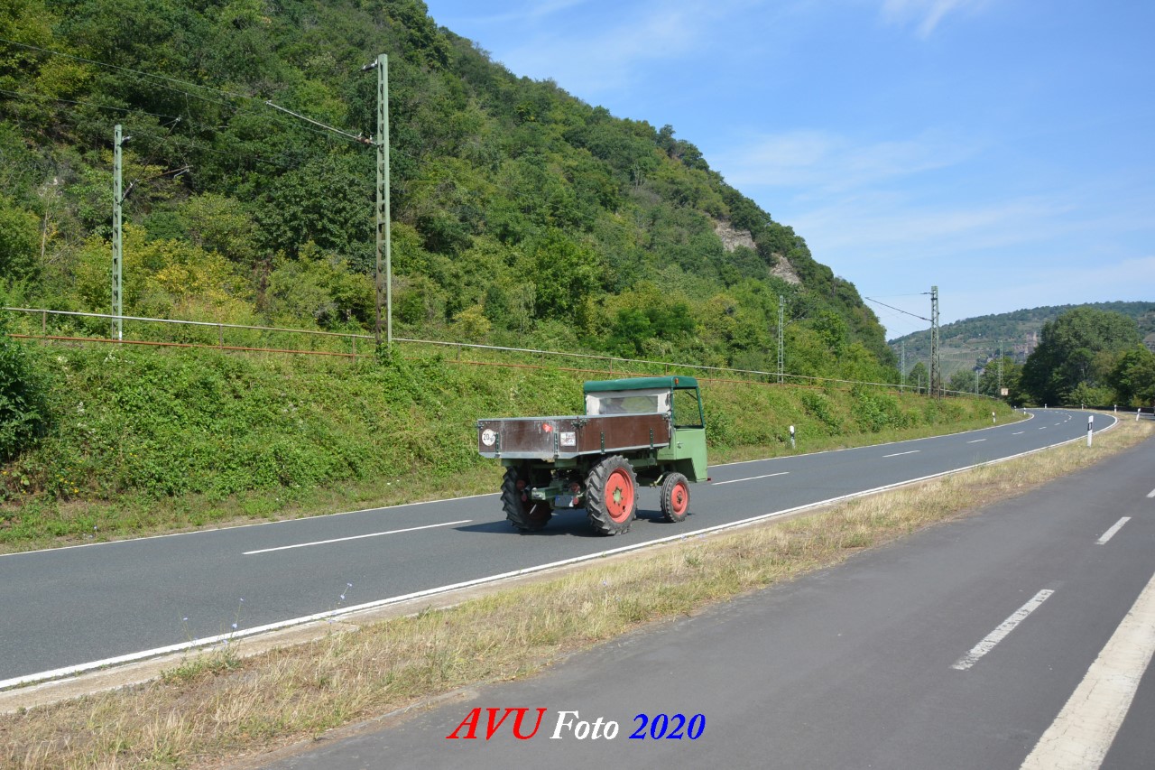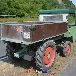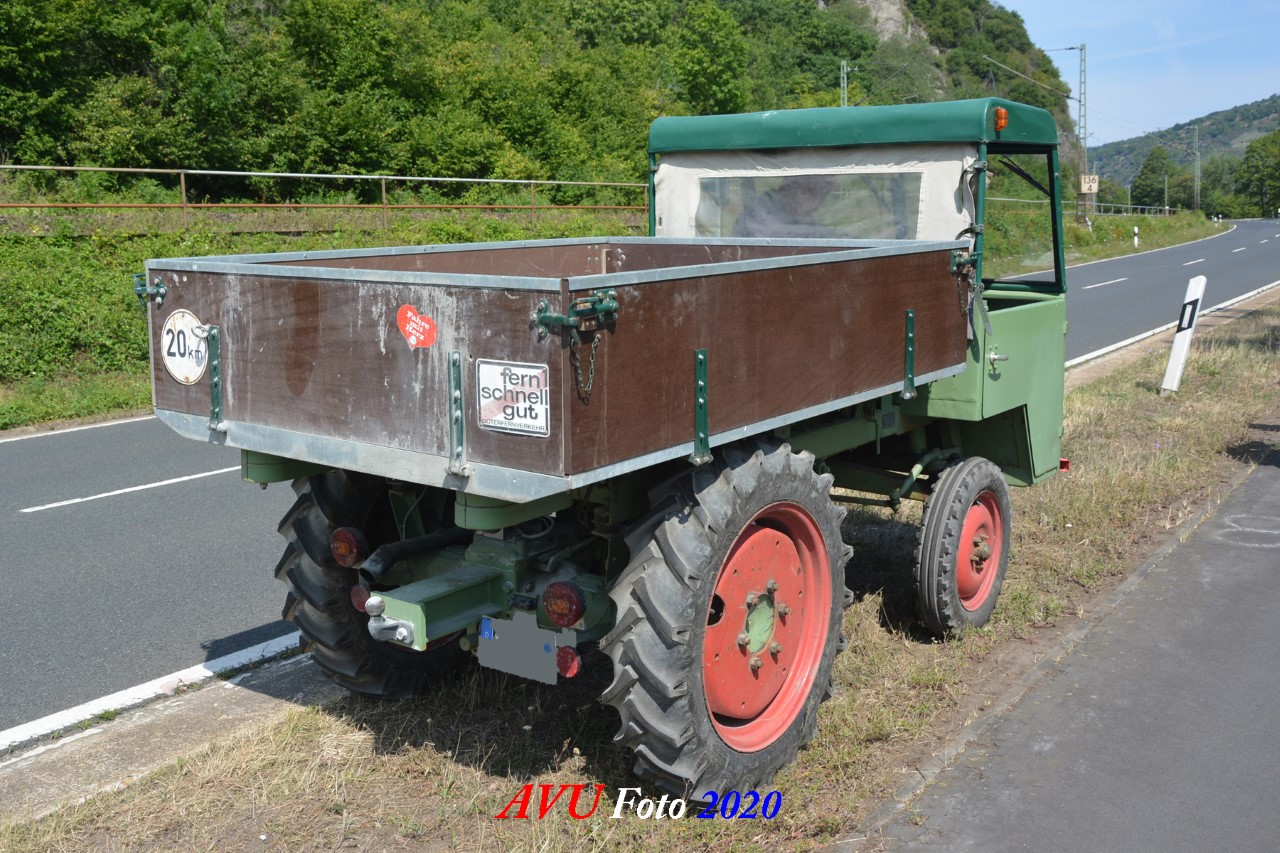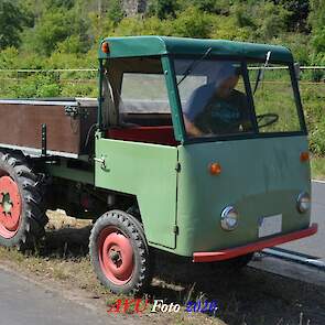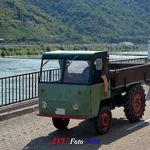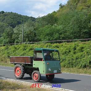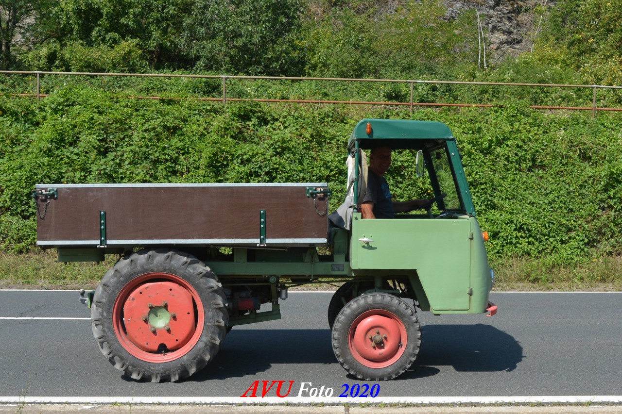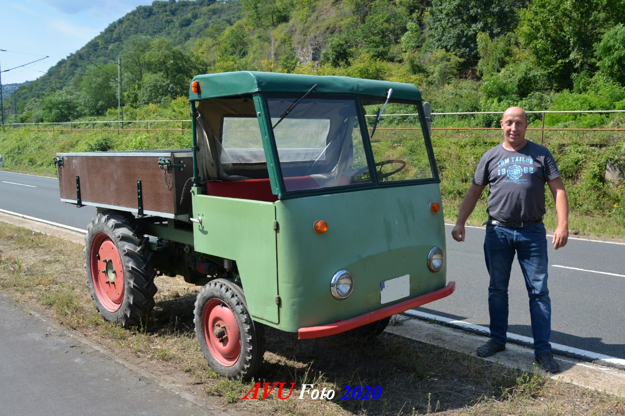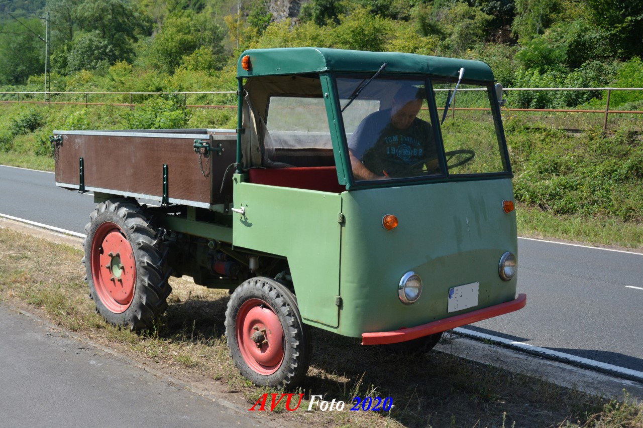 Al fietsend vanaf Frankfurt am Main hoorde ik op de achtergrond iets aankomen, dacht dat het een oude Unimog zou zijn, keek om en greep mijn camera. De eigenaar stopte ook meteen en vroeg waarom ik foto’s maakte, Trekkerweb natuurlijk. Het bijzondere van deze door Josef Huber & Heinz Wossner in 1961 gebouwde Mulag HW MD 14-4 Bergtractor was dat er indertijd slechts 20 van gebouwd zijn met een JLO DL 660, 657 cc, 14 pk 1-cylinder 2-takt dieselmotor met ZF 2x3 versnellingsbak en teruguit. In de loop der jaren ging Mulag in 1964 ook vliegtuigtrekkers bouwen en vanaf 1971 de bekende maaiers, versnipperaars, enz., passend voor o.a. Unimog-trekkers. De eigenaar was zeer tevreden over het bijna 60-jarige voertuigontwerp welke hij dagelijks nog in gebruik heeft en dan vooral in zijn wijngaarden. Hij parkeerde deze naast de Rijn en stak deze, met een afscheidsgroet, met de veerpont over. Echt iets bijzonders.