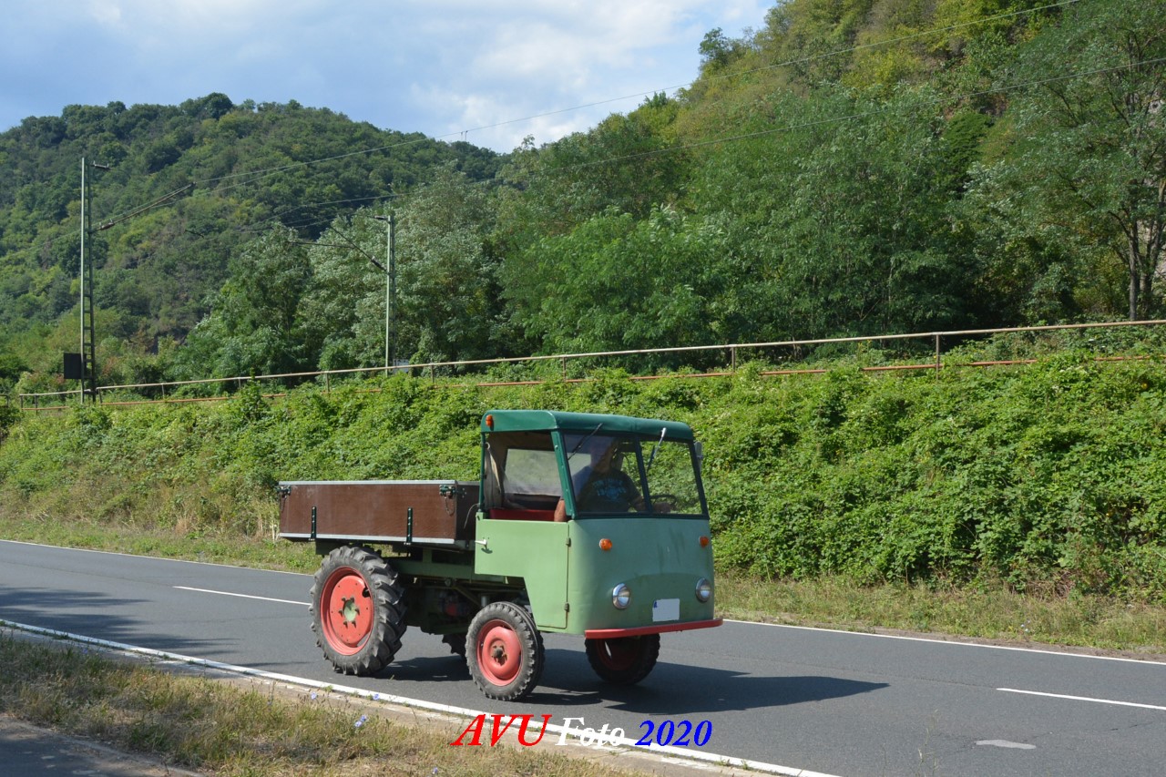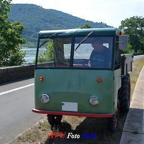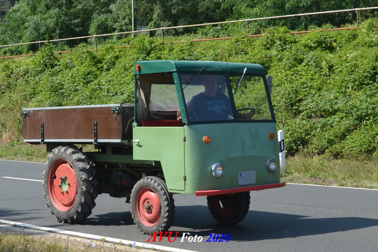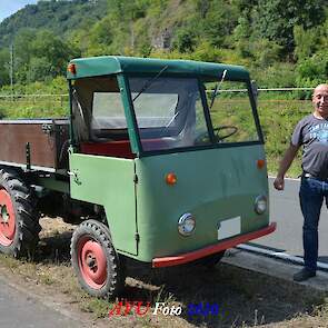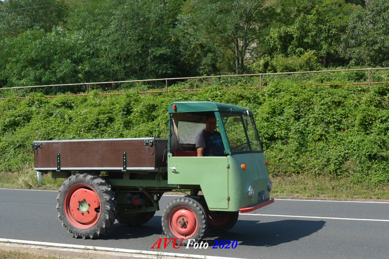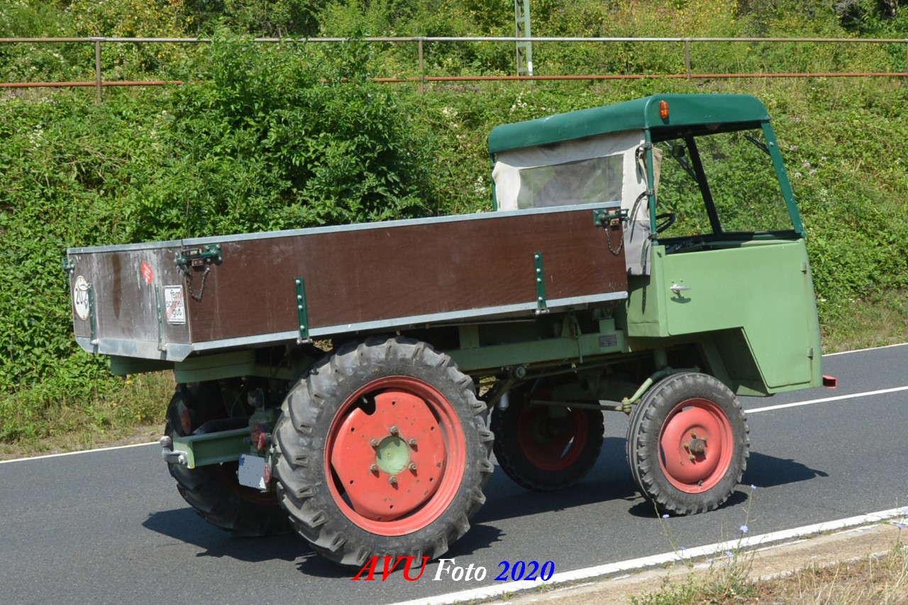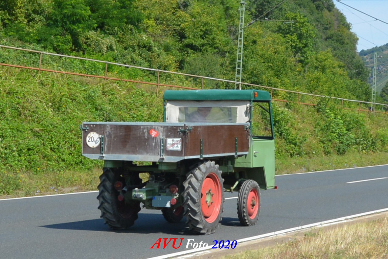 Al fietsend vanaf Frankfurt am Main hoorde ik op de achtergrond iets aankomen, dacht dat het een oude Unimog zou zijn, keek om en greep mijn camera. De eigenaar stopte ook meteen en vroeg waarom ik foto’s maakte, Trekkerweb natuurlijk. Het bijzondere van deze door Josef Huber & Heinz Wossner in 1961 gebouwde Mulag HW MD 14-4 Bergtractor was dat er indertijd slechts 20 van gebouwd zijn met een JLO DL 660, 657 cc, 14 pk 1-cylinder 2-takt dieselmotor met ZF 2x3 versnellingsbak en teruguit. In de loop der jaren ging Mulag in 1964 ook vliegtuigtrekkers bouwen en vanaf 1971 de bekende maaiers, versnipperaars, enz., passend voor o.a. Unimog-trekkers. De eigenaar was zeer tevreden over het bijna 60-jarige voertuigontwerp welke hij dagelijks nog in gebruik heeft en dan vooral in zijn wijngaarden. Hij parkeerde deze naast de Rijn en stak deze, met een afscheidsgroet, met de veerpont over. Echt iets bijzonders.