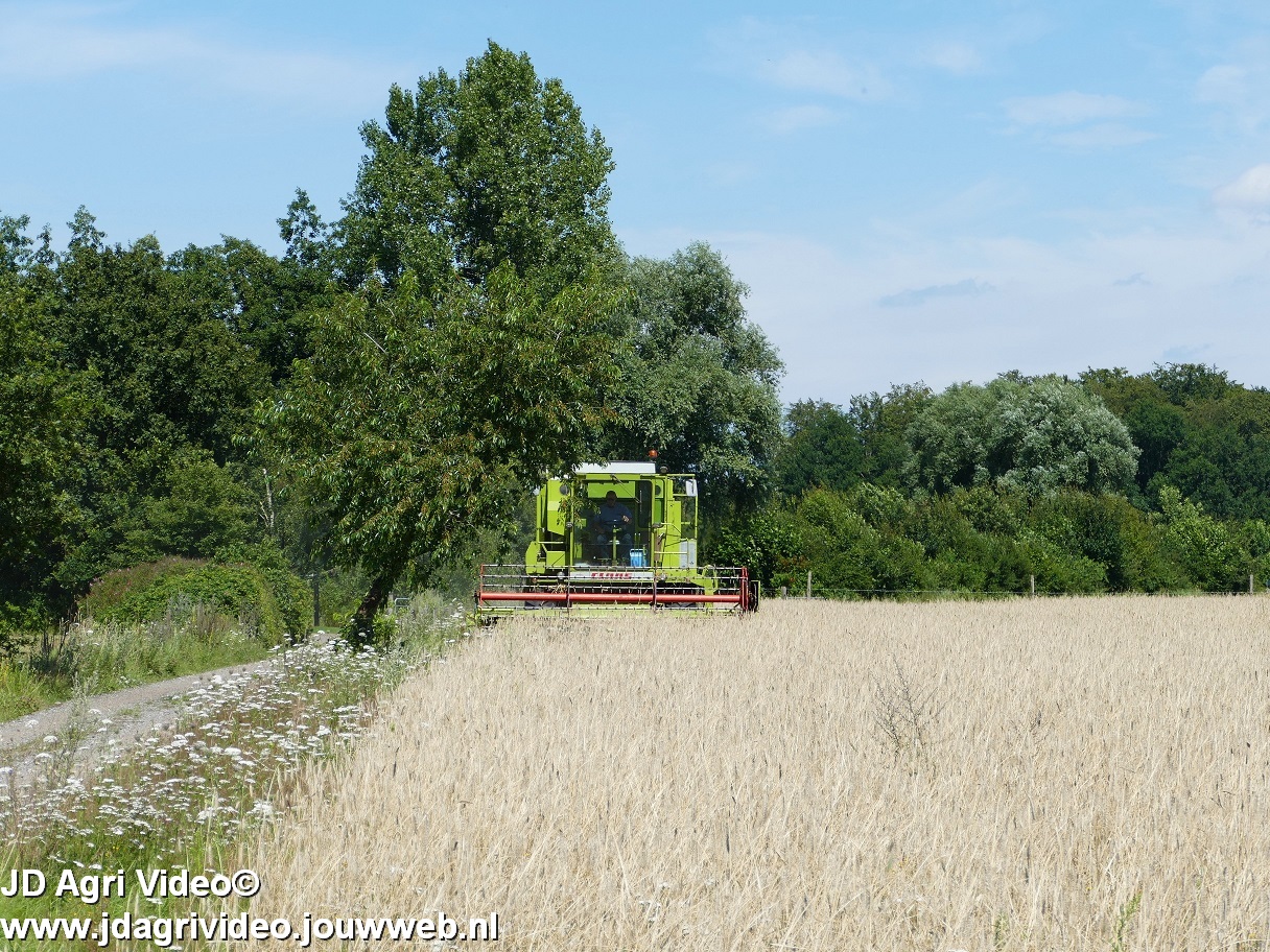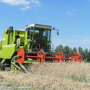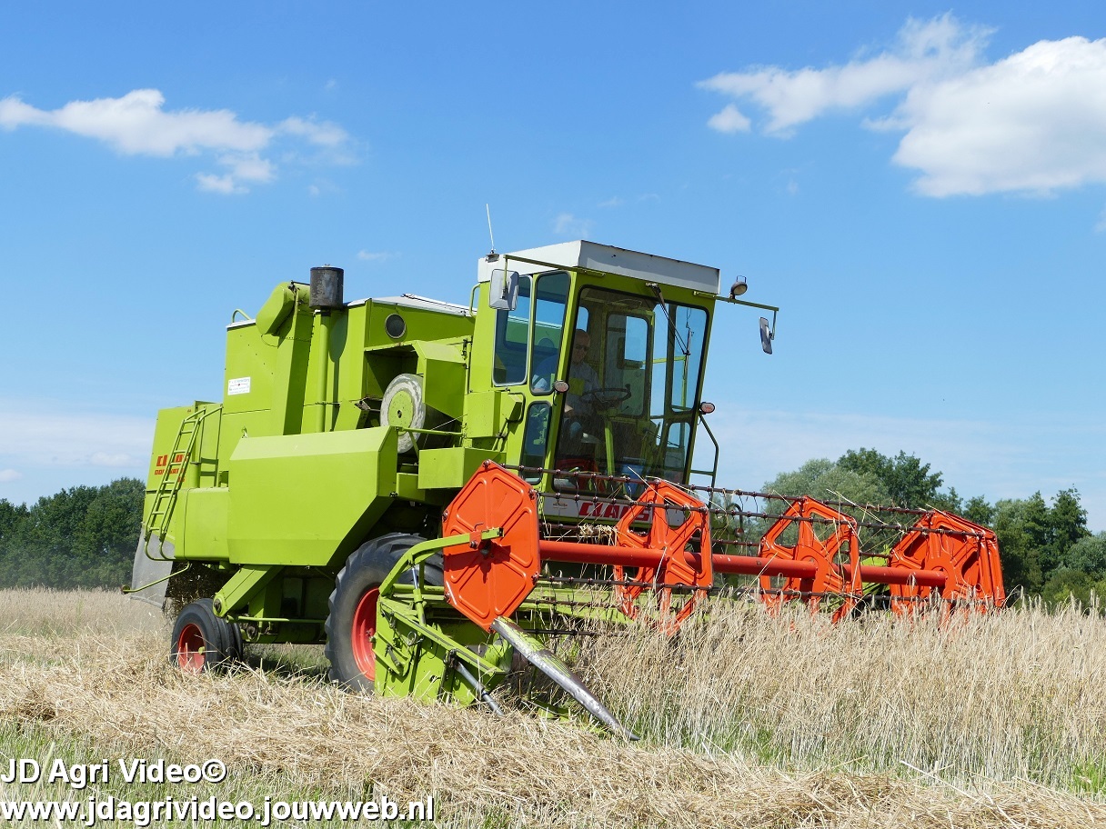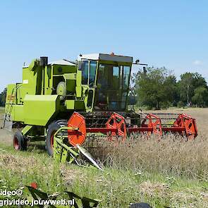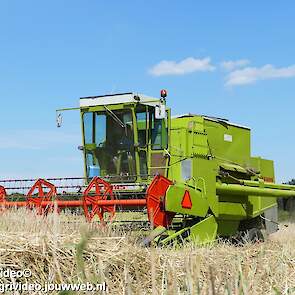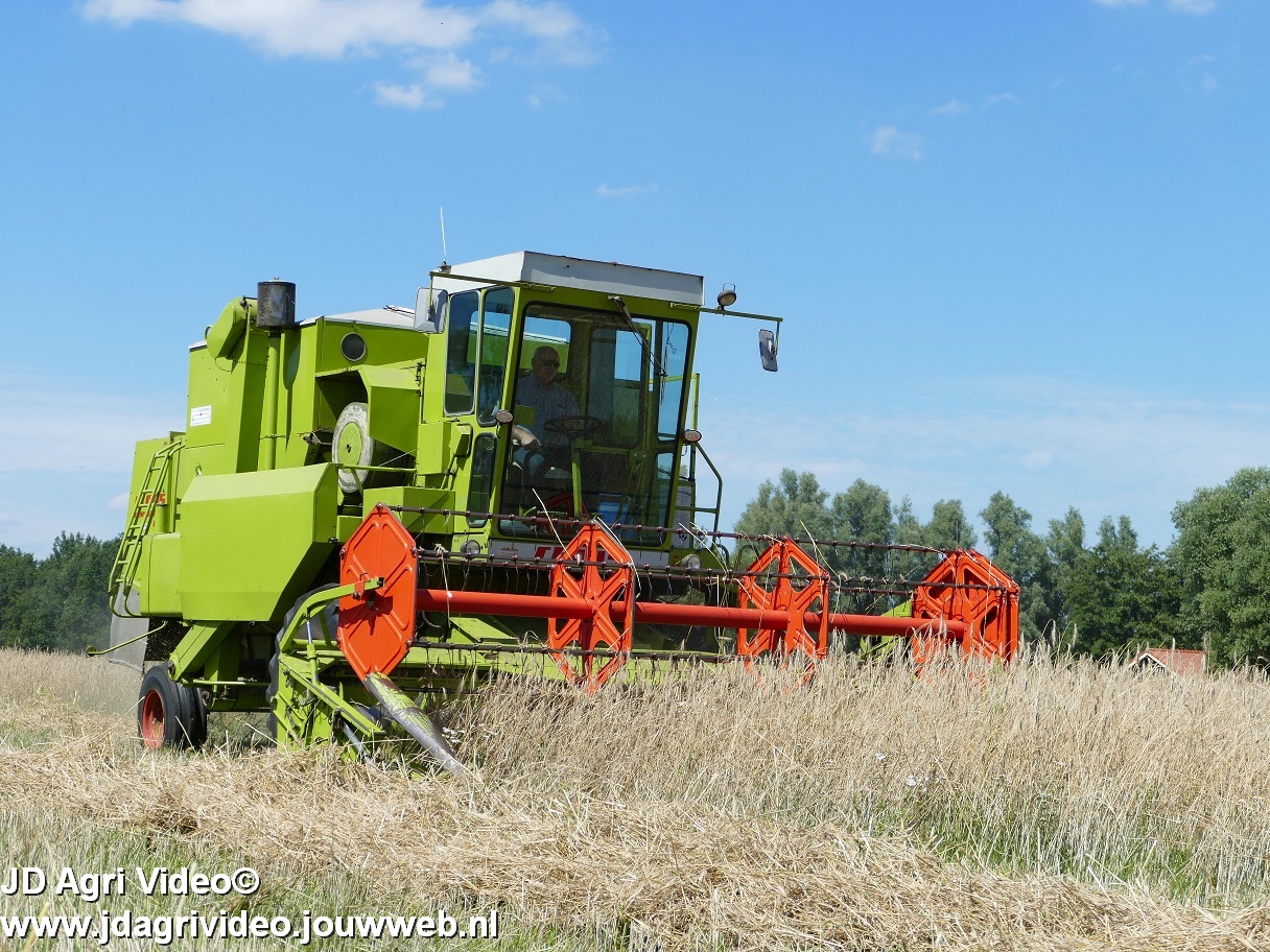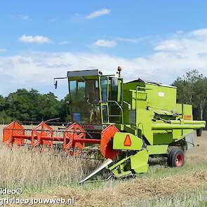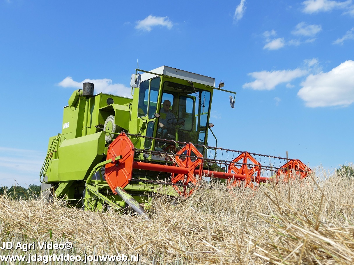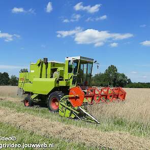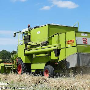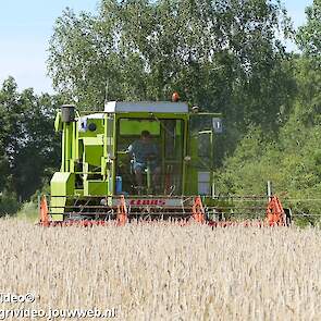Loonbedrijf P. van den Hardenberg uit Elspeet aan het graan triticale dorsen met een Claas Dominator 85.