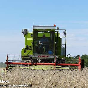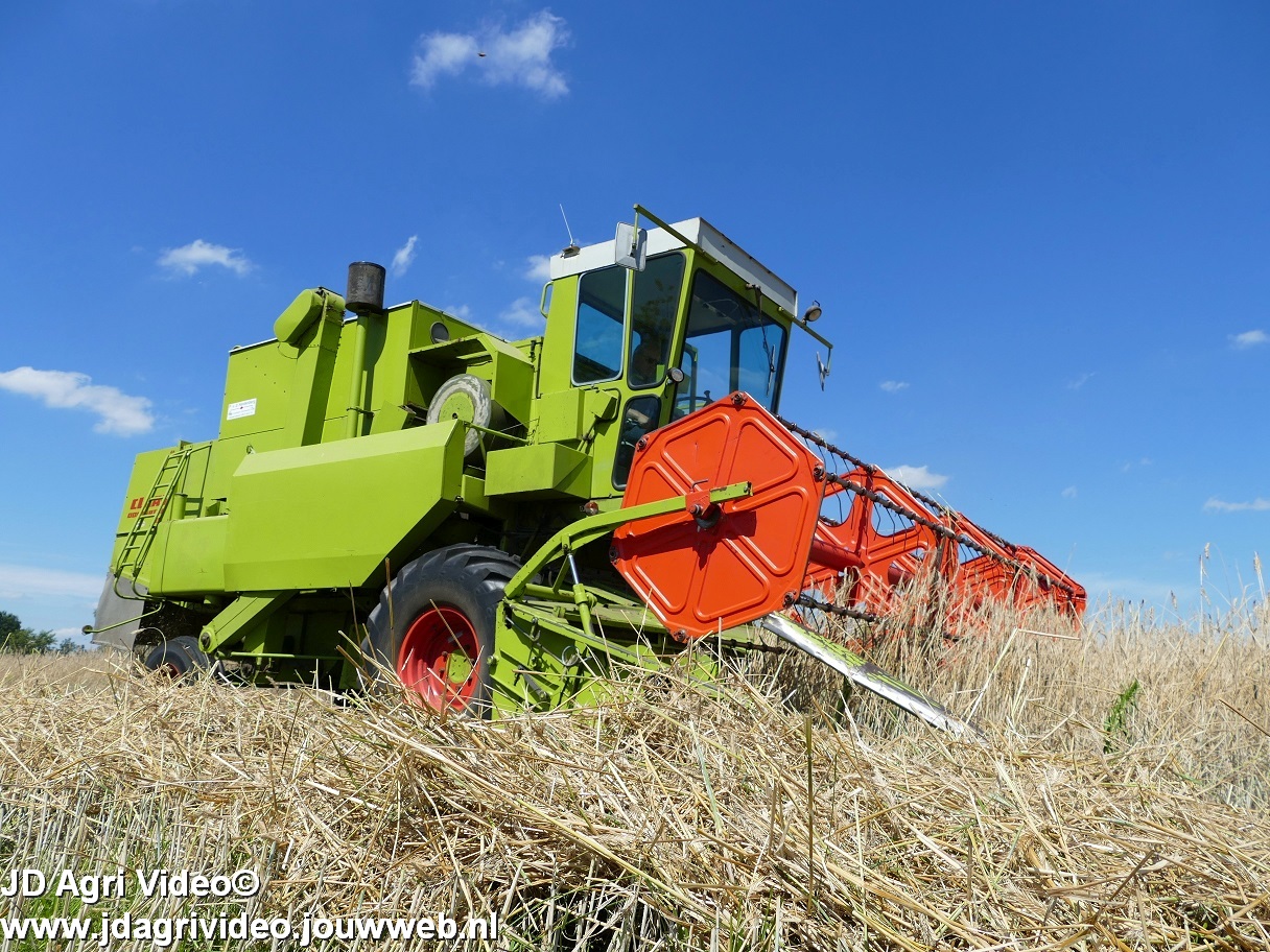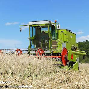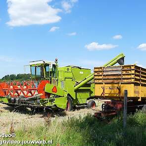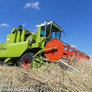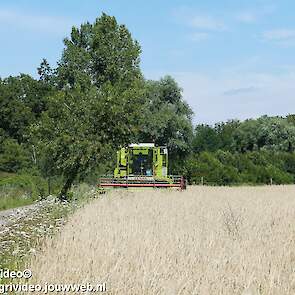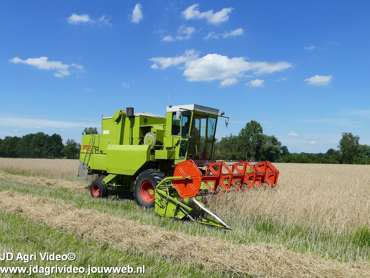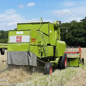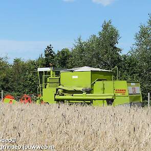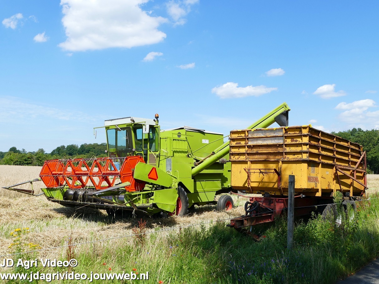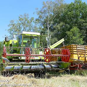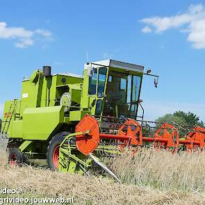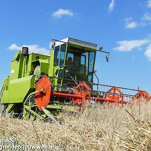 Loonbedrijf P. van den Hardenberg uit Elspeet aan het graan triticale dorsen met een Claas Dominator 85.