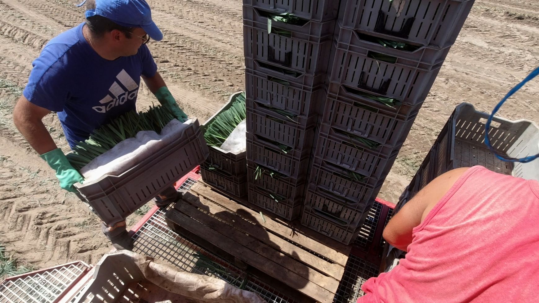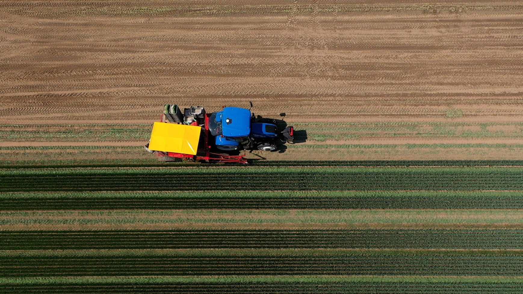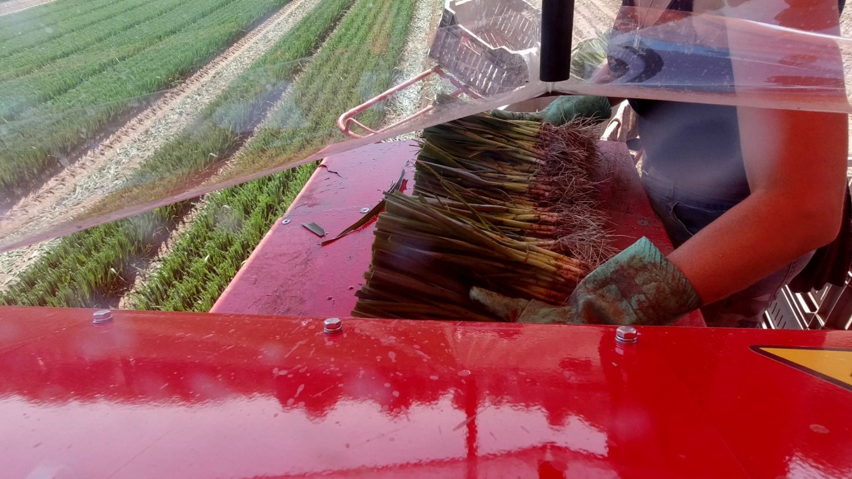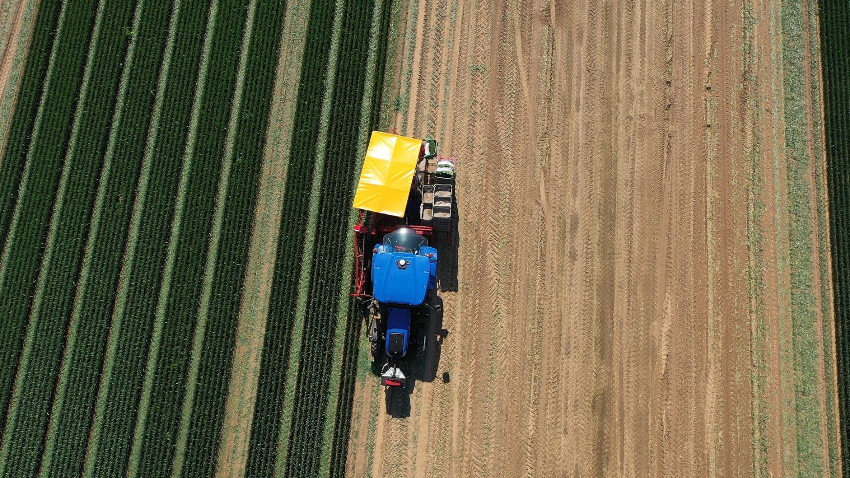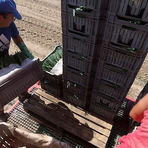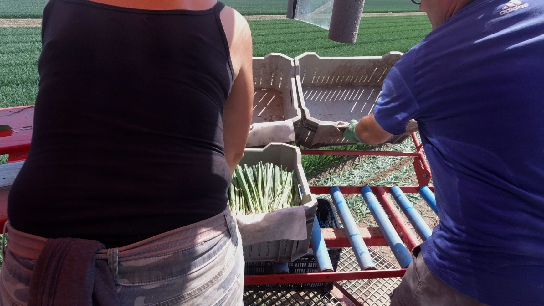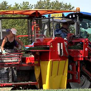 .Loonbedrijf Maas BV Kessel aan het preiplantgoed oogsten bij Lenders prei-en aspergeplanten met de New Holland T5.120 AC