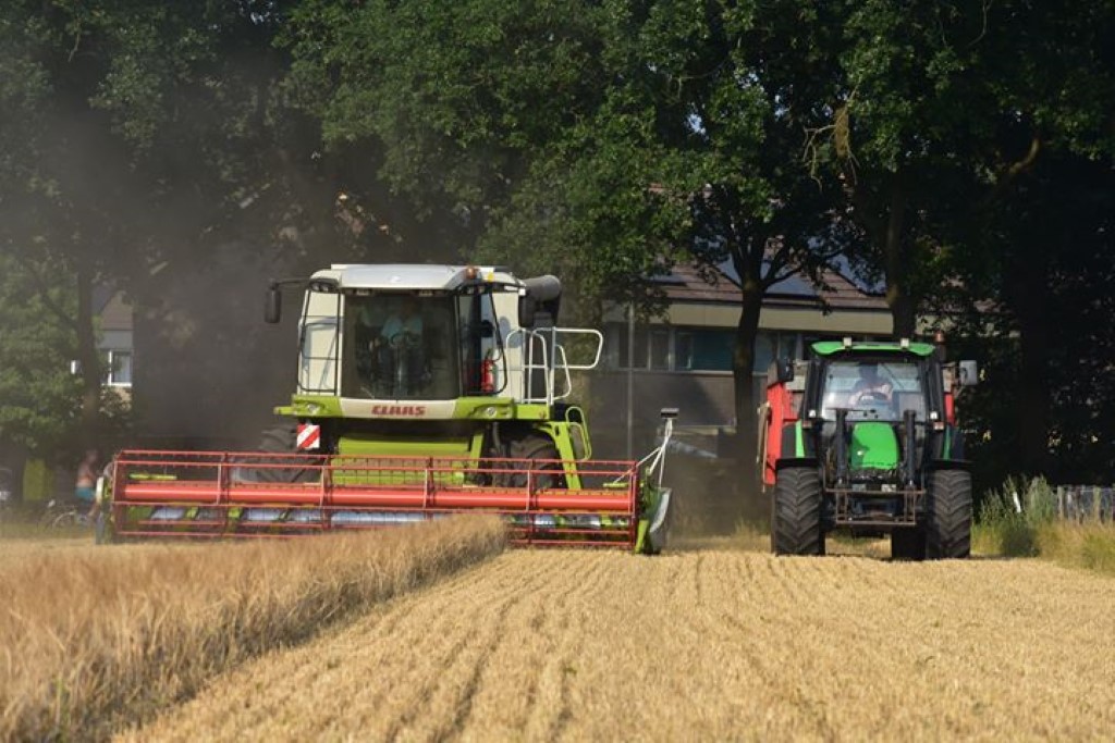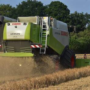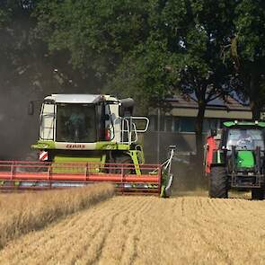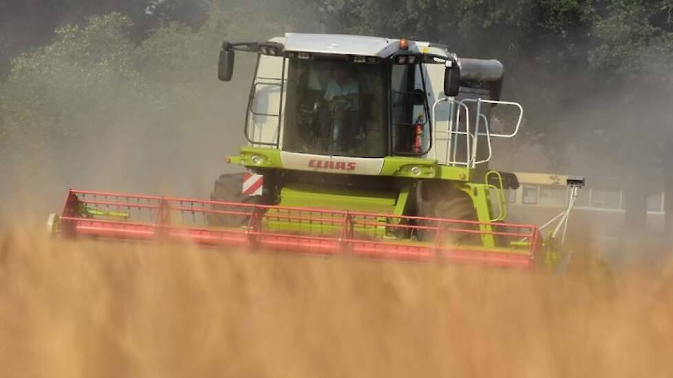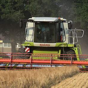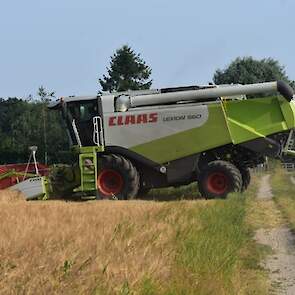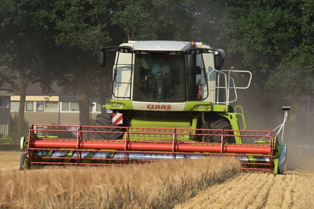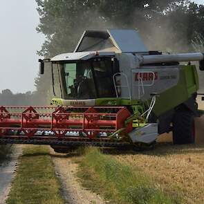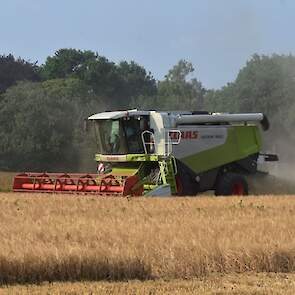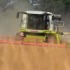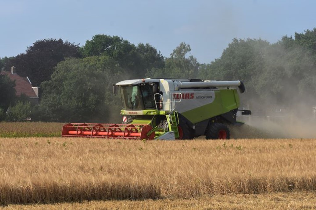Fokko de Jager uit Zuidlaren druk in de gerst met de Claas Lexion.
