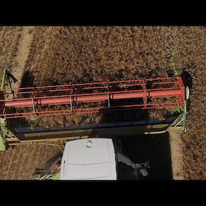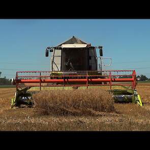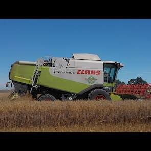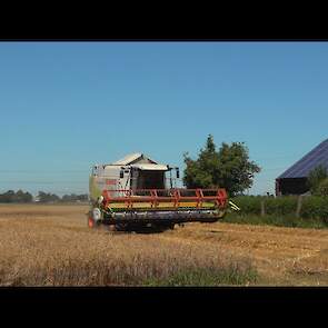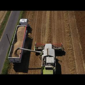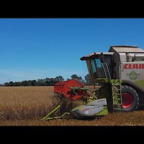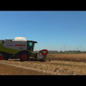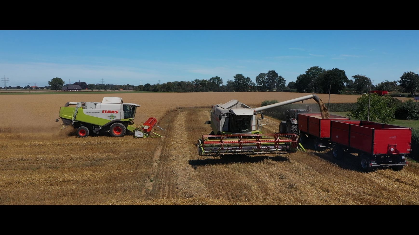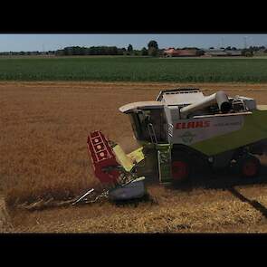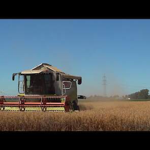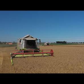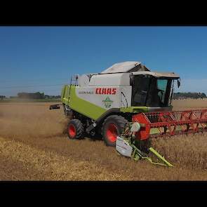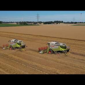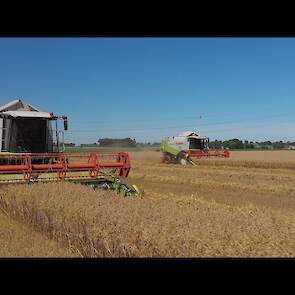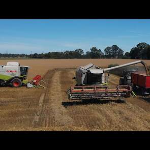 Twee Claas Lexion`s 540C van loonbedrijf Hunzelar aan het haver combinen