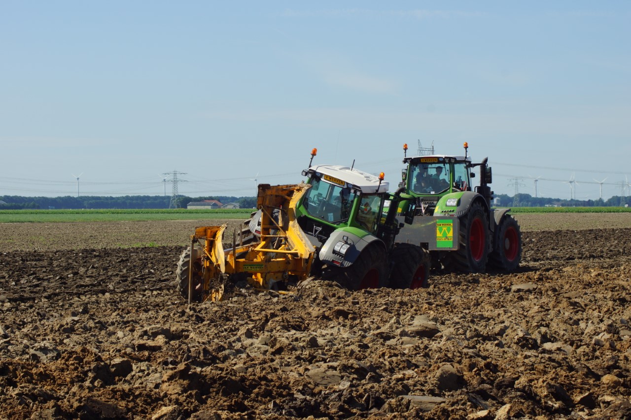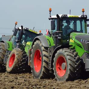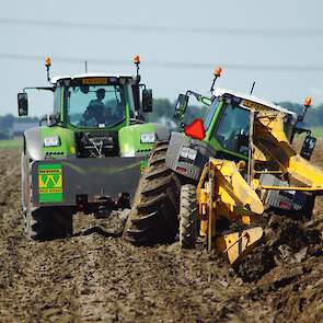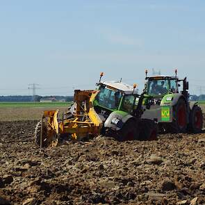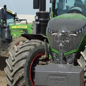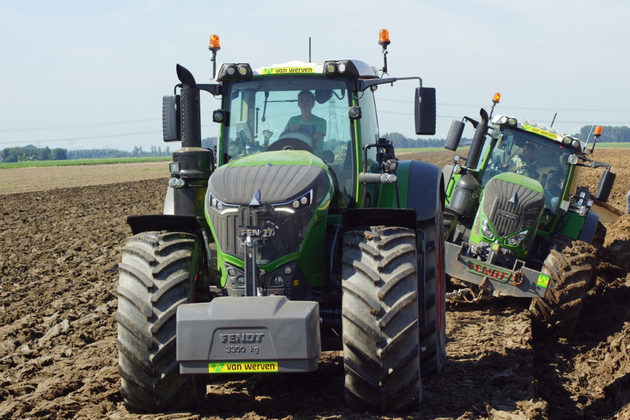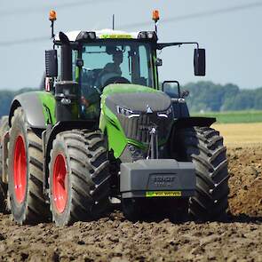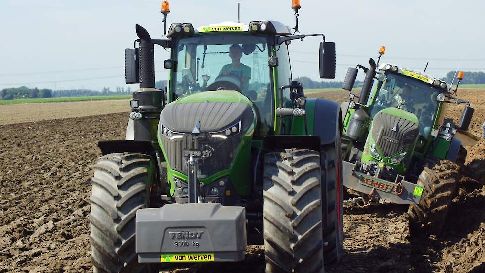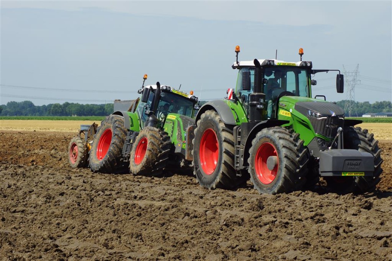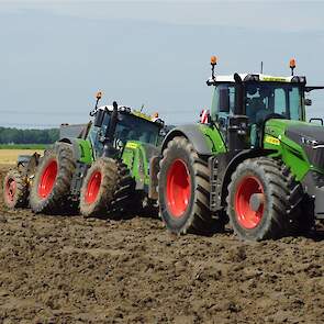 Een Fendt 1050 en een 939, samen goed voor meer dan 900 pk, trekken de ploeg op 1 meter 45 door de grond.
