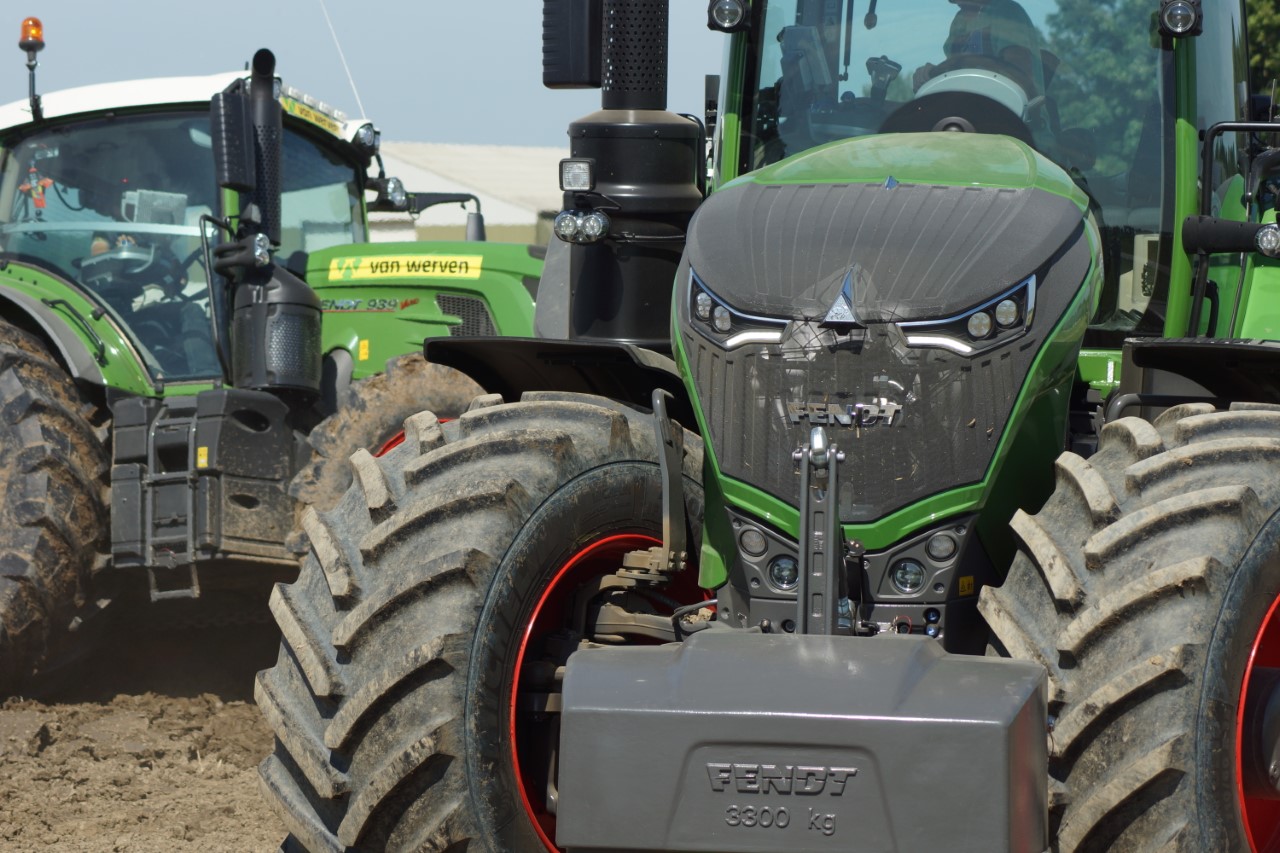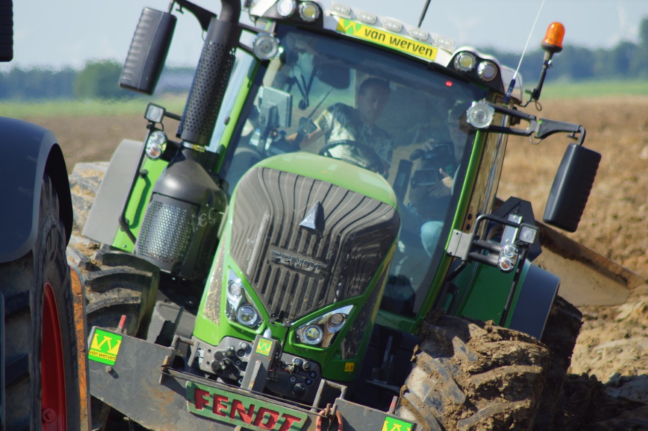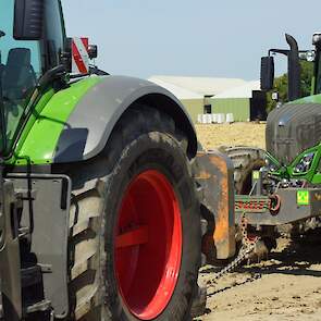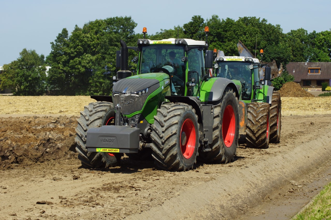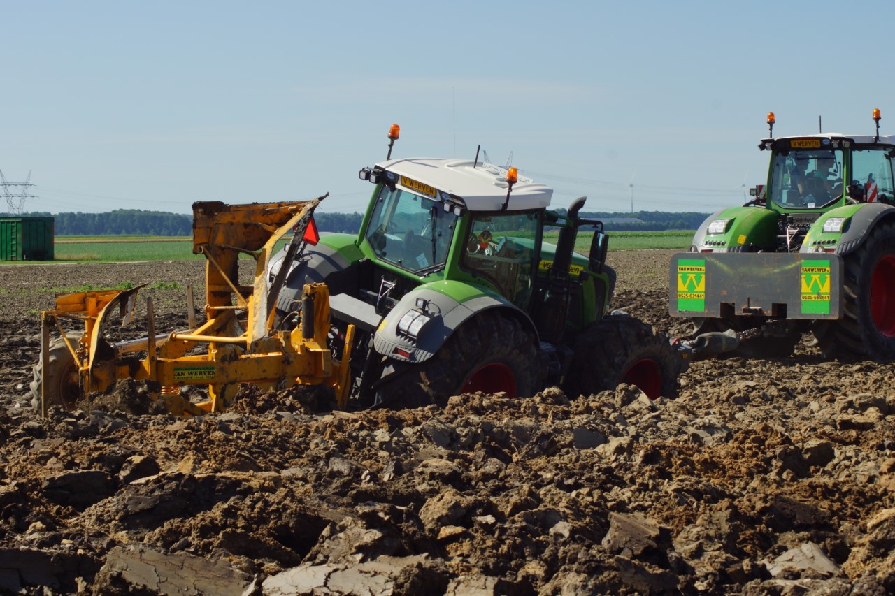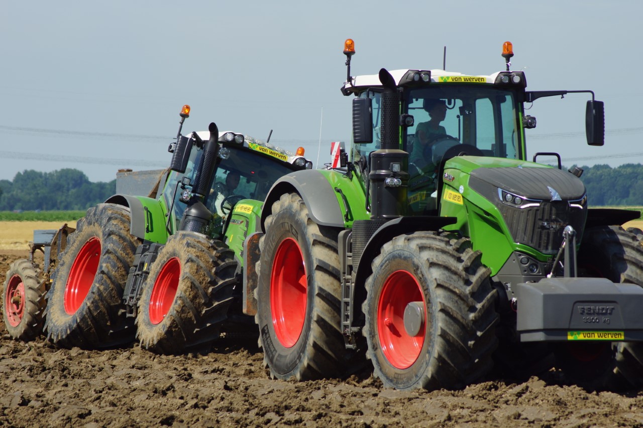 Een Fendt 1050 en een 939, samen goed voor meer dan 900 pk, trekken de ploeg op 1 meter 45 door de grond.