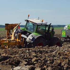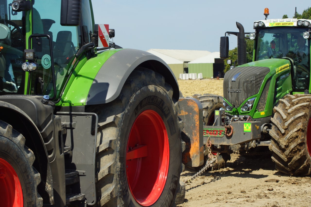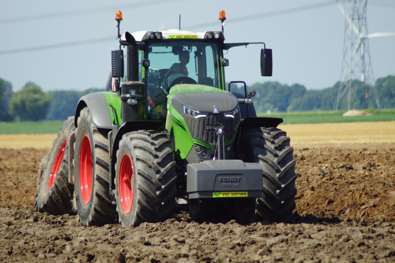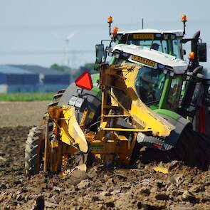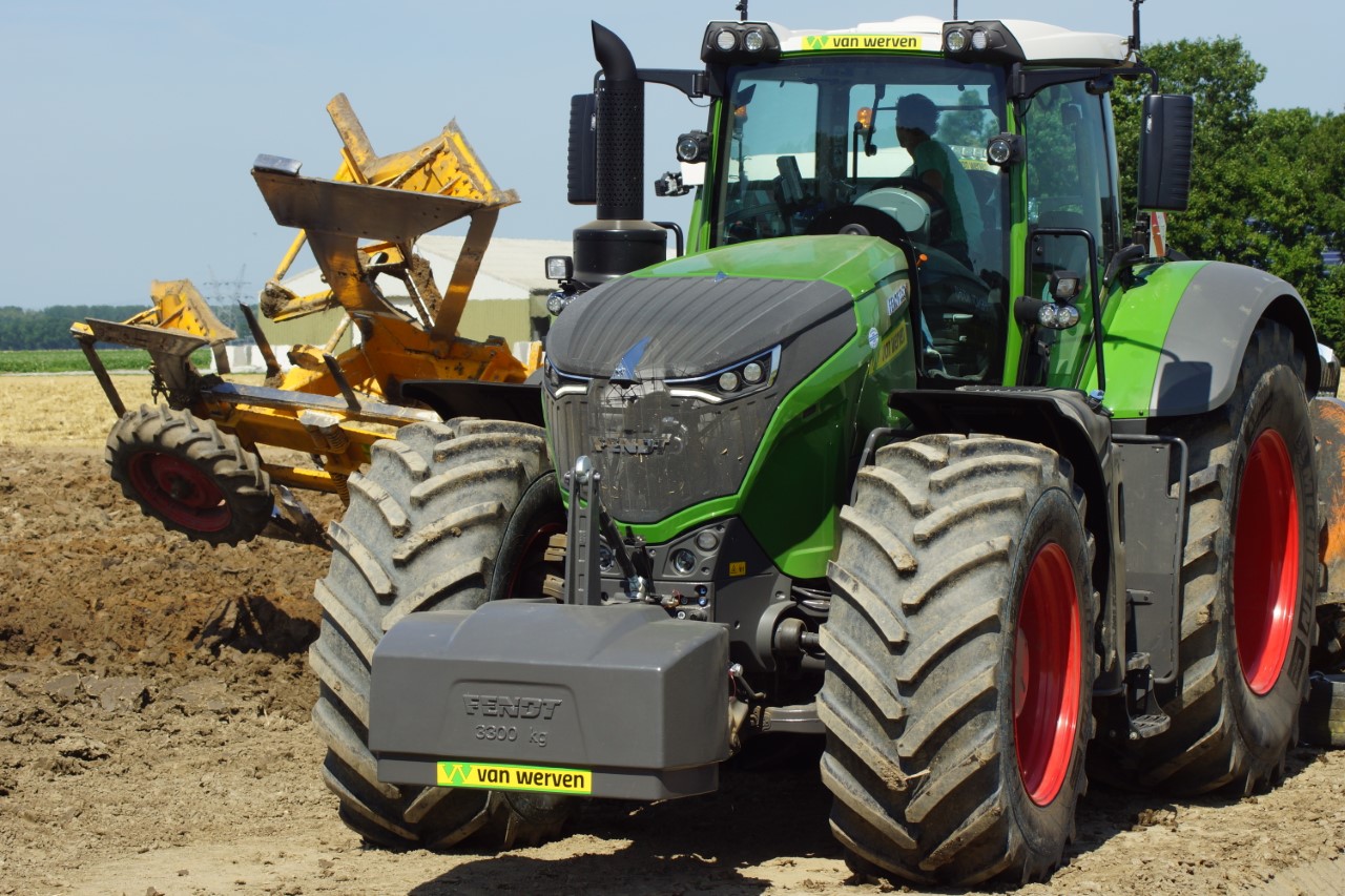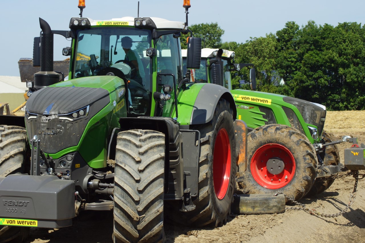 Een Fendt 1050 en een 939, samen goed voor meer dan 900 pk, trekken de ploeg op 1 meter 45 door de grond.