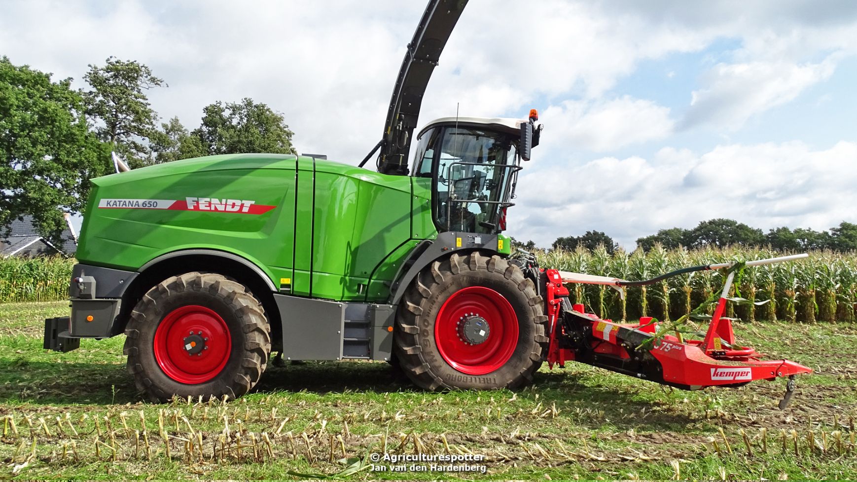 De éérste Fendt Katana 650 en Kemper 375 Plus (10-rijer) in Nederland aan het mais hakselen namens de Mechan Groep uit Achterveld én getest door BMWW Agriservice BV uit Nijkerkerveen. Het transport werd gedaan met diverse Fendt's met Kaweco Radium 50.