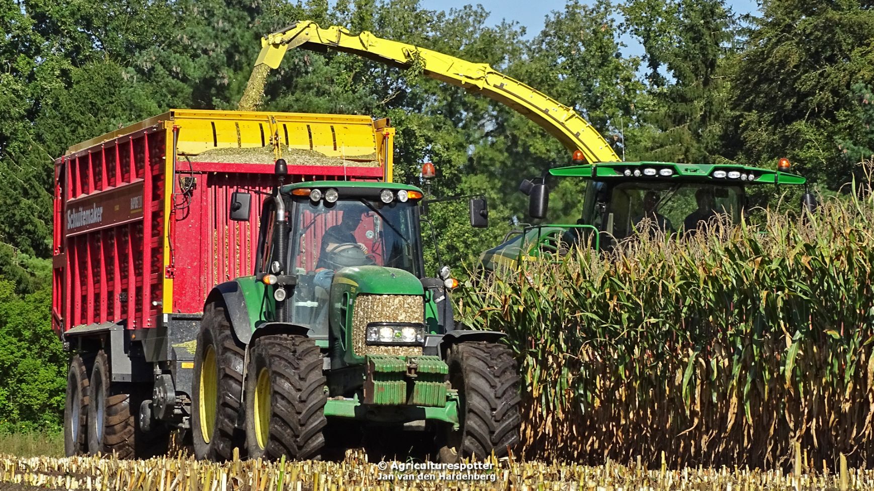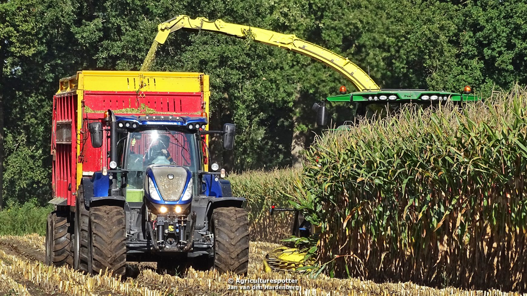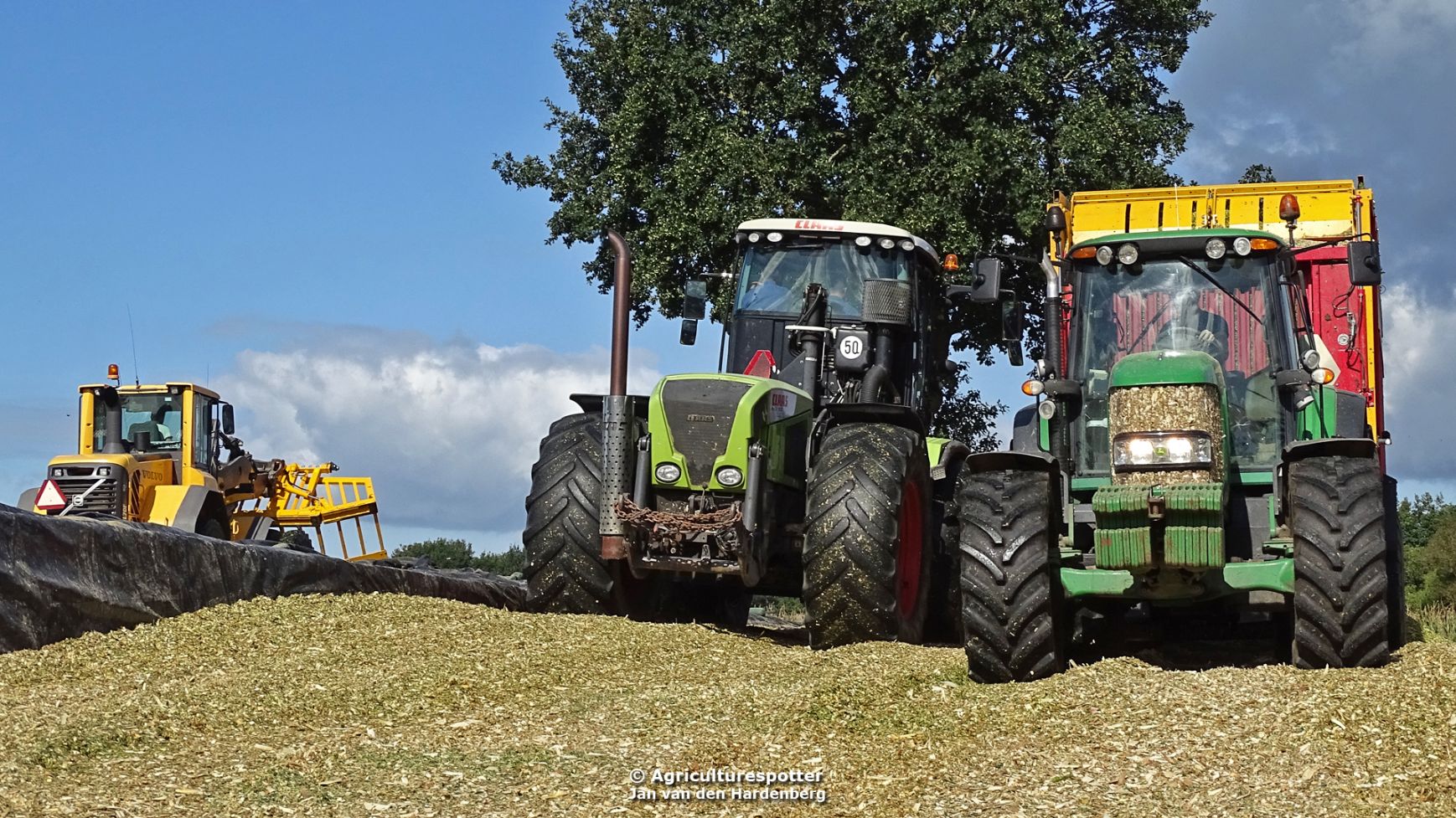 Loonbedrijf J. de Heus uit Langbroek is ook weer begonnen met mais hakselen met een John Deere 8500i. Het transport werd gedaan met een New Holland T7.230 Blue Power, John Deere 7530 Premium en een John Deere 6210R met Schuitemaker Rapide-silagewagens. De kuil werd aangereden met een Claas Xerion 3800 Trac VC en een Volvo L70F.