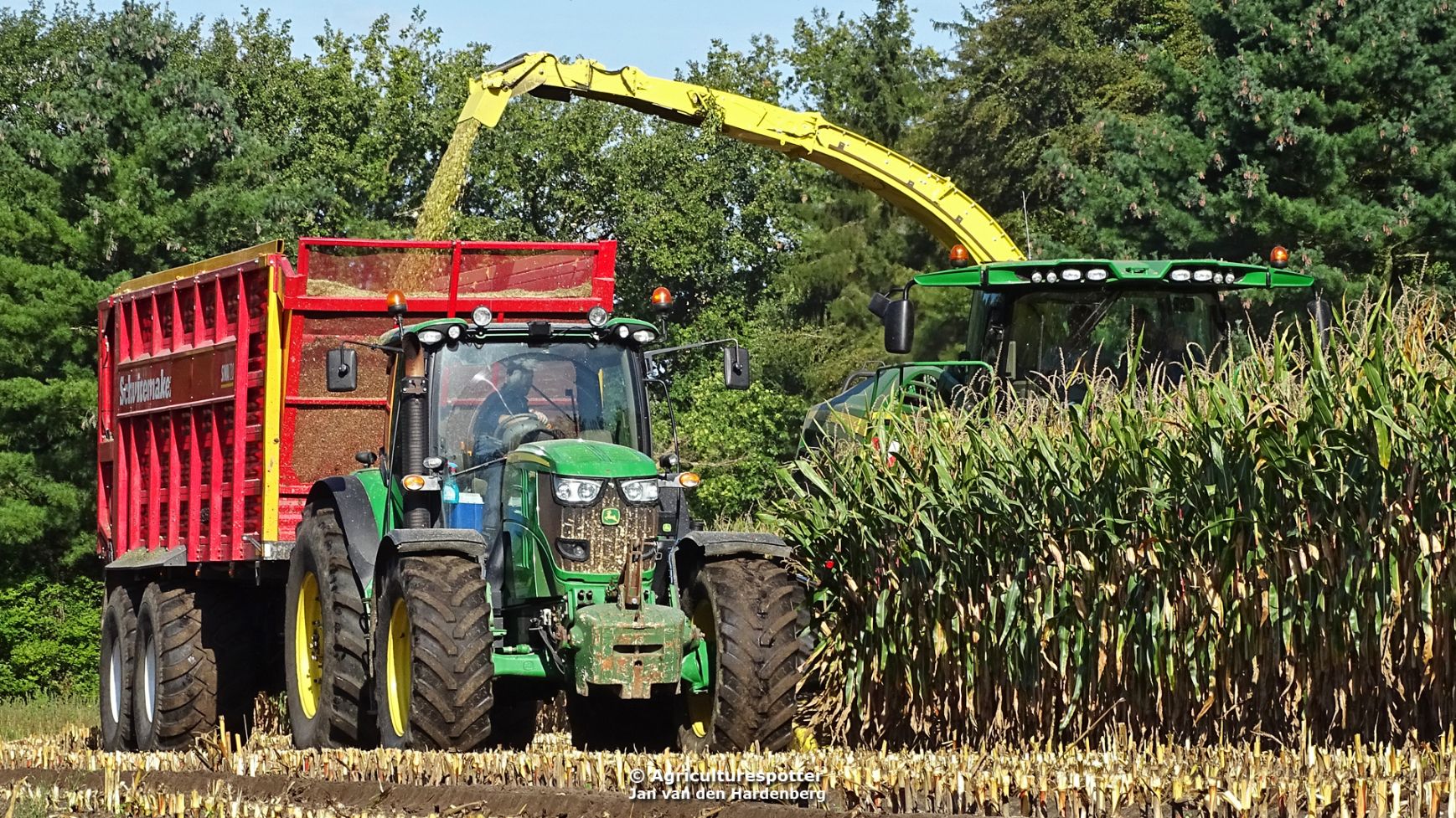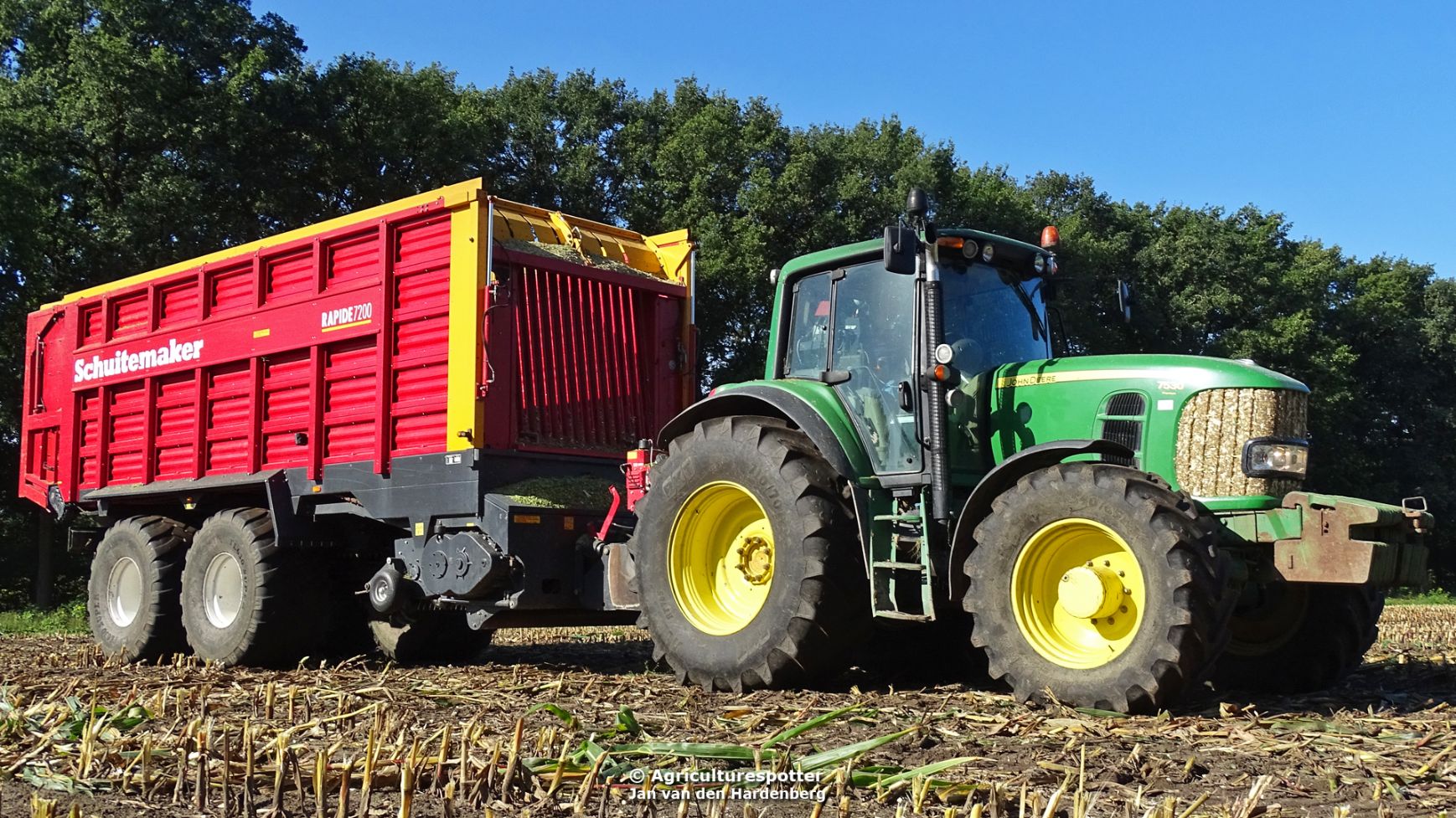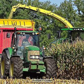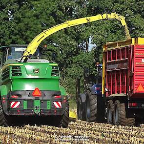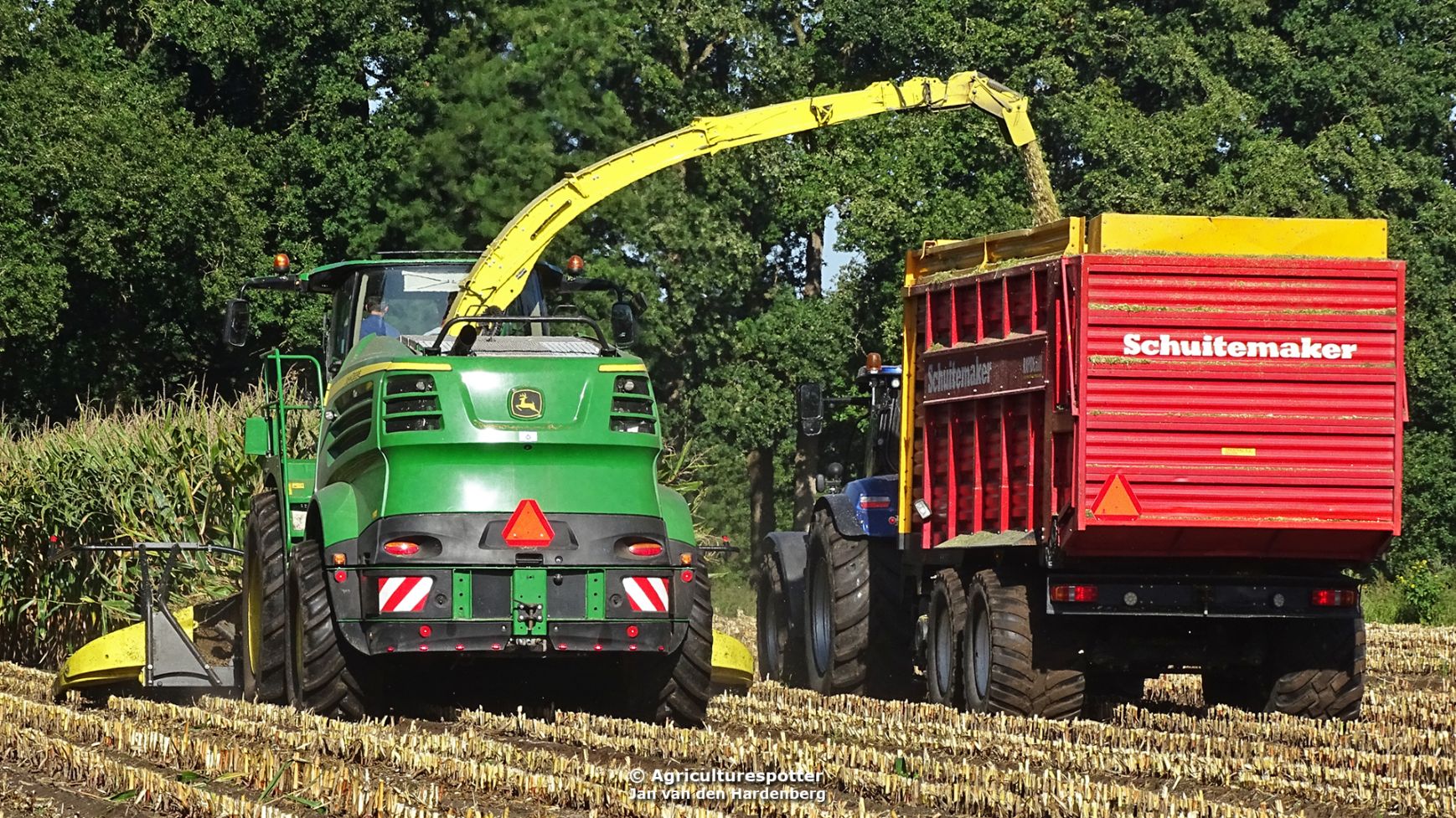 Loonbedrijf J. de Heus uit Langbroek is ook weer begonnen met mais hakselen met een John Deere 8500i. Het transport werd gedaan met een New Holland T7.230 Blue Power, John Deere 7530 Premium en een John Deere 6210R met Schuitemaker Rapide-silagewagens. De kuil werd aangereden met een Claas Xerion 3800 Trac VC en een Volvo L70F.