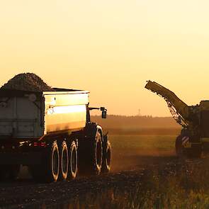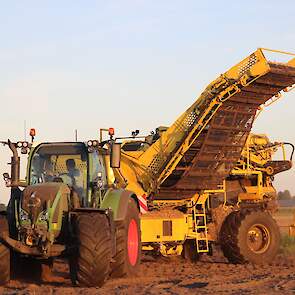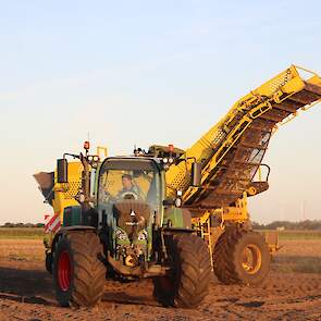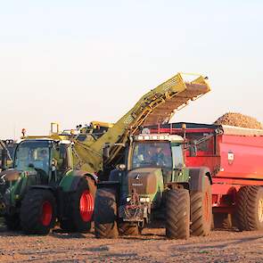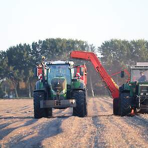 Landbouwbedrijf Buijs uit Emmercompascuum met twee laadcombinaties in de uienoogst.