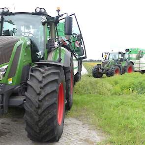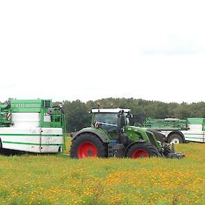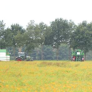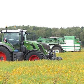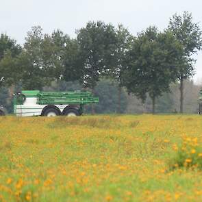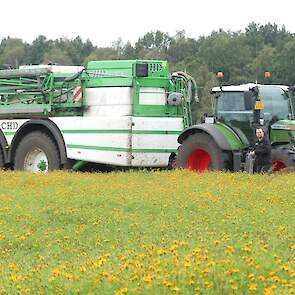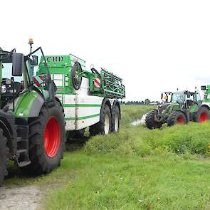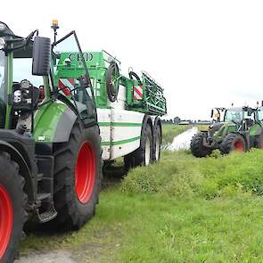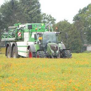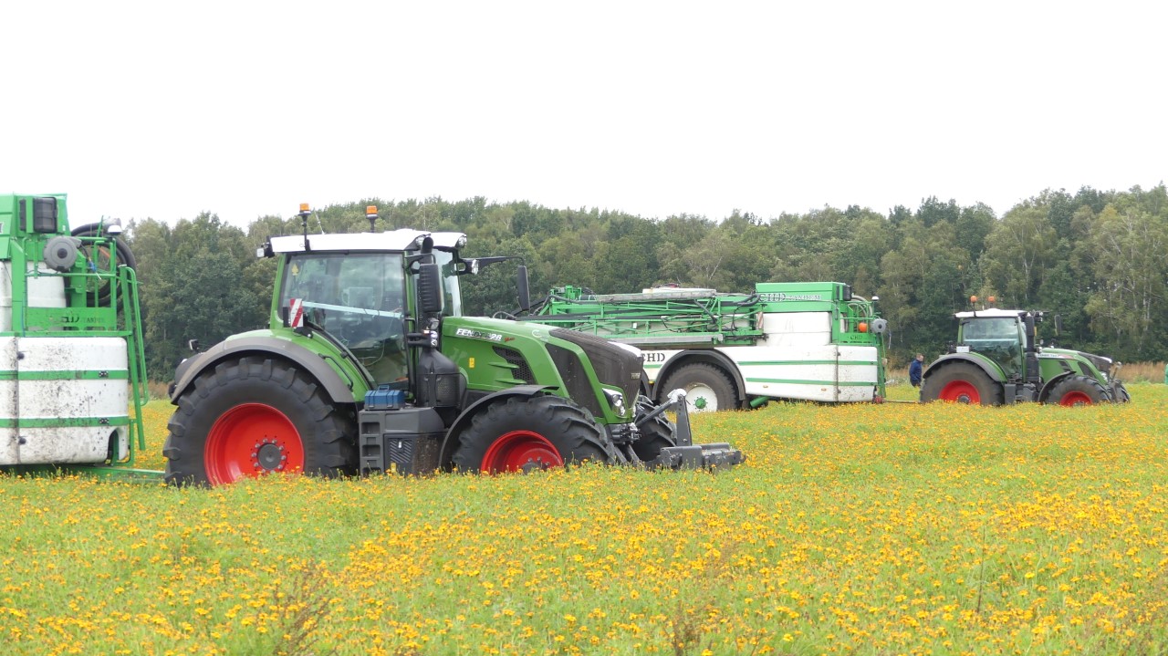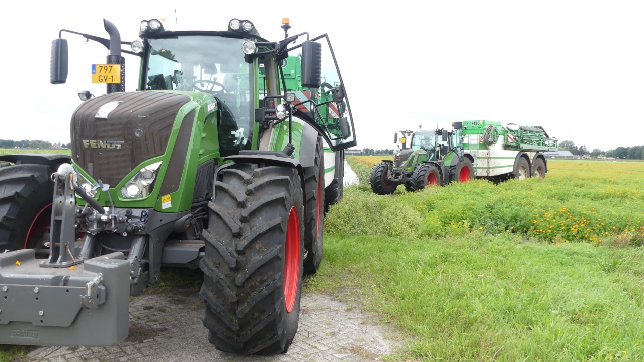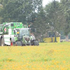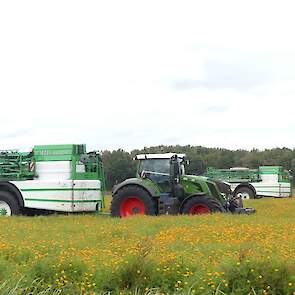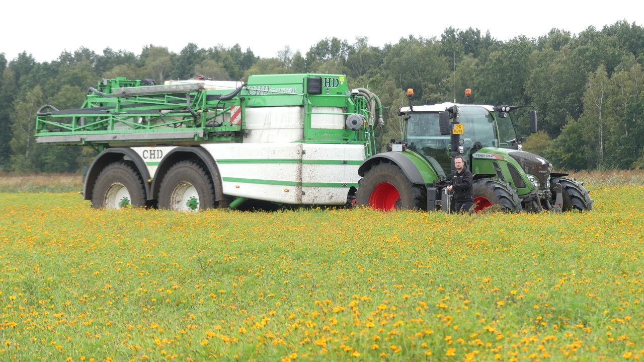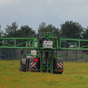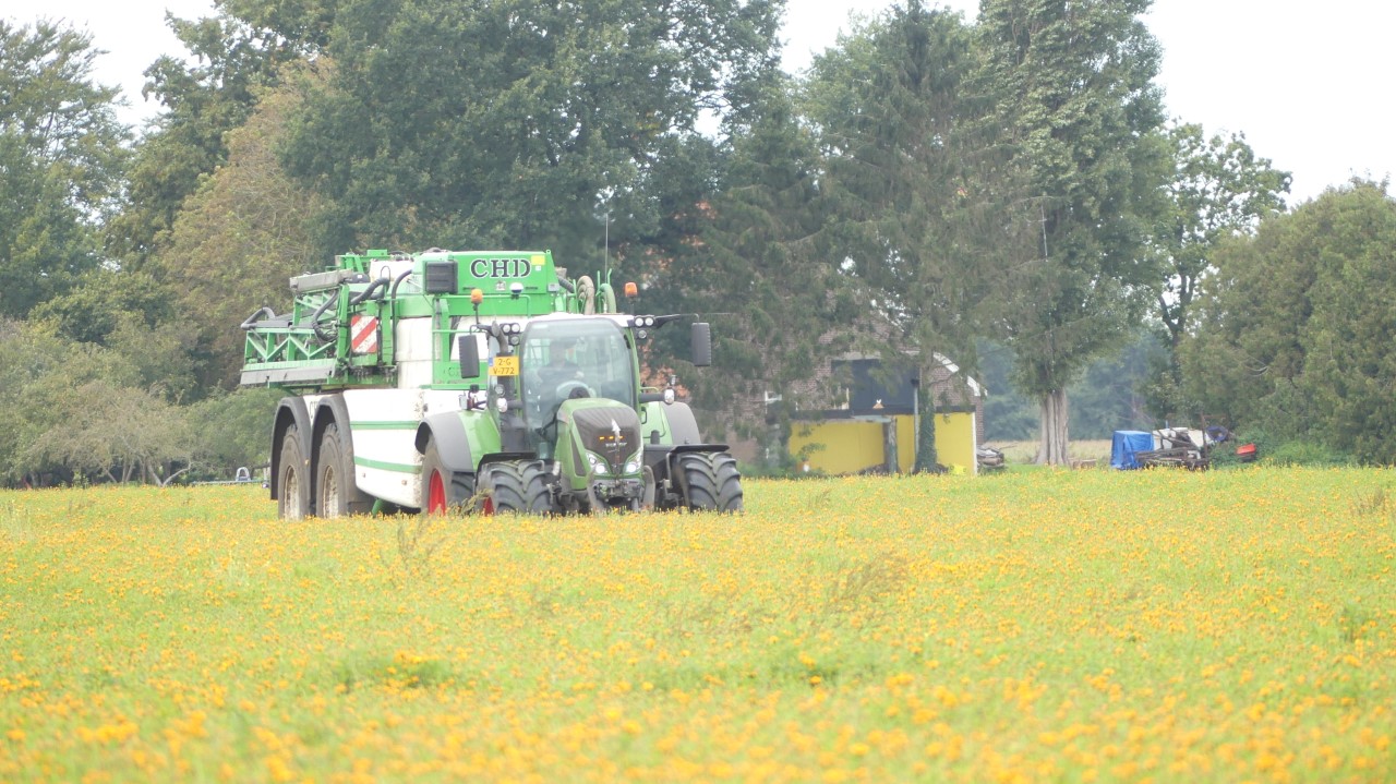 Vanmiddag werd een demo van twee CHD-tandemasser veldspuiten van CHD Eefting BV gegeven, waarbij er een voorzien was van het Maggrow-systeem. De telers konden zien met behulp van watergevoelig papier wat het effect van de Maggrown was ten opzichte van de conventionele spuit.