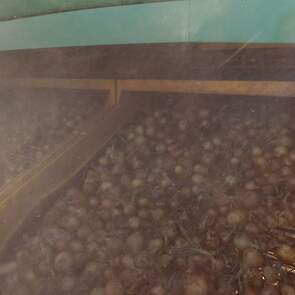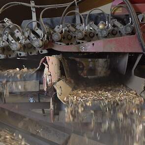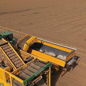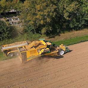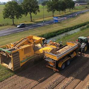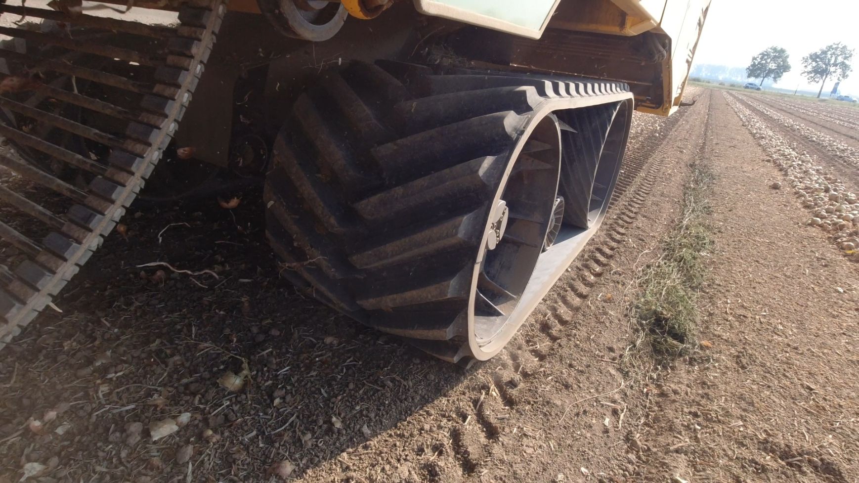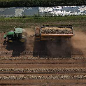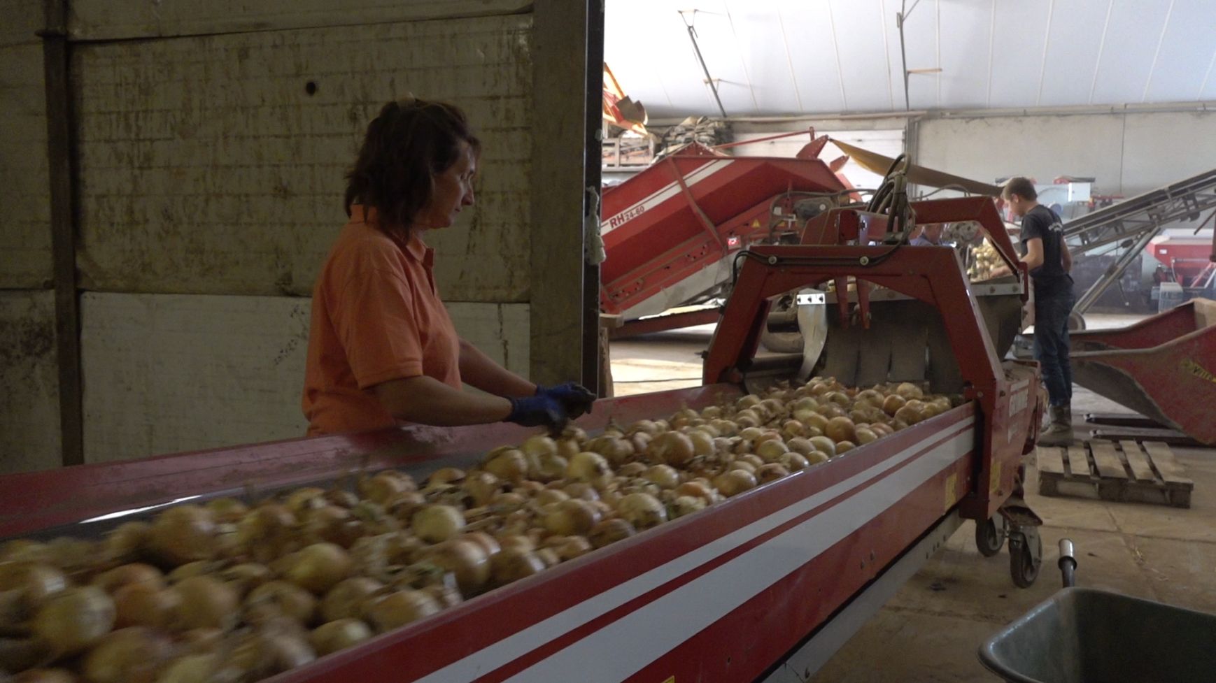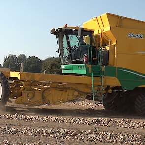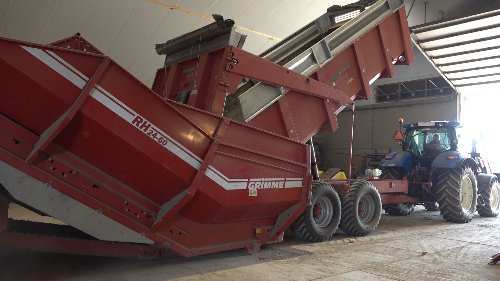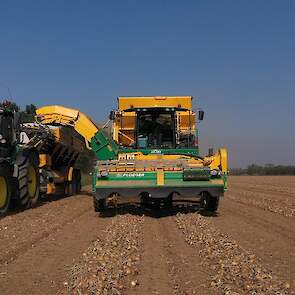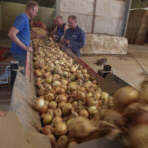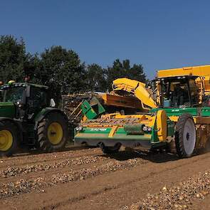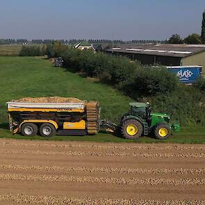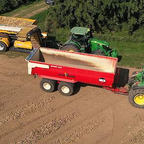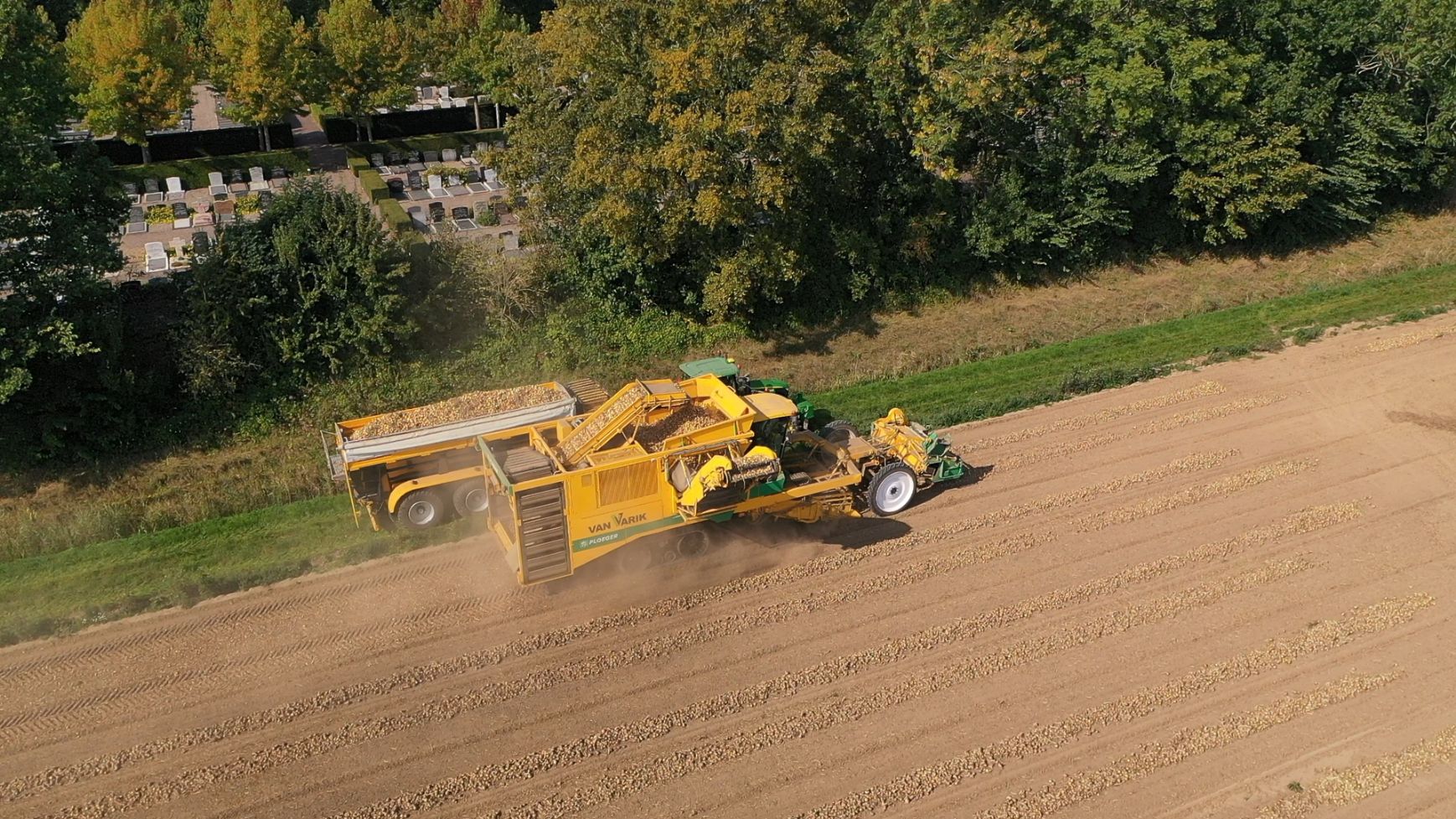 Loon- en akkerbouwbedrijf van Varik met de Ploeger AR-4BX in de uienoogst. De Brettmeister-overlaadwagen zorgt voor het transport van de uien naar de kipwagens.