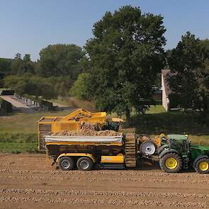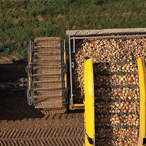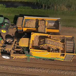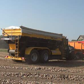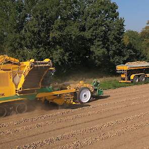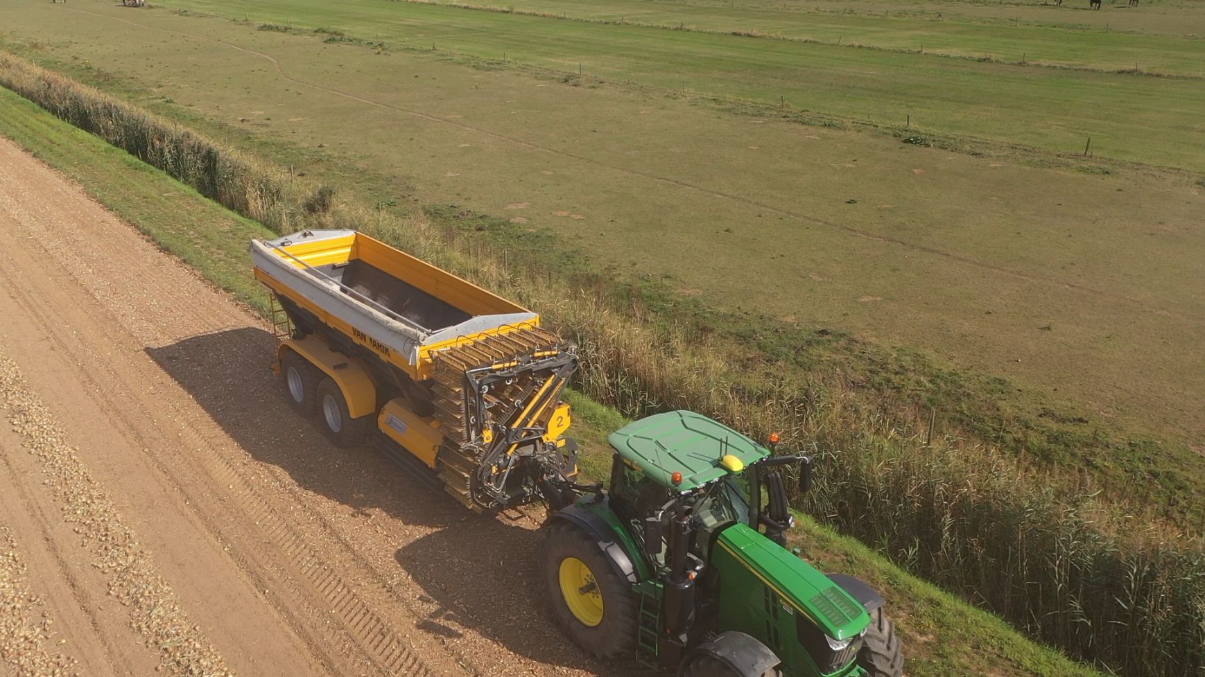 Ploeger AR-4BX in de uien met Brettmeister-overlaadwagen
