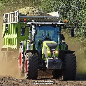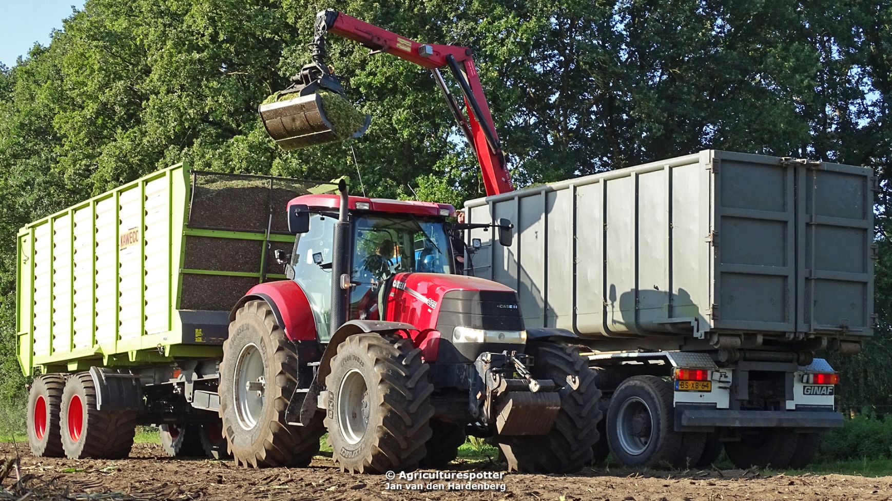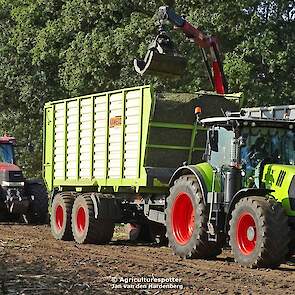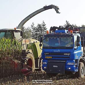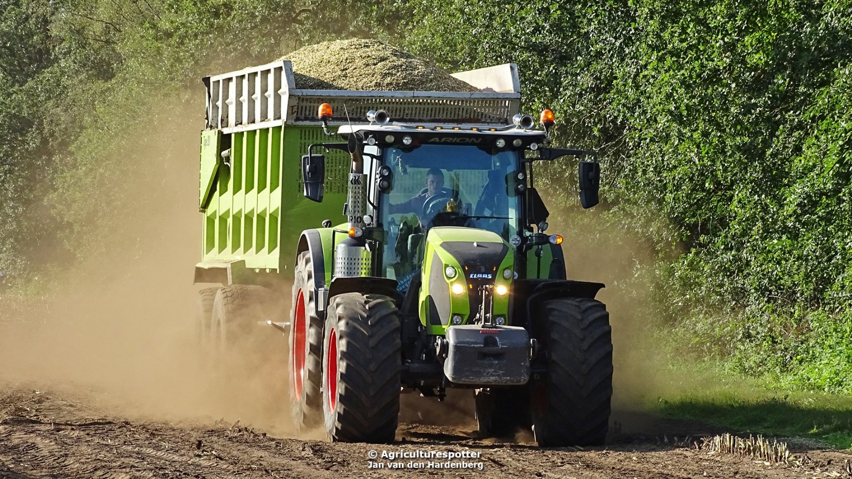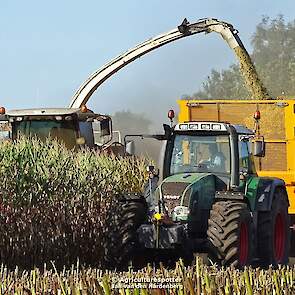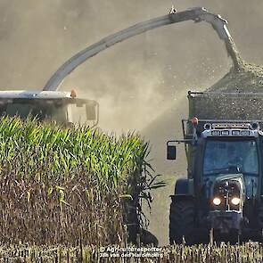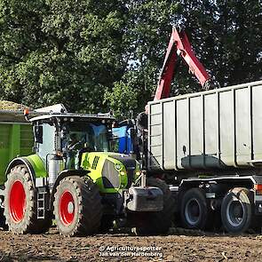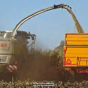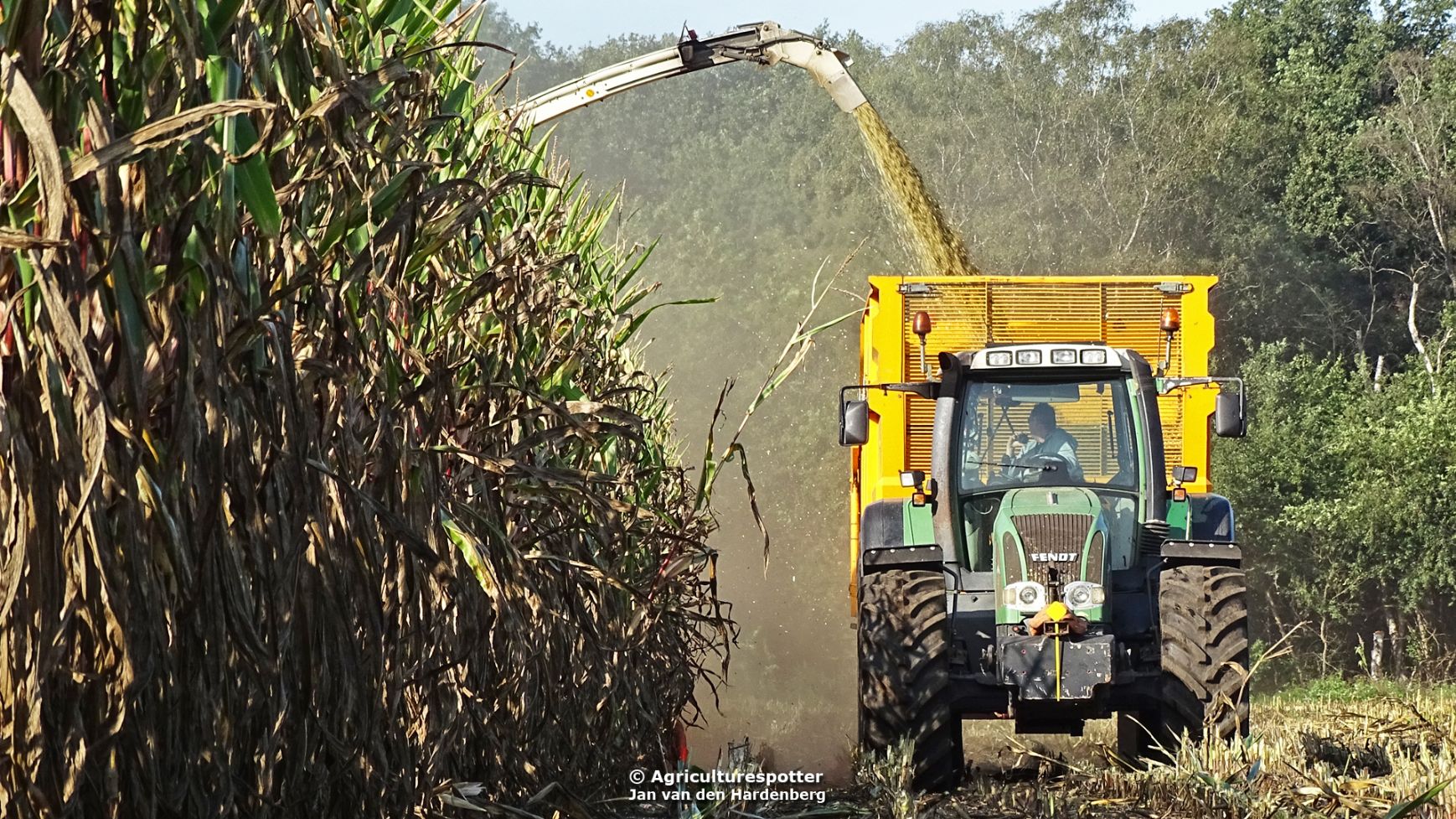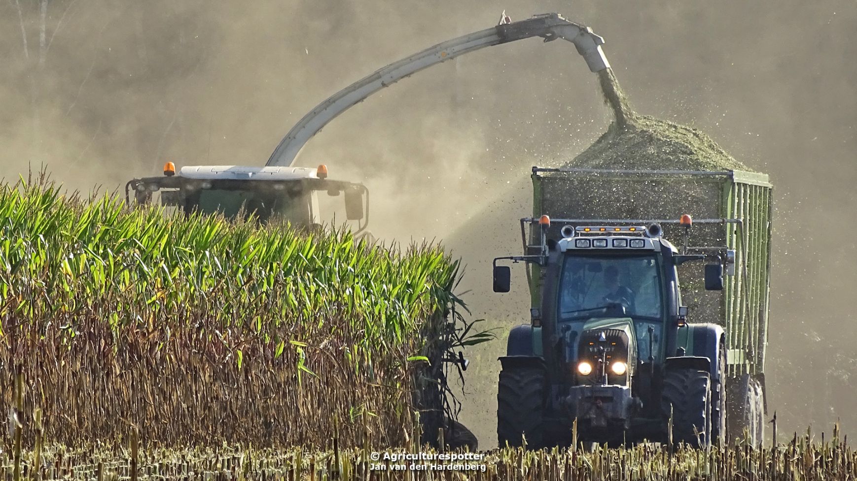 Loonbedrijf Pleizier & Timmer uit Nijkerk al vroeg in de ochtend aan het mais hakselen in Meerveld en Uddel met een Claas Jaguar 965 en een Kemper 460 Plus (8-rijer). Het grote transport werd gedaan met diverse combinaties zoals een Claas Axion 850 Black Edition, een Ginaf-truck, Case IH Puma 225, Fendt Favorit 916 Vario en diverse Claas-tractoren met Kaweco-, Jaco- en Veenhuis-silagewagens.