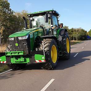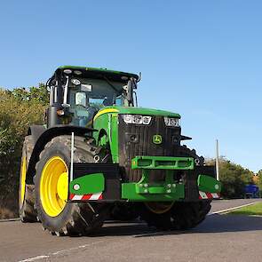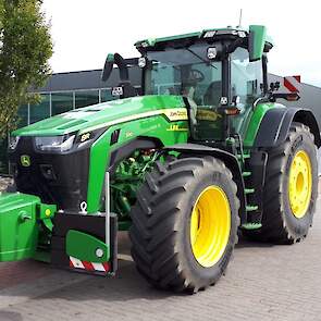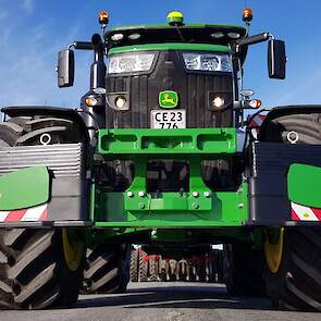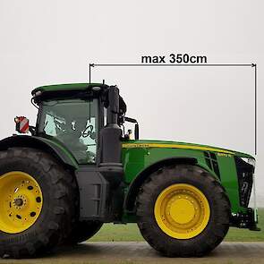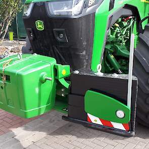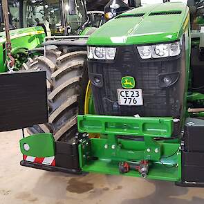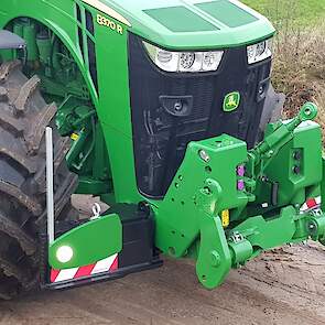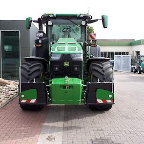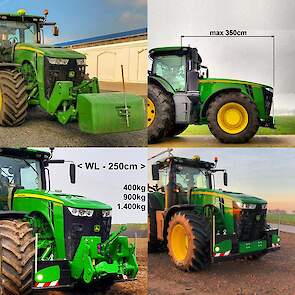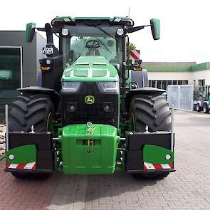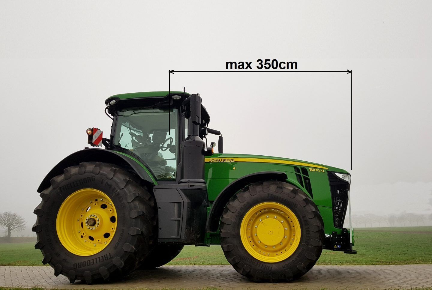 De nieuwste John Deere 8R-modellen zie je in ons land nog op demo’s. In Duitsland zijn ze al in gebruik. Voor Nederland een niet vaak voorkomend trekkertype, maar in veel landen dé akkerbouwtrekker bij uitstek vanwege z'n enorme power en vaak met getrokken werktuigen. Bekend van z'n zeer lange 3,50 meter neus en veel gewicht op de vooras. De lengte is vaak een discussiepunt, zeker als er een frontgewicht van 1500 kilo aan moet. In Duitsland vaak “Onhe Fahrerlaubnis”, dat wil zeggen: niet toegestaan voor gebruik op de openbare weg, mits voorzien van neuscamera, spiegels of transportbegeleiding. Een voertuig mag daar niet langer zijn dan 3,50 meter gemeten van stuurwiel (in rij-stand) tot de voorzijde. Wordt deze maat overschreden dan verlies je automatisch die zogenaamde Fahrerlaubnis en ben je niet verzekerd. Safertractors heeft daar een speciale aanpassing voor ontwikkeld. Aan iedere John Deere 8R zonder fronthef kan snel en eenvoudig een variabel frontgewicht aangebouwd worden van 400, 900, 1400 of 1800 kilo, zonder dat de trekker een centimeter langer wordt. Voor landen waar deze regels niet gelden kan de originele gewichtendrager terug geplaatst worden en kunnen er koffergewichten aangezet worden of een monoblock. Dit systeem past ook op een John Deere uit de 7R serie zonder fronthef.