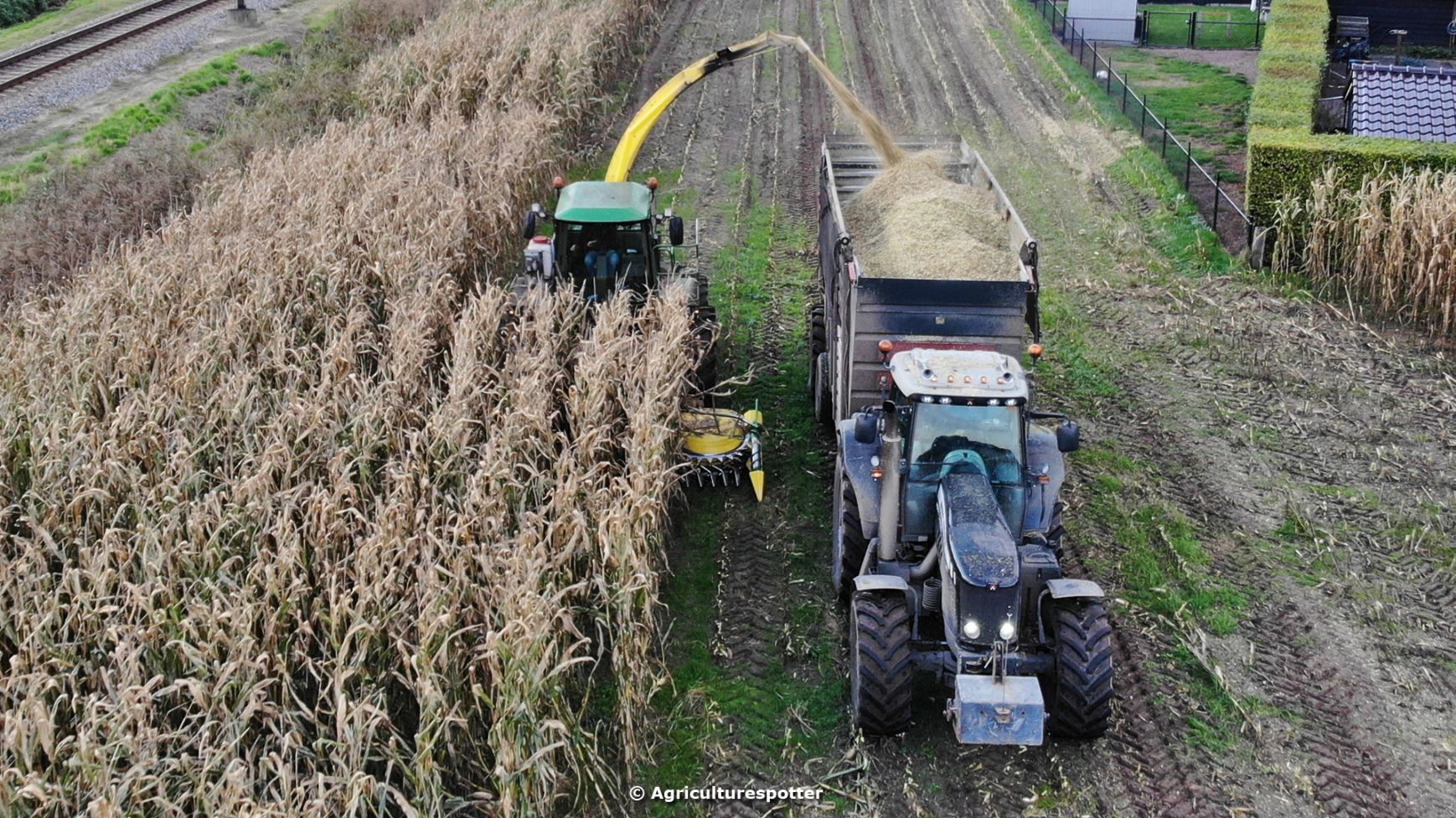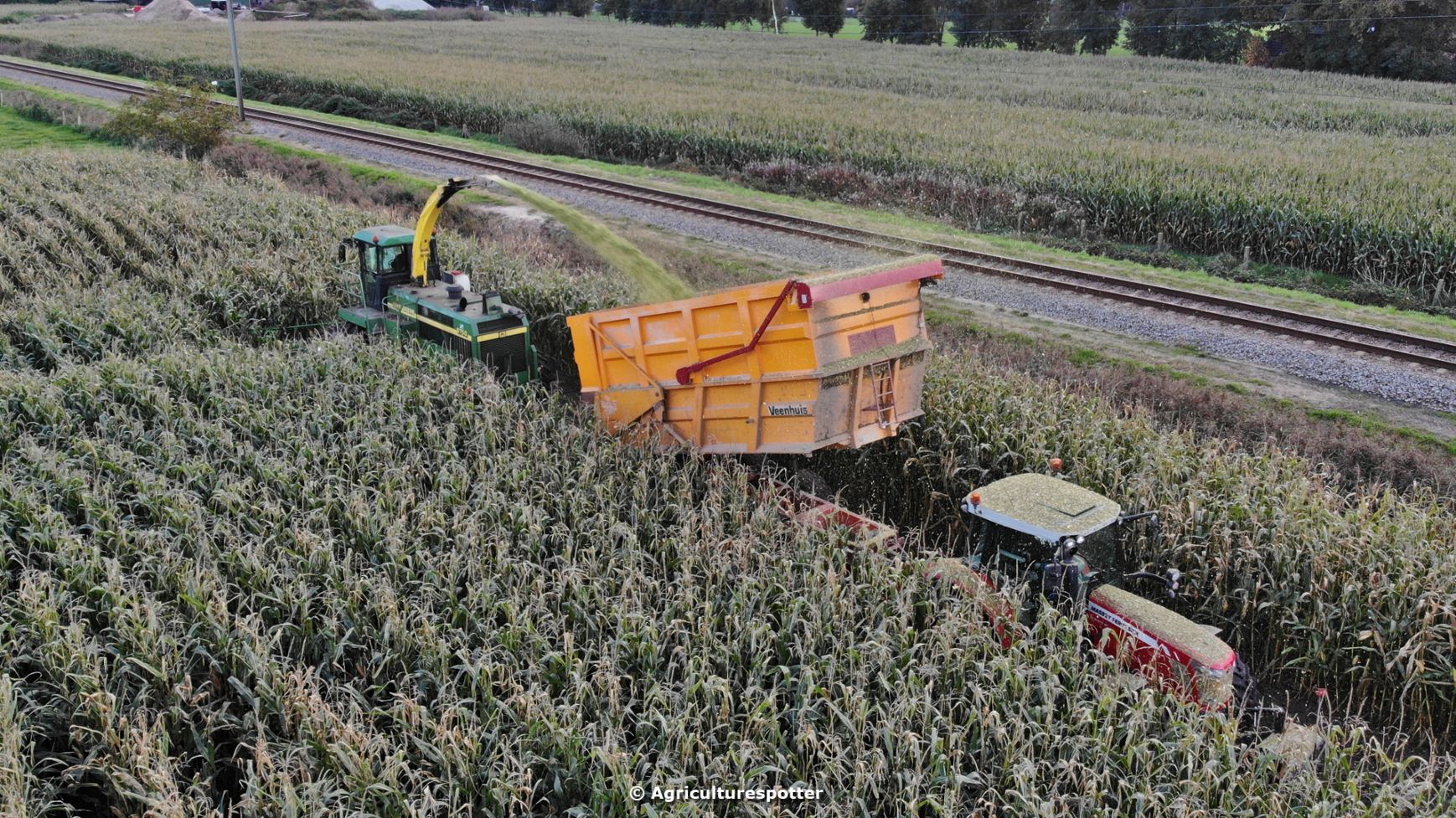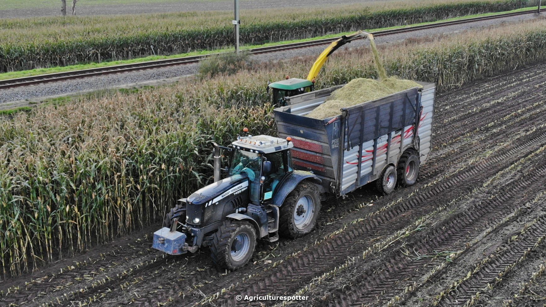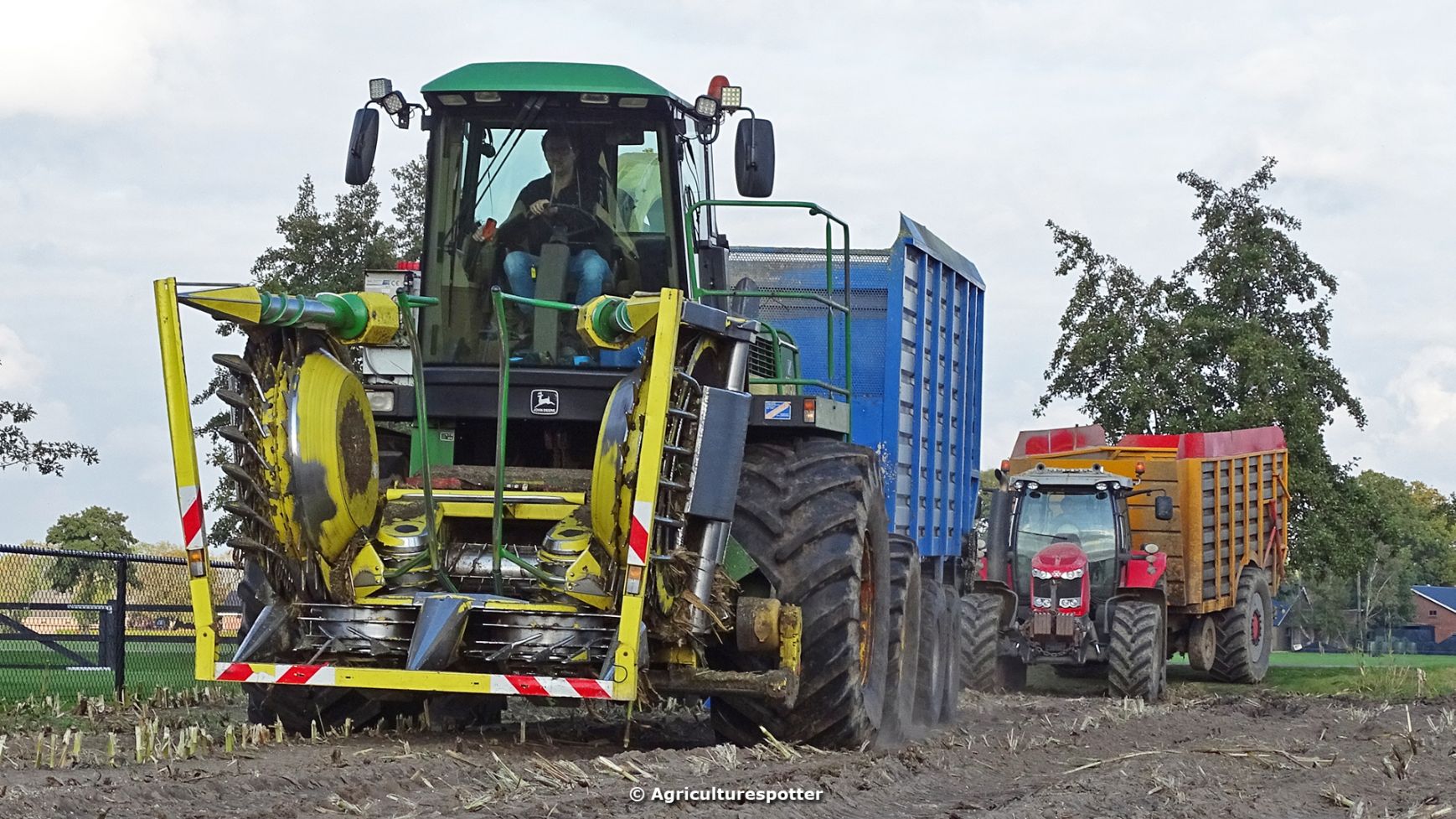 Mais hakselen in Lunteren met een John Deere 6750 van loonbedrijf Vlastuin uit Ede. Het transport werd gedaan met een Massey Ferguson 7718 Dyna-VT, een zwarte Massey Ferguson 7499 Dyna-VT met zelfbouw silagewagen en een Massey Ferguson 6713S Dyna-VT met een Veenhuis-kipper. Als sleeptrekker werd een Massey Ferguson 7480 Dyna-VT gebruikt.