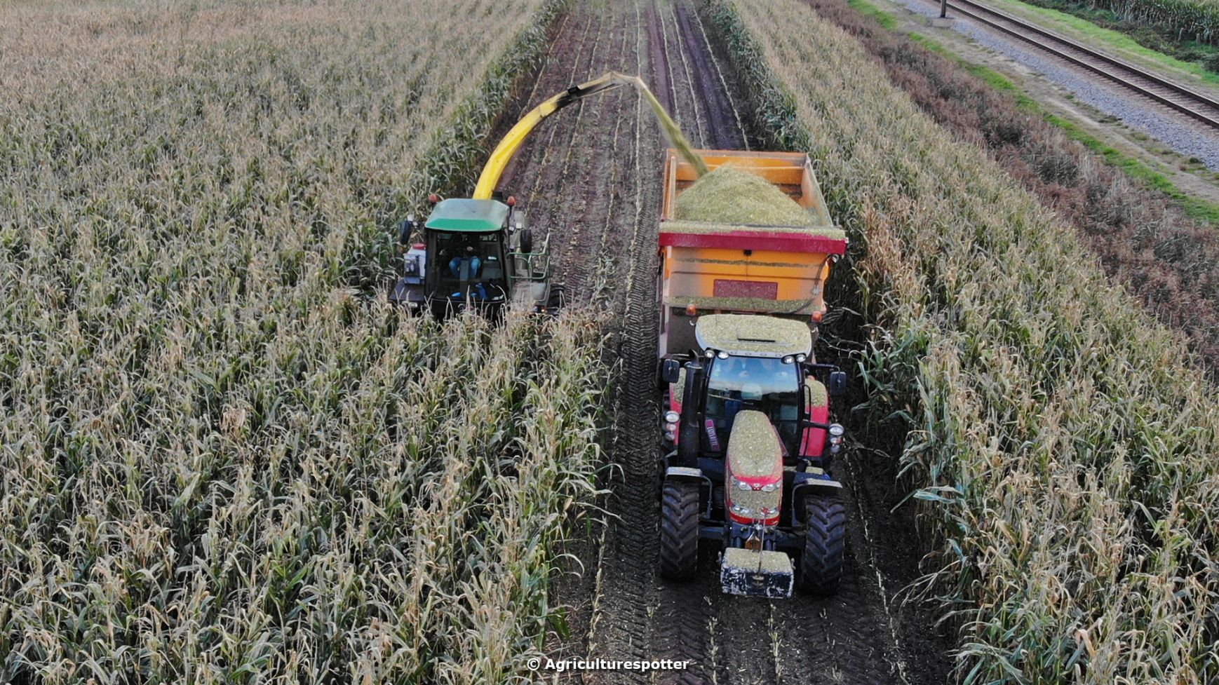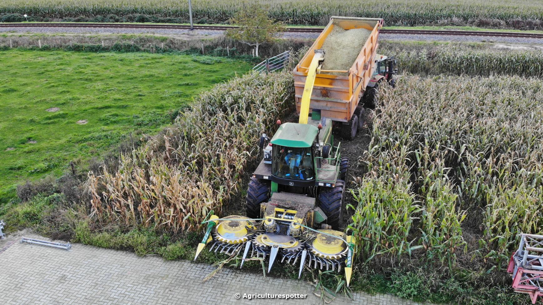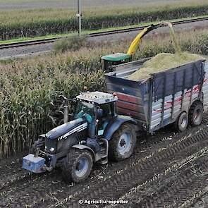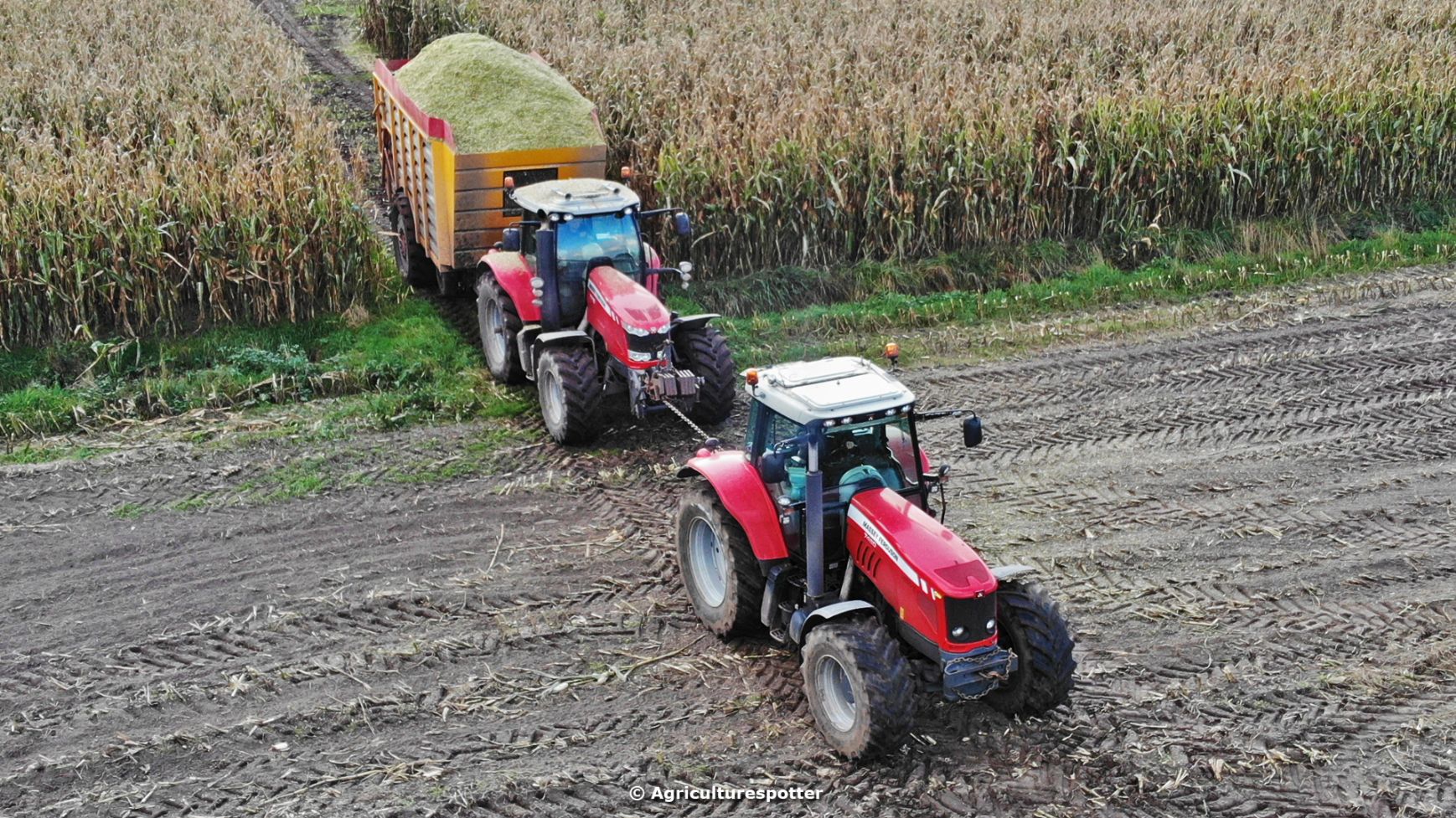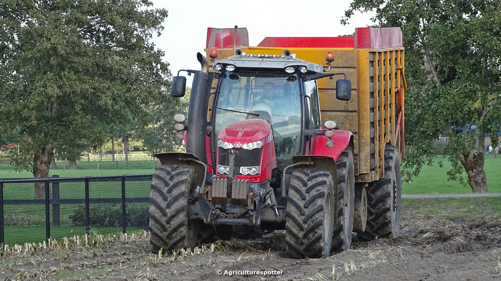 Mais hakselen in Lunteren met een John Deere 6750 van loonbedrijf Vlastuin uit Ede. Het transport werd gedaan met een Massey Ferguson 7718 Dyna-VT, een zwarte Massey Ferguson 7499 Dyna-VT met zelfbouw silagewagen en een Massey Ferguson 6713S Dyna-VT met een Veenhuis-kipper. Als sleeptrekker werd een Massey Ferguson 7480 Dyna-VT gebruikt.