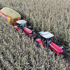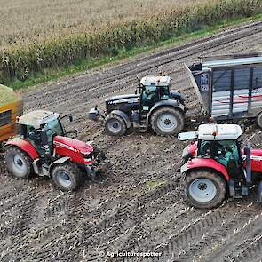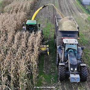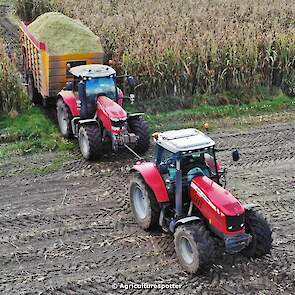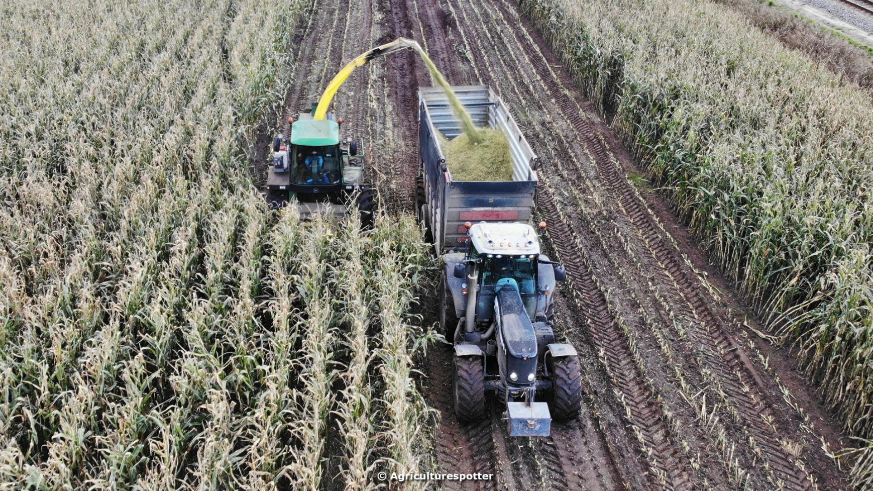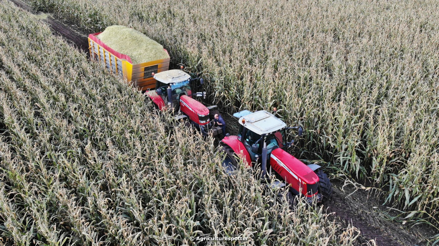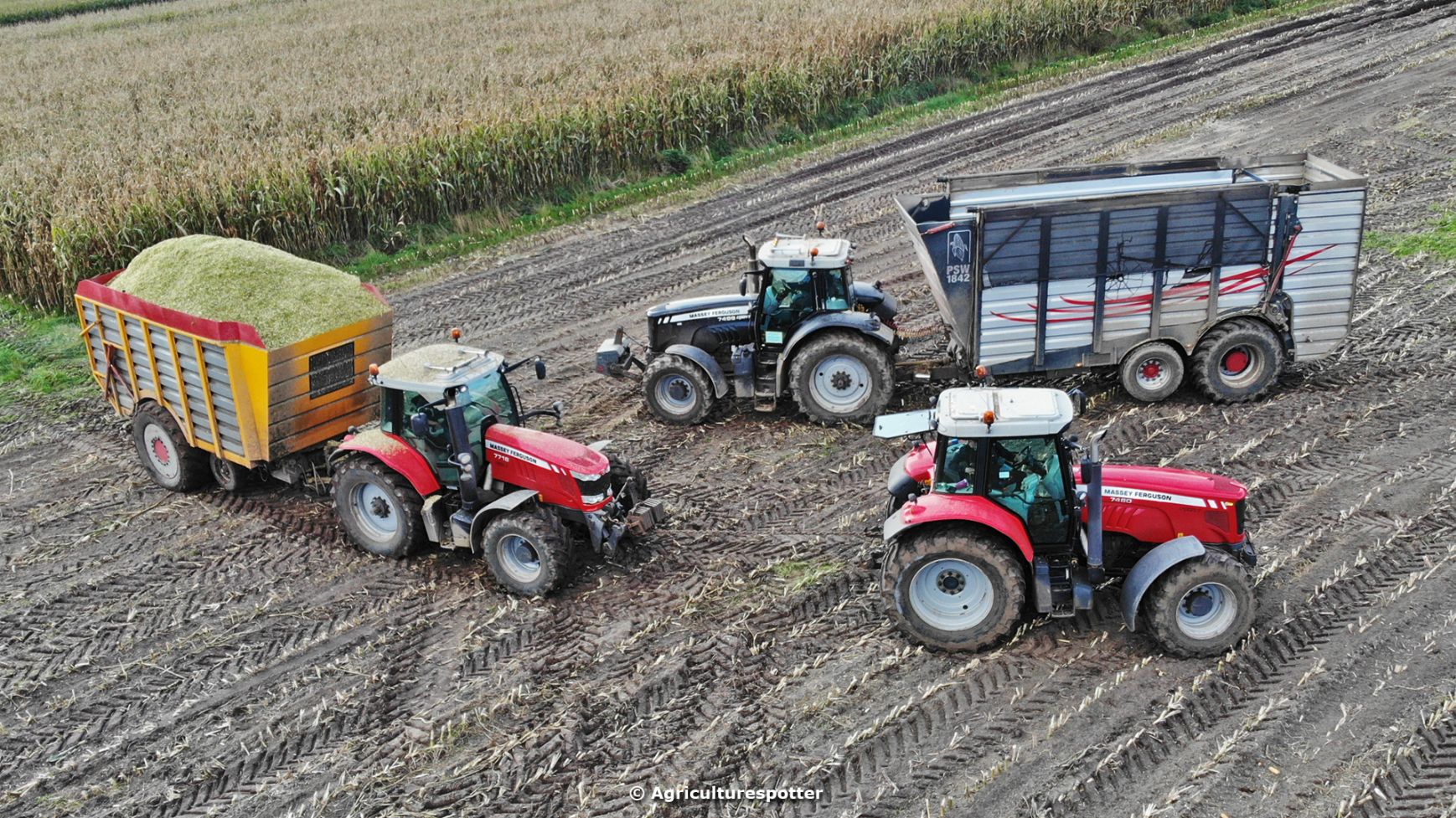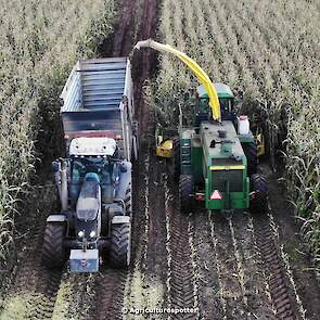 Mais hakselen in Lunteren met een John Deere 6750 van loonbedrijf Vlastuin uit Ede. Het transport werd gedaan met een Massey Ferguson 7718 Dyna-VT, een zwarte Massey Ferguson 7499 Dyna-VT met zelfbouw silagewagen en een Massey Ferguson 6713S Dyna-VT met een Veenhuis-kipper. Als sleeptrekker werd een Massey Ferguson 7480 Dyna-VT gebruikt.